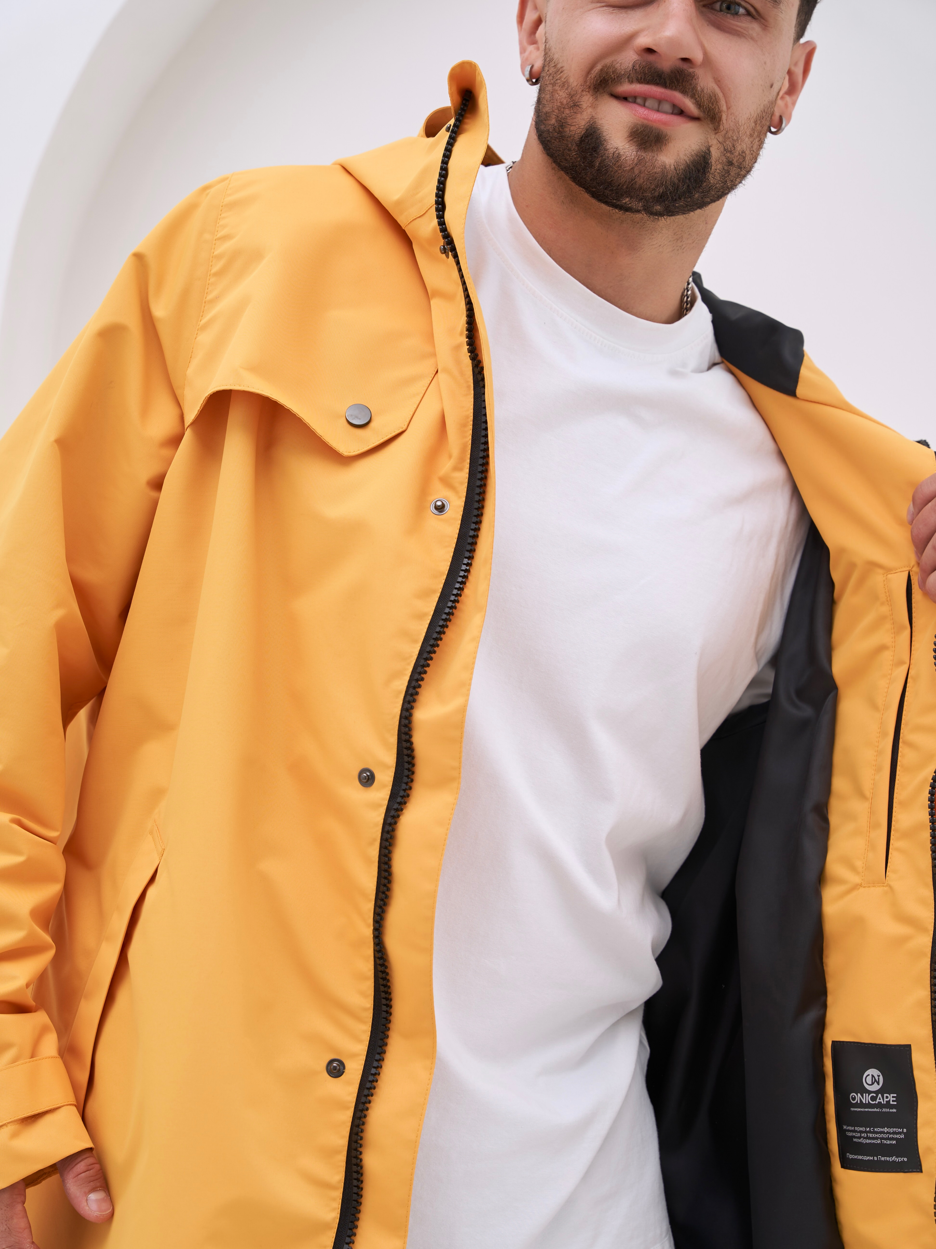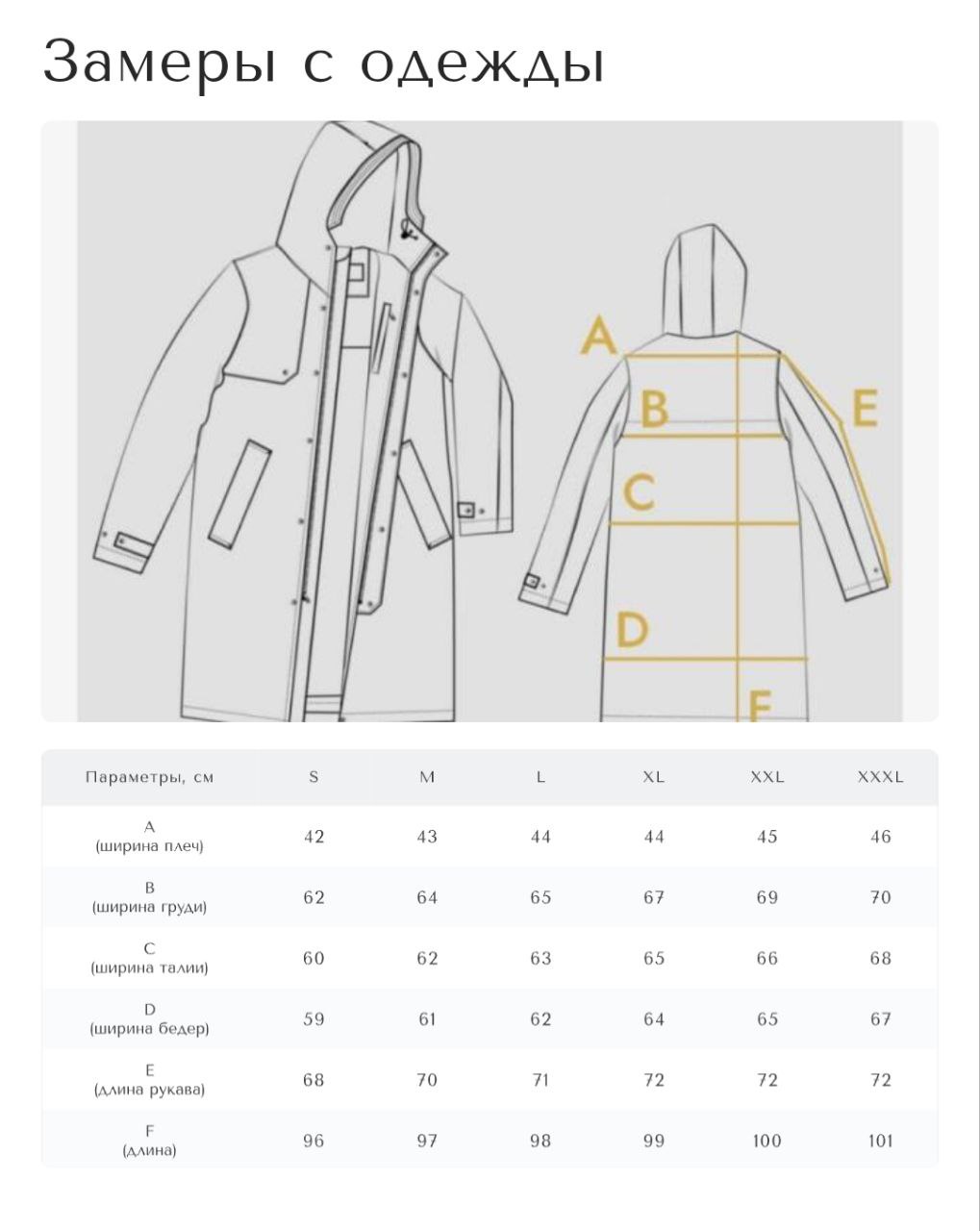 Детали плаща: черный подклад (саржевое плетение), удобный глубокий капюшон с козырьком, универсальная длина, двухзамковая молния, сетка на спинке, регулируемый рукав, капюшон, закрытые внешние карманы, 2 внутренних кармана на застежке, герметичные швы