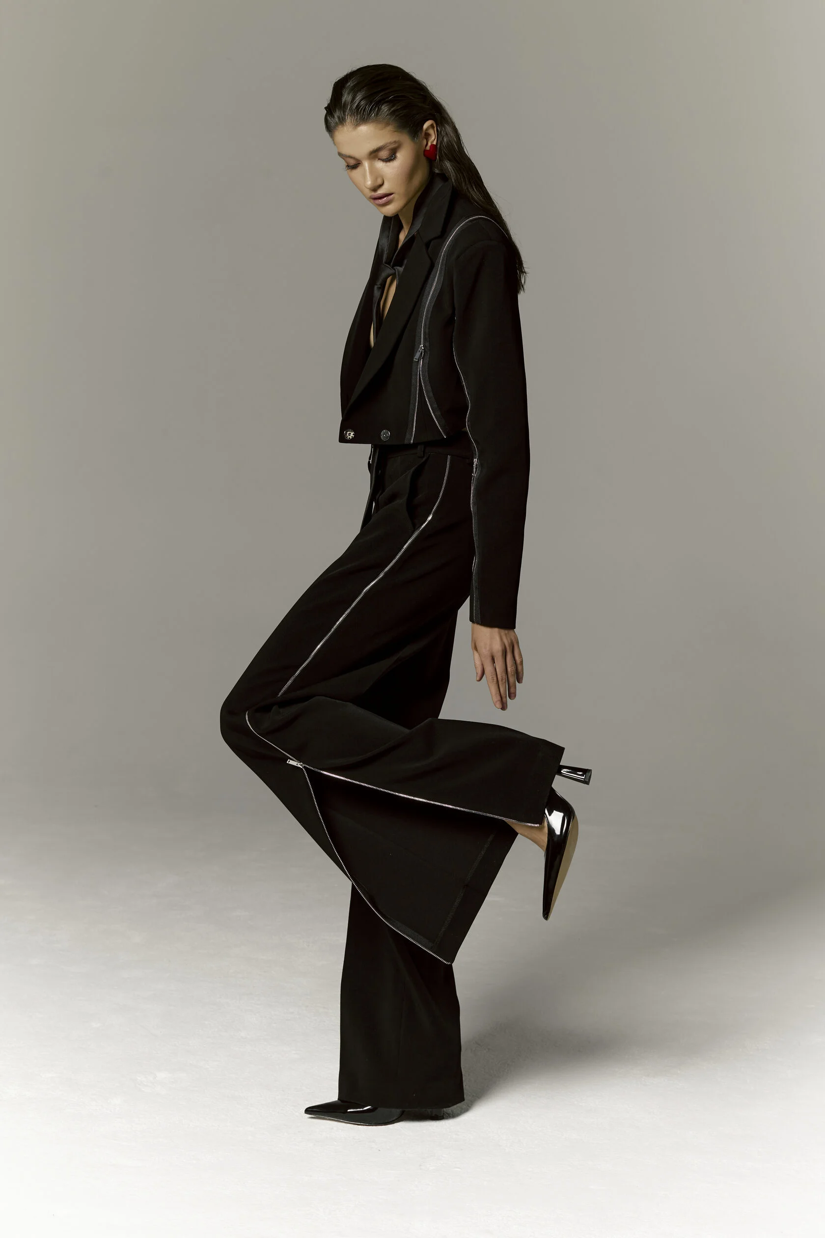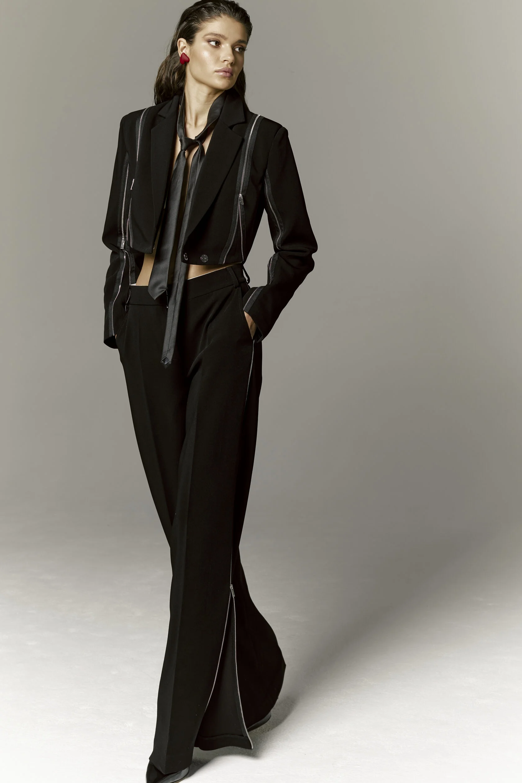Черные брюки не обязаны иметь классический крой, ведь в случае с данной моделью весенне-летней коллекции выход за рамки строгой классики обеспечивается благодаря формодержащим воланам из двустороннего атласа. Все это формирует ретро силуэт. В то же время завышенная талия в сочетании с плотным и...