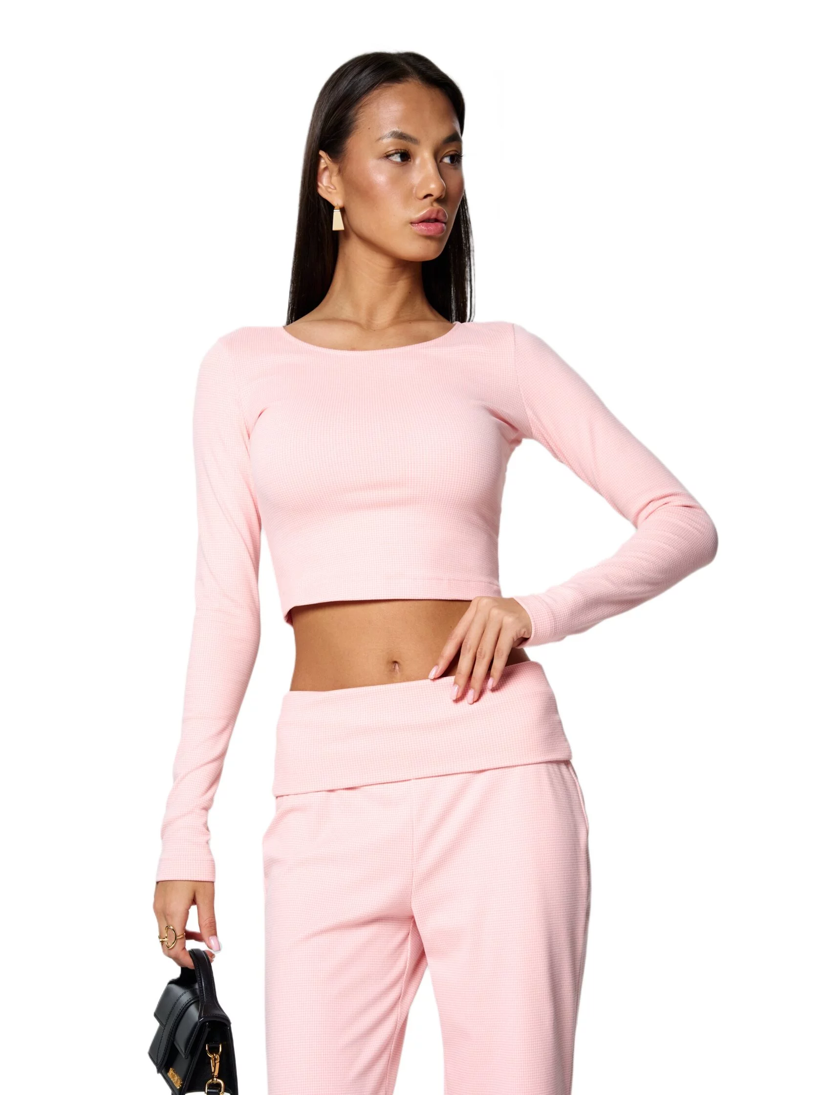 Прилегающий лонгслив с круглым вырезом из легкой трикотажной ткани с паттерном, выполненный в фирменной палитре бренда.