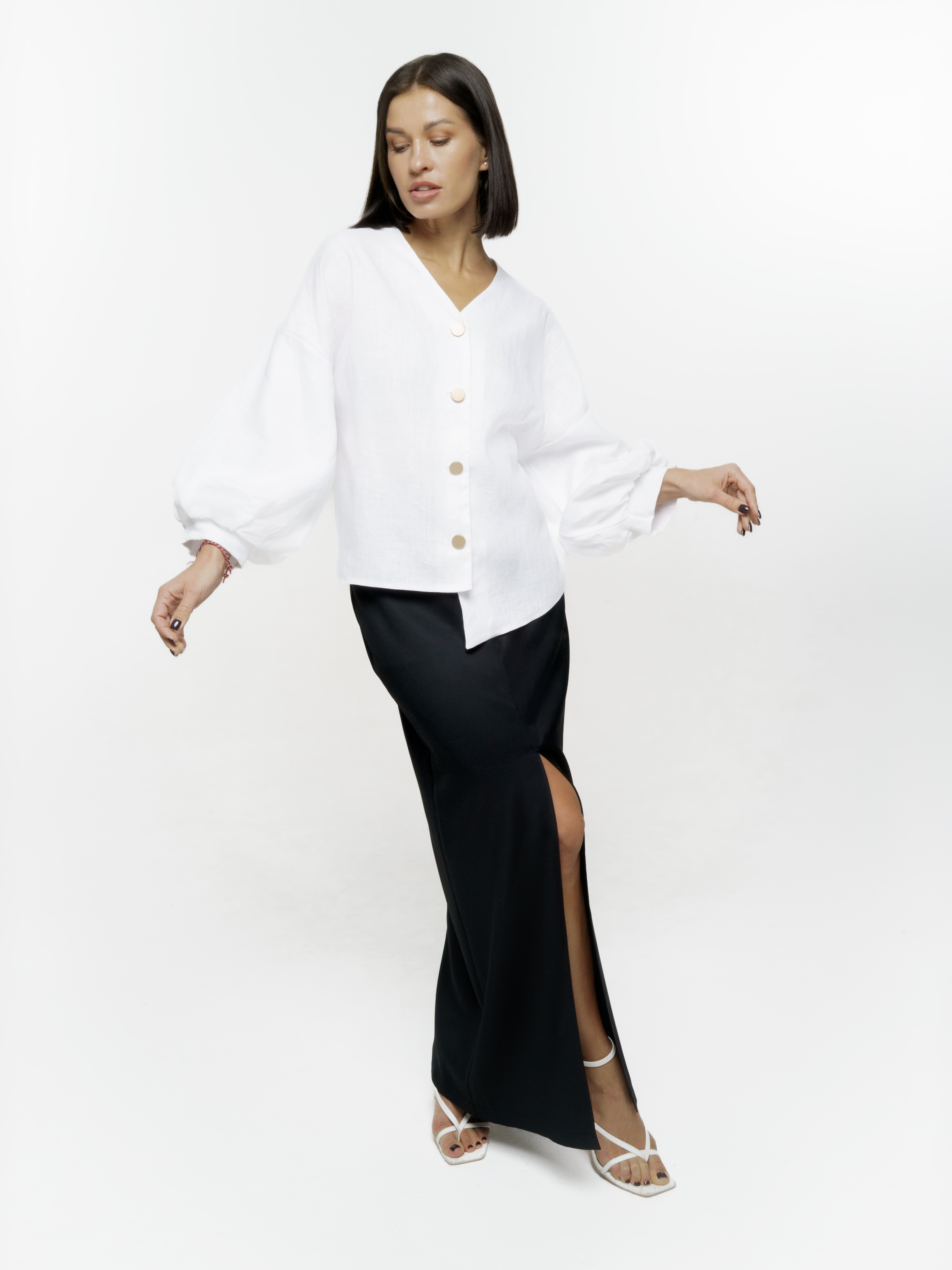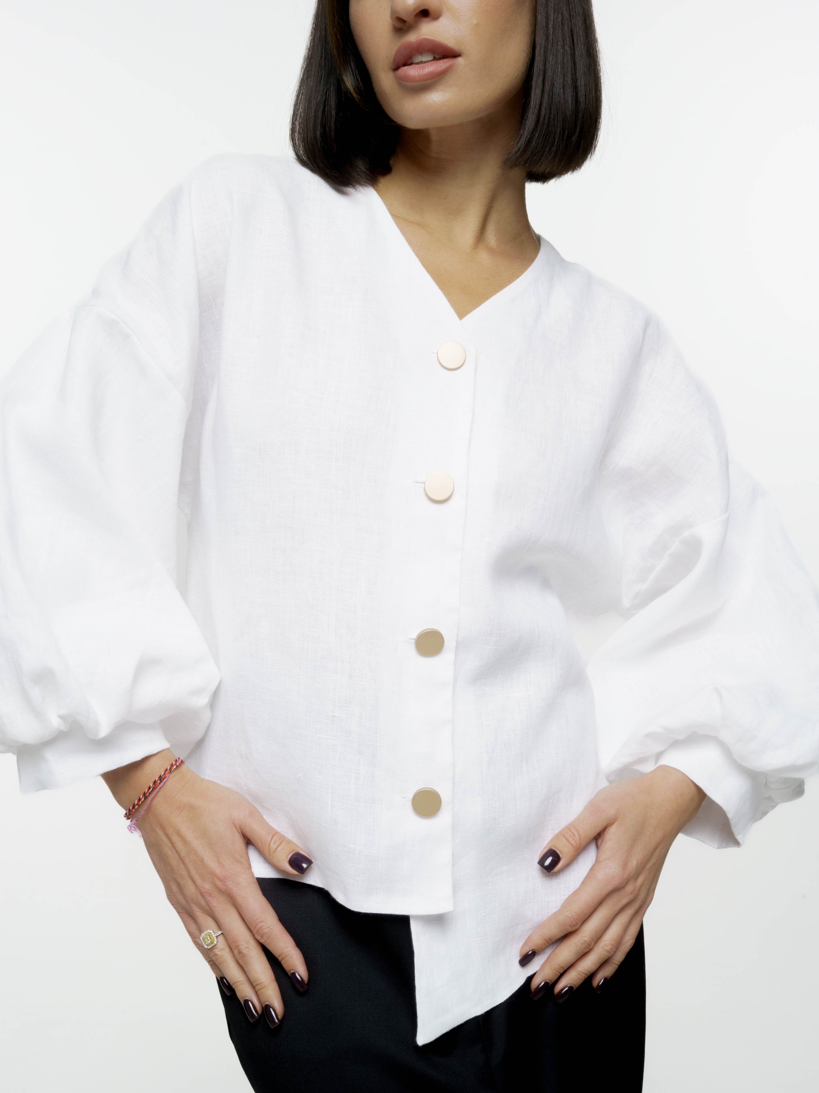 LYOS представляет новую уникальную рубашку с рукавами фонариками и пуговицами. Этот стильный и креативный элемент украшения добавит индивидуальности и особенности вашему образу. Одним из главных преимуществ представленной рубашки является материал — лен. Он текстурный и гладкий, приятный на ощупь, мягкий, что делает ее удобной для ношения в любое время года. Благодаря своим свойствам она согревает в холодные сезоны. Каждая деталь этой рубашки продумана до мелочей. Рукава-фонарики придают ей оригинальность и стиль, а пуговицы добавляют нотку элегантности. Вы можете носить эту рубашку как в повседневном образе, так и на особых мероприятиях — она подходит для любой ситуации.