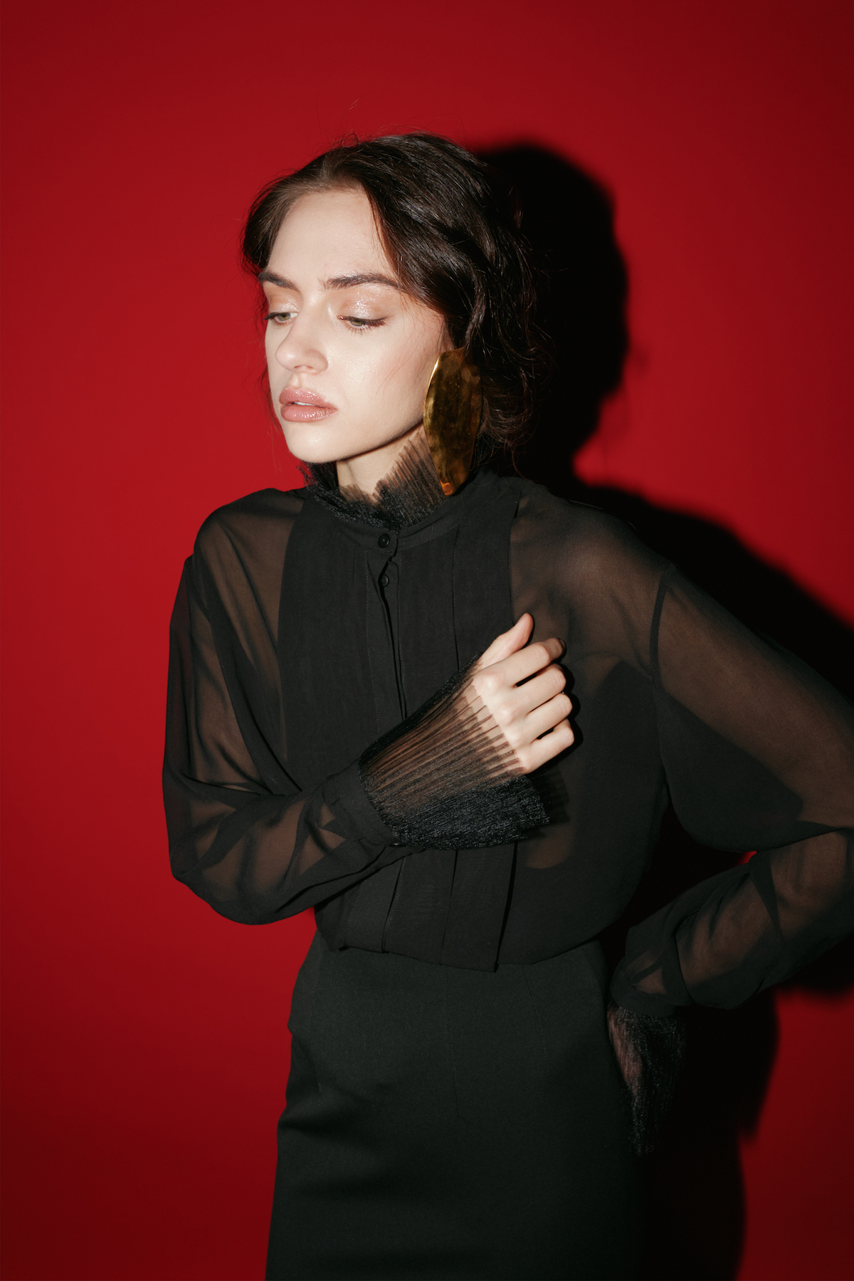 Блуза из шёлкового шифона прямого силуэта.