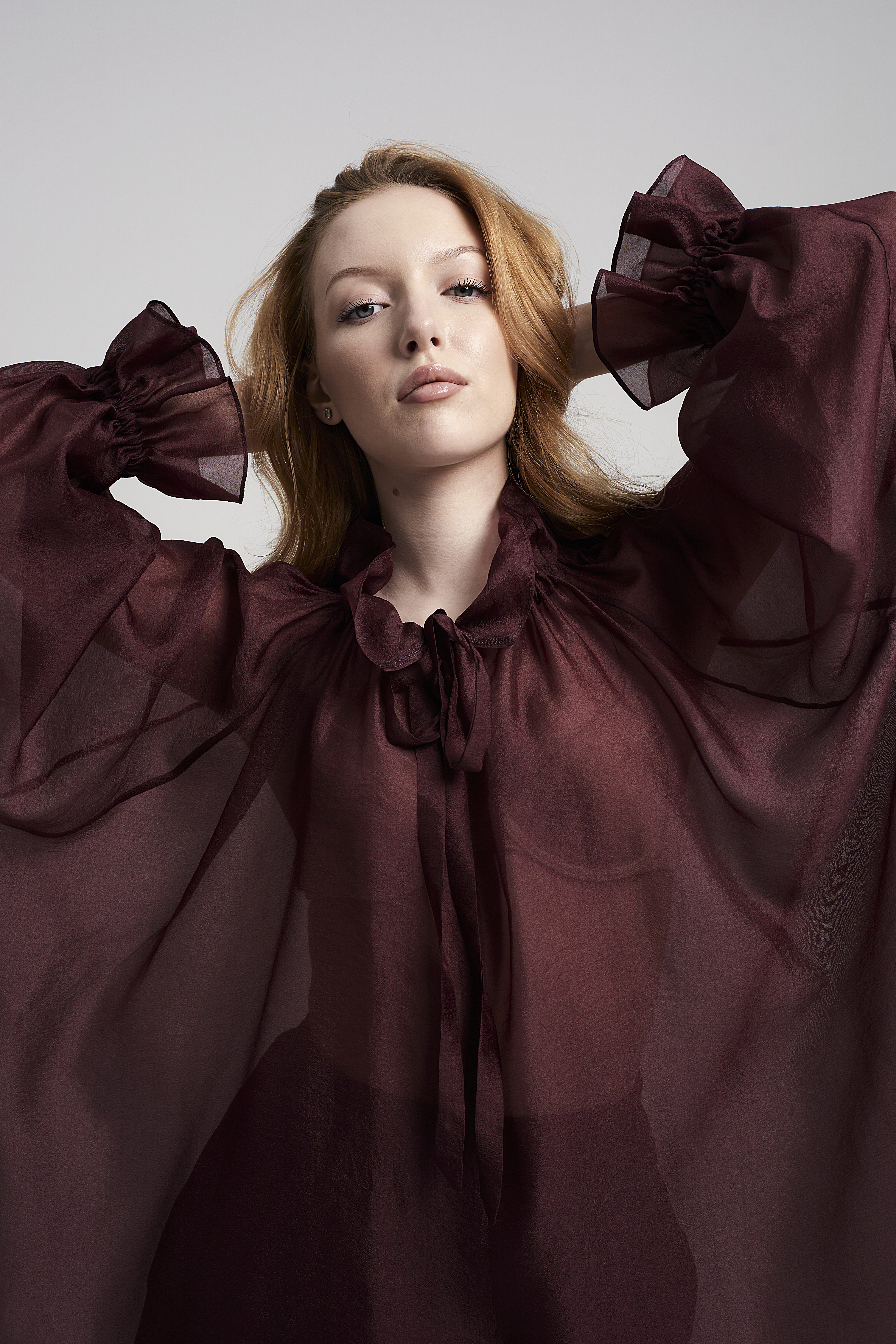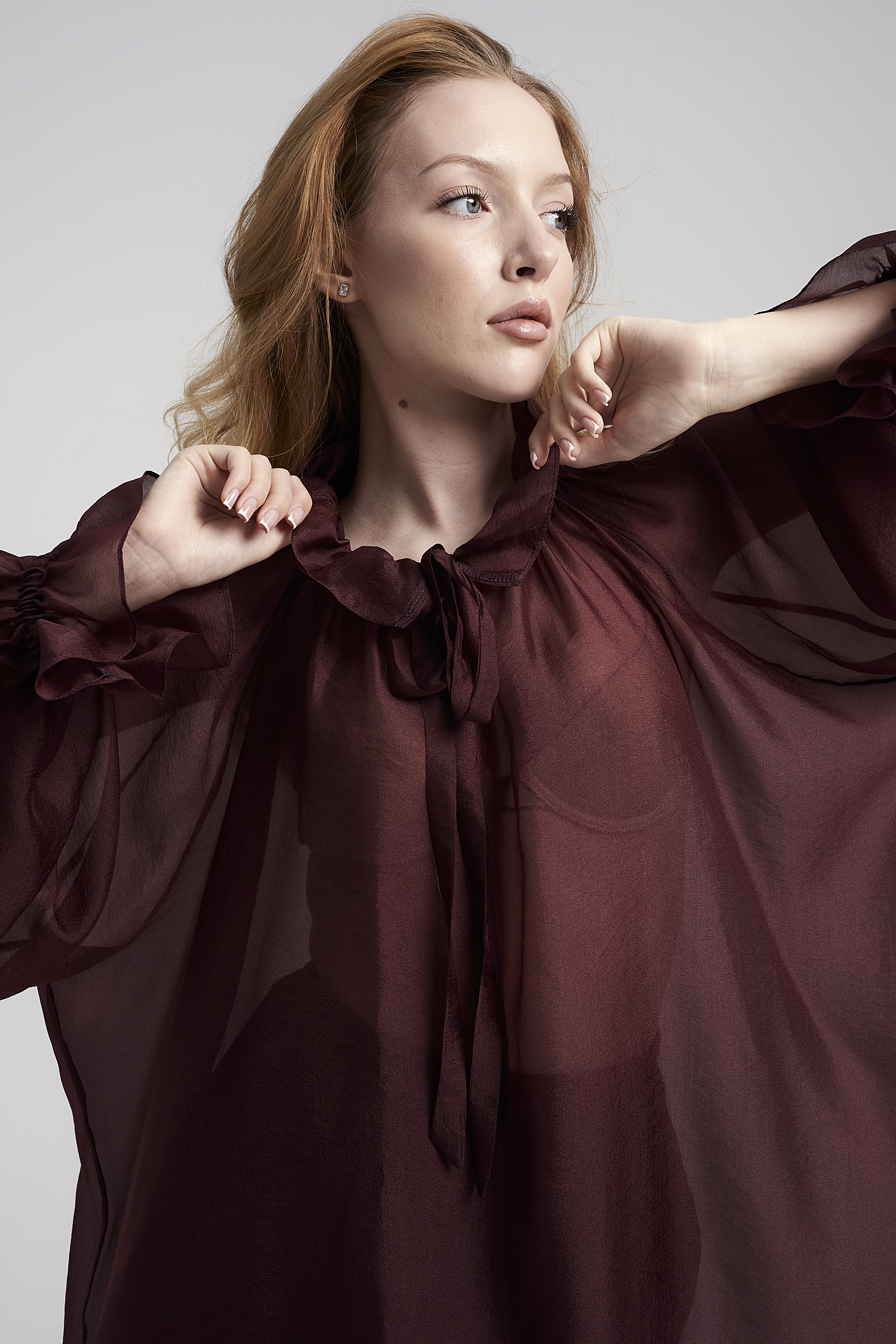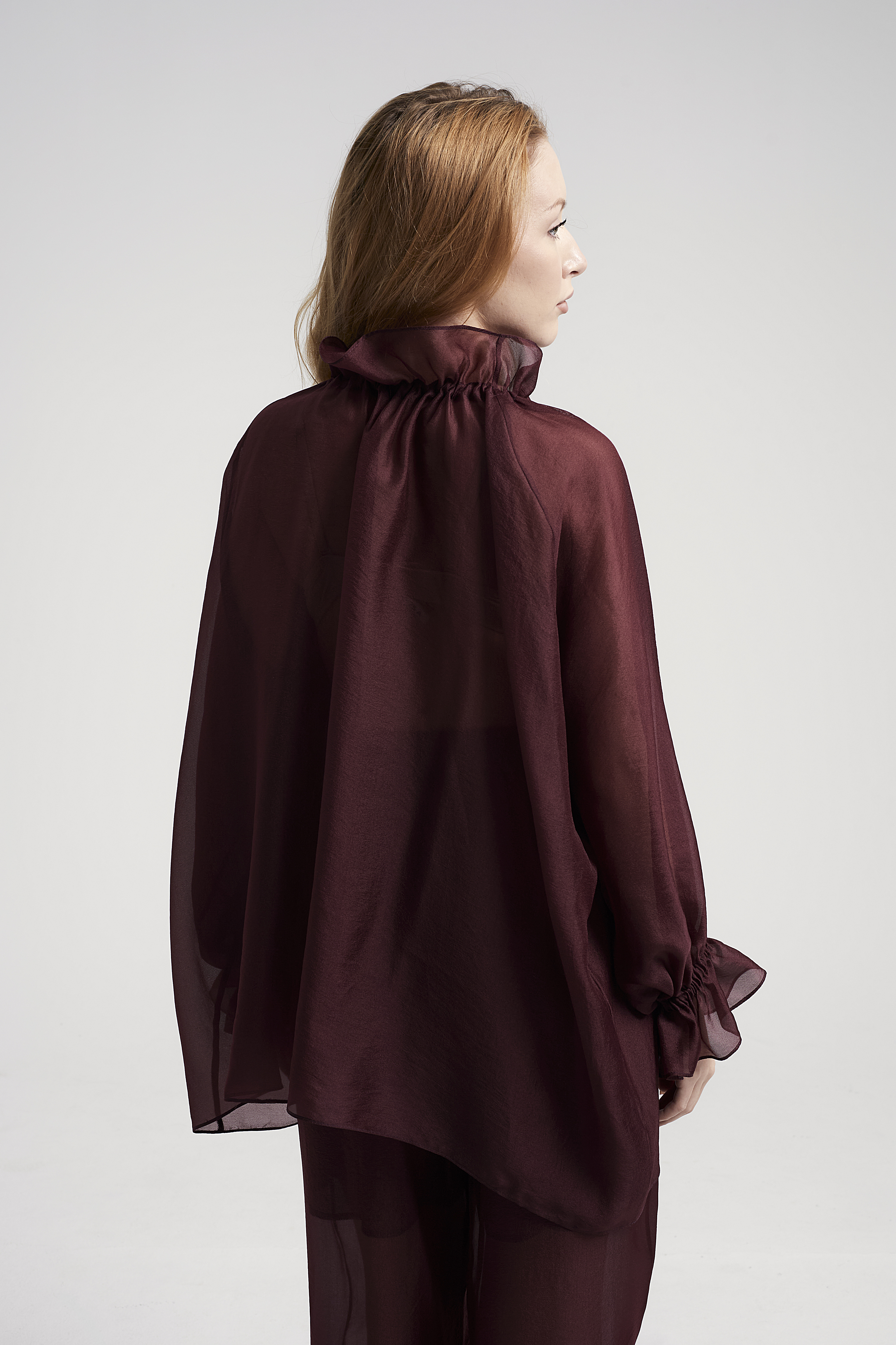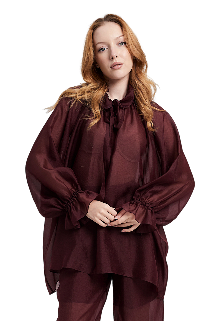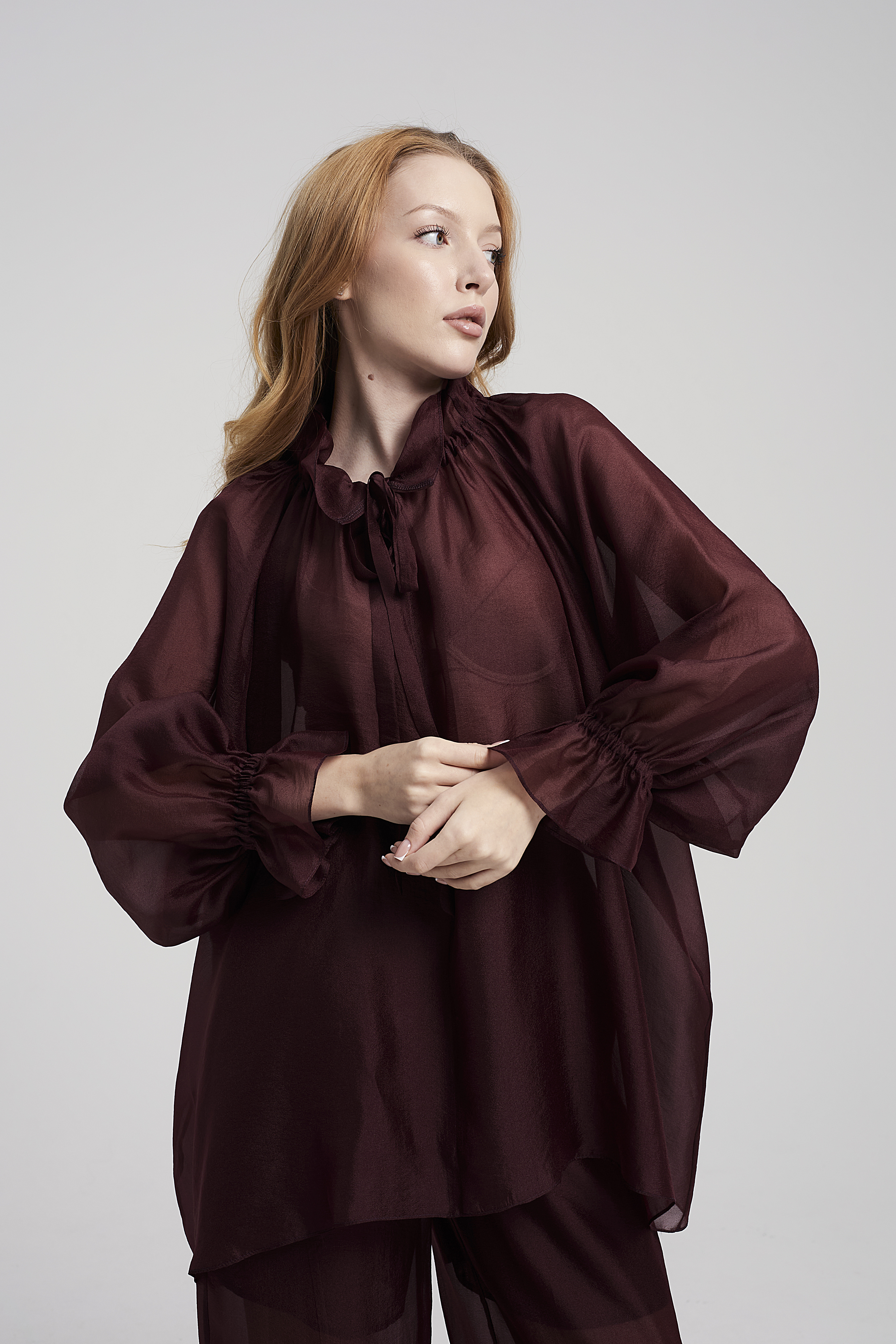 Блузка прямого кроя с объёмными рукавами-фонариками + Топ с v-образным вырезом и тонкими бретелями регулируемой длины. Ткани: Блузка: органза. Топ: трикотаж масло «Омега».