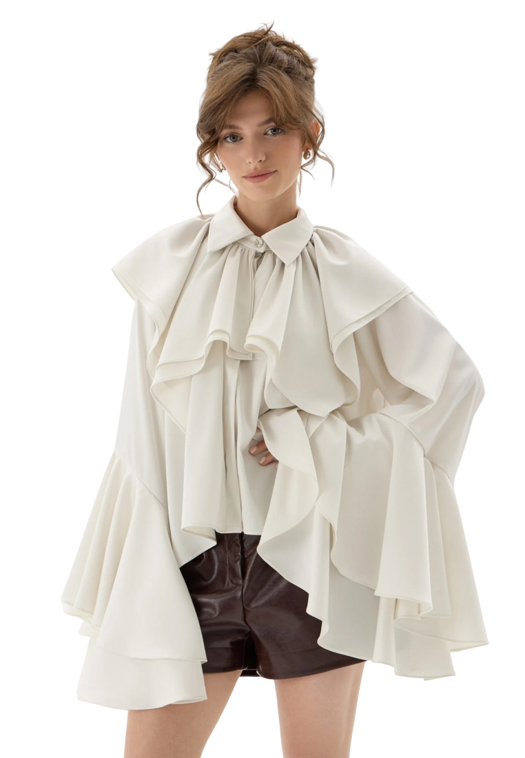 В комплект входит пелерина. Длина блузки идет на удлинение по спинке