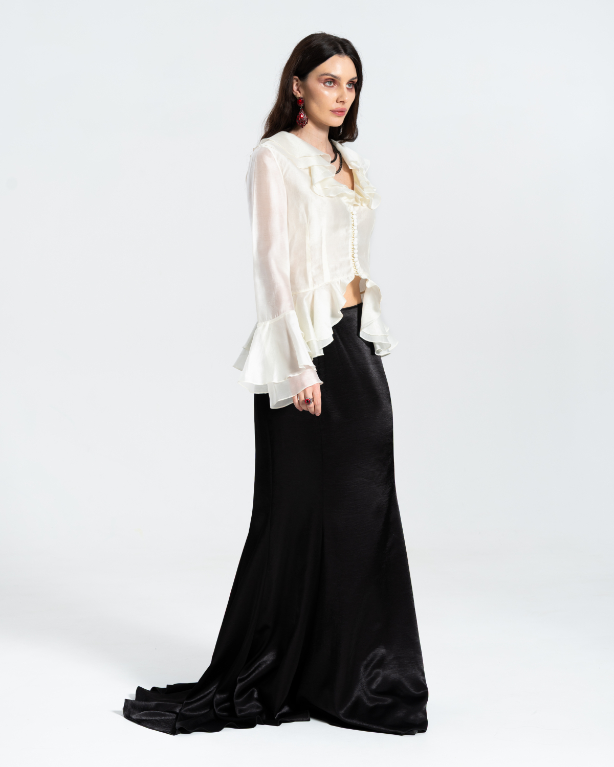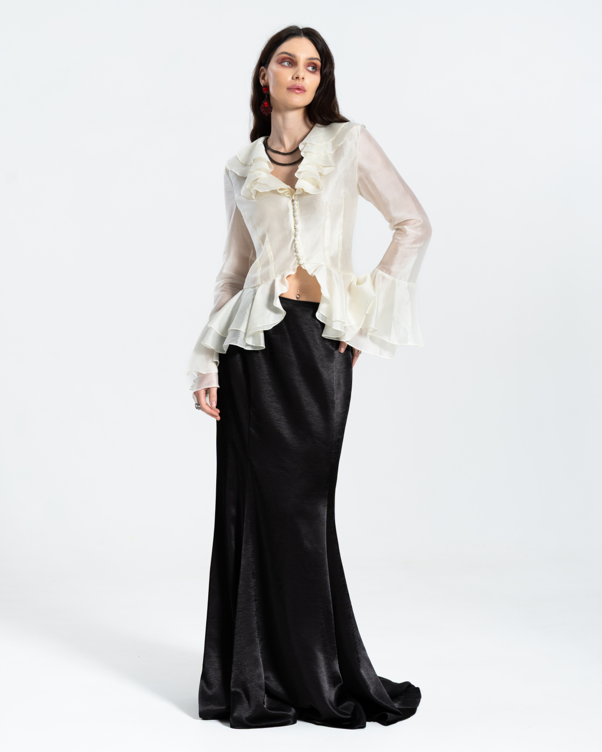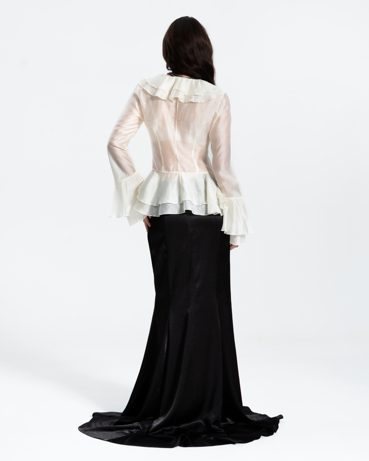 Блузка прямого кроя с объёмными рукавами-фонариками + Топ с v-образным вырезом и тонкими бретелями регулируемой длины. Ткани: Блузка: органза. Топ: трикотаж масло «Омега».
