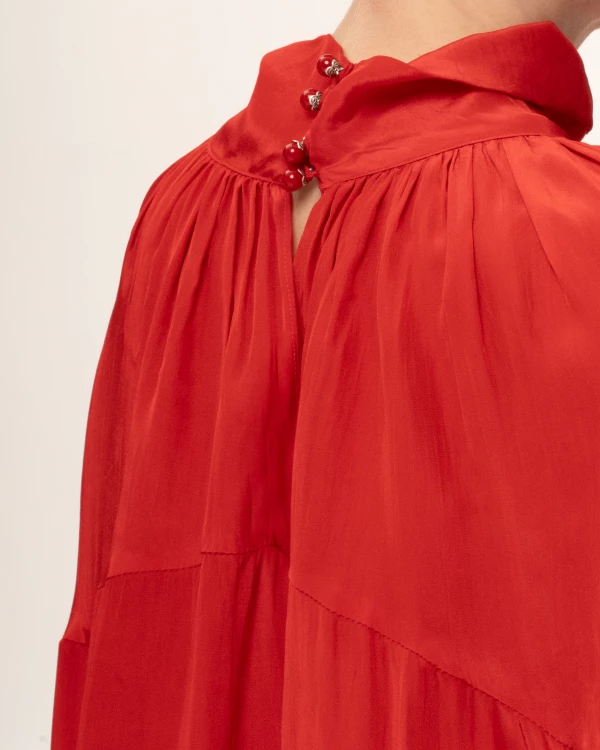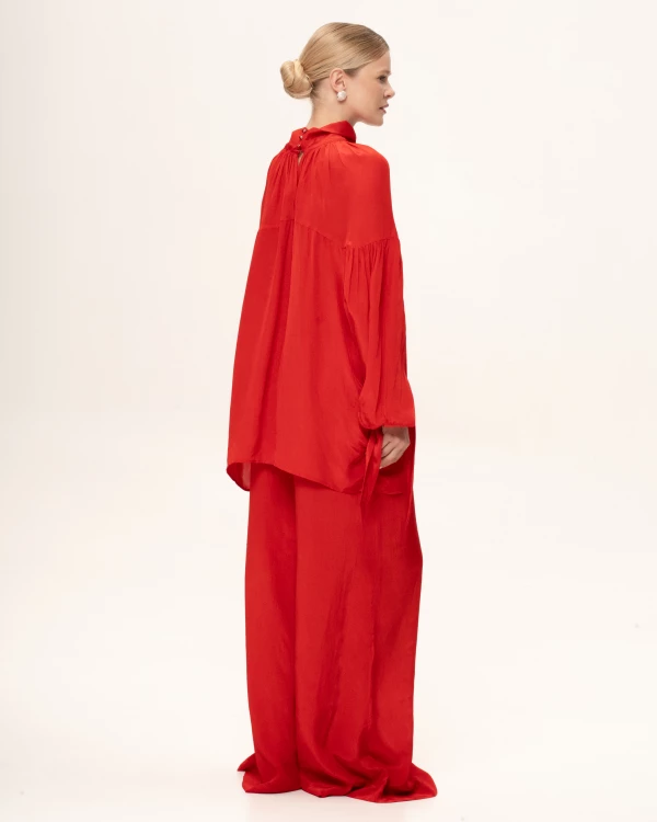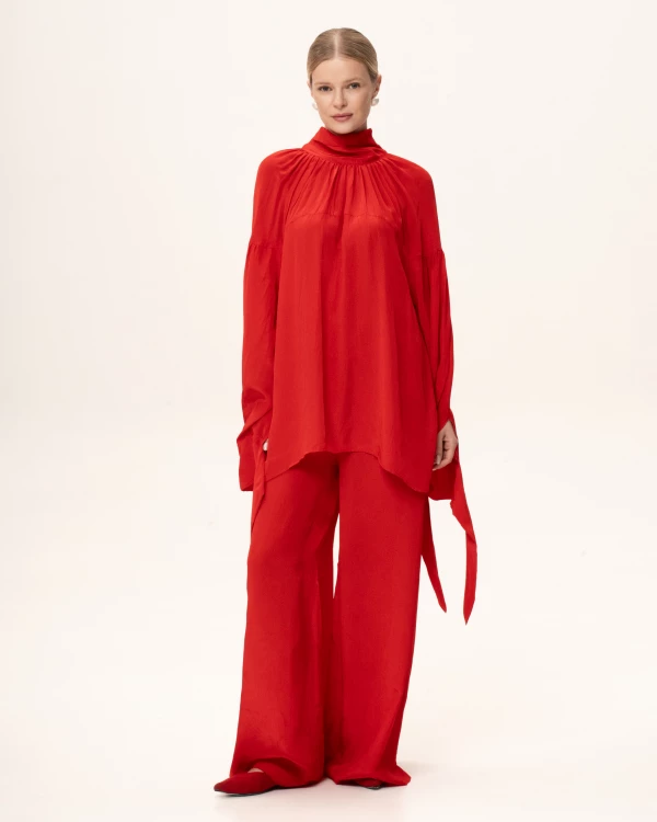 Блузка прямого кроя с объёмными рукавами-фонариками + Топ с v-образным вырезом и тонкими бретелями регулируемой длины. Ткани: Блузка: органза. Топ: трикотаж масло «Омега».