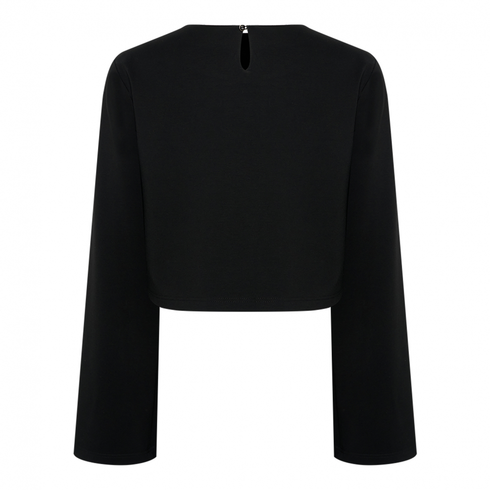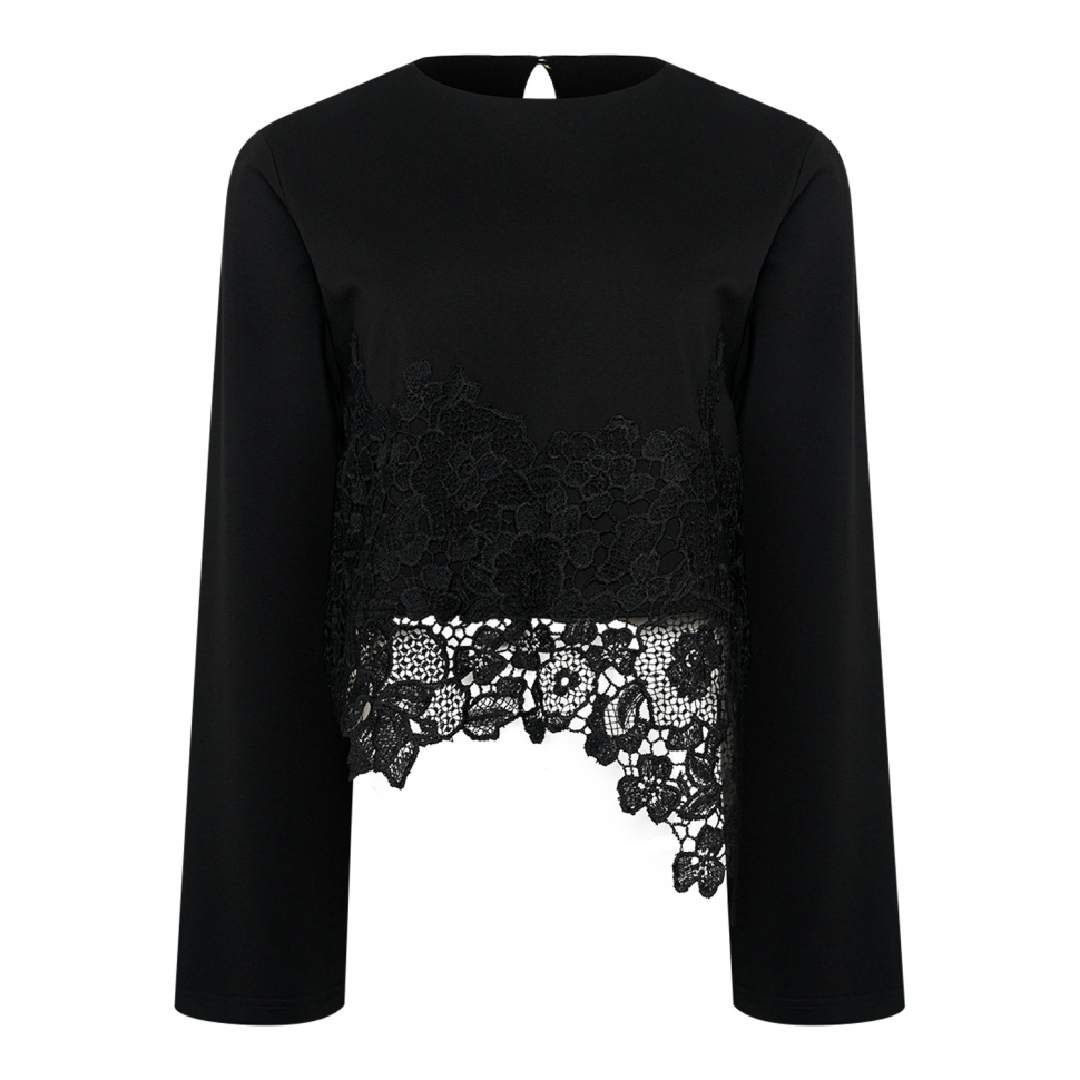 Комфортная кроп-блуза из джерси "Джил" с ассиметричным декором из купонного кружева в цвет основной ткани. Подходит для множества образов и случаев, и, обязательно, подарит чувство праздника. Сзади застежка на крошечную пуговку.