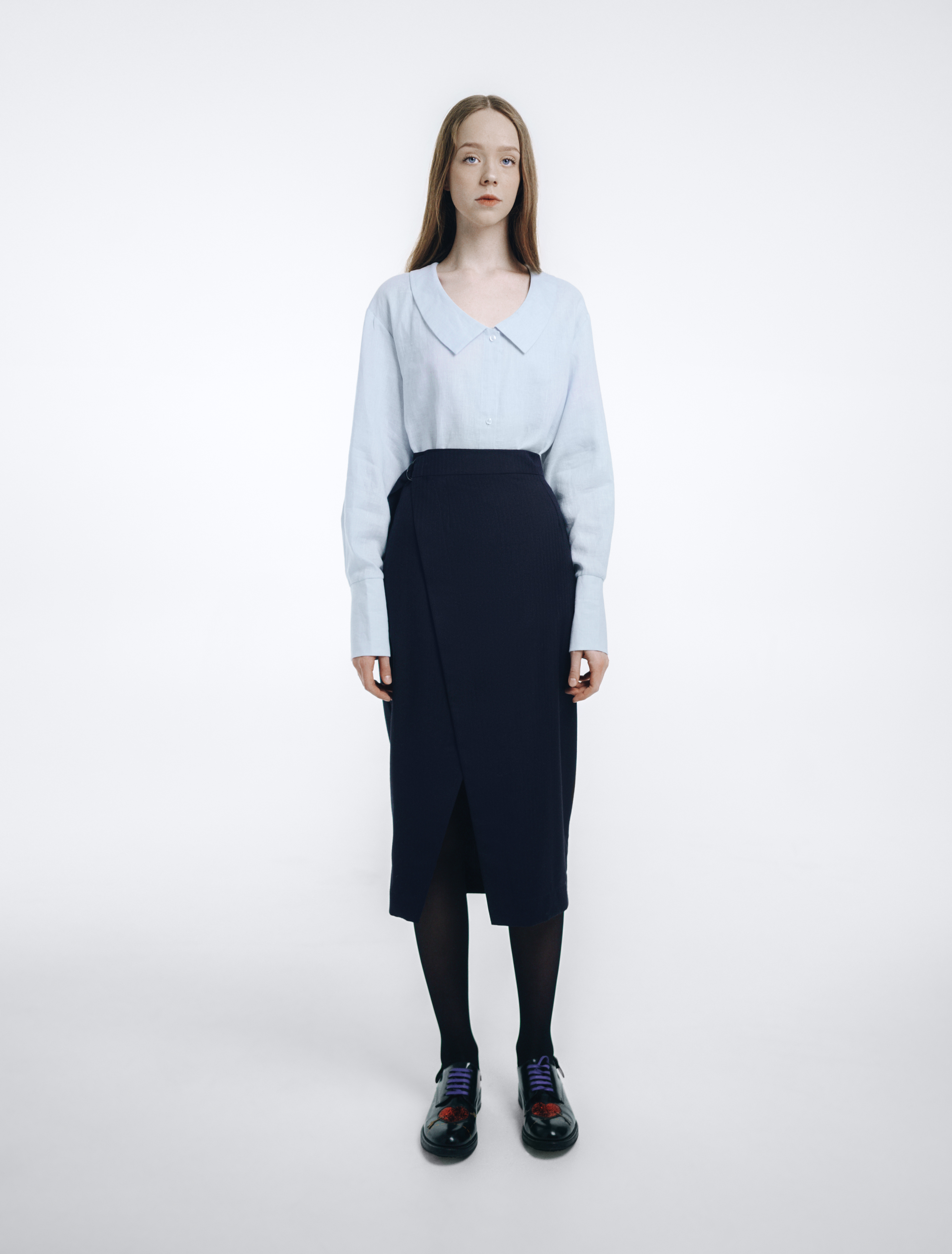 Рубашка с полукруглым низом. С отложным воротом и кокеткой на спинке. По спинке выполнена застёжка на пуговицах. Втачной рукав на широкой манжете.Ткань: поплин хлопок стрейч. Обмеры готовых изделий: Длина изделия: 73 см (42р), 73,5 см (44р), 74 см (46р), 74,5 см (48р), 75 см (50р), 75,5 см...