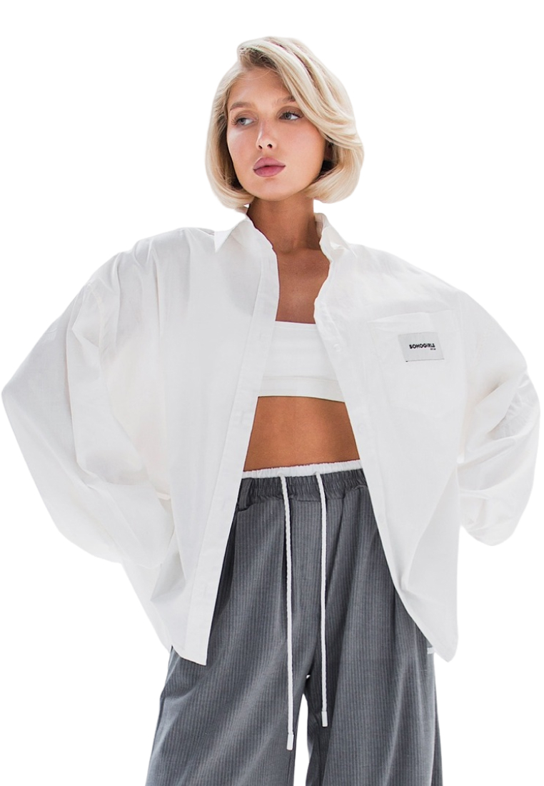 Свободная рубашка в идеальном кремовом оттенке с минималистичными акцентными бирками.
