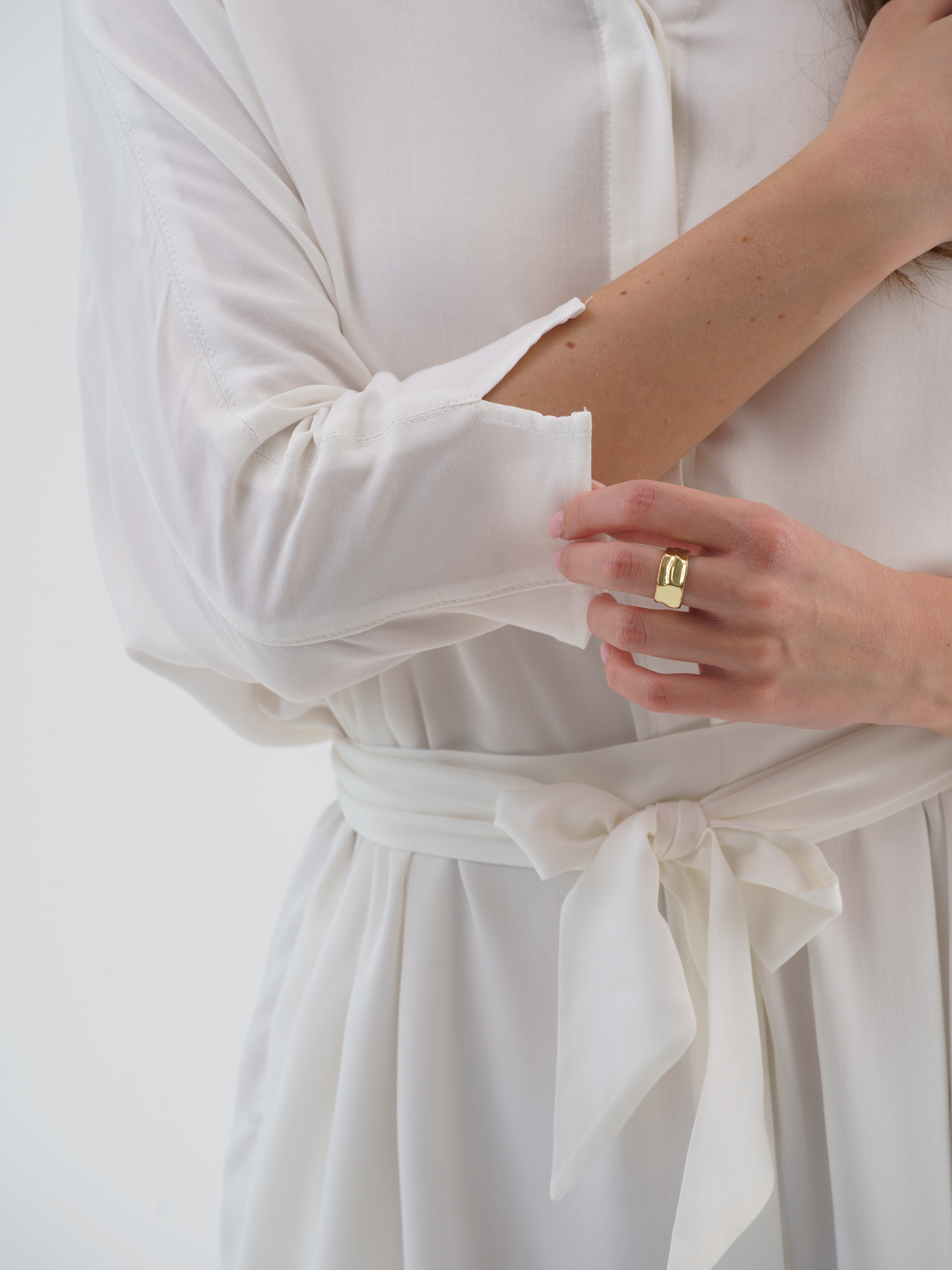 Пояс в комплекте: длинный, позволяет завязывать разными способами — подчёркивает талию, создаёт женственный силуэт или оставляет расслабленным