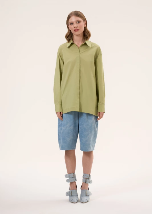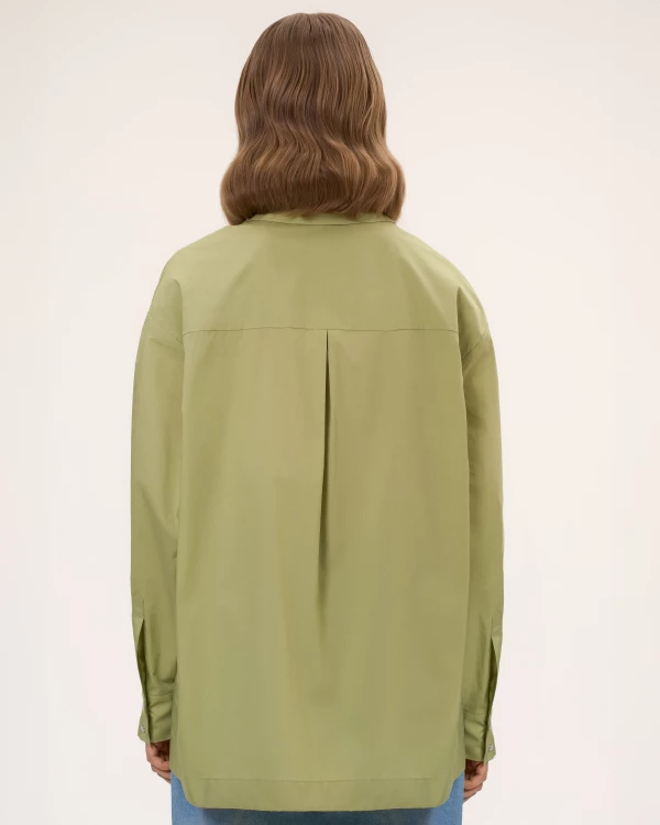 Кроп-рубашка свободного кроя из хлопка Застежка на пуговицы Воротник рубашечного типа Спущенное плечо Складка по спинке