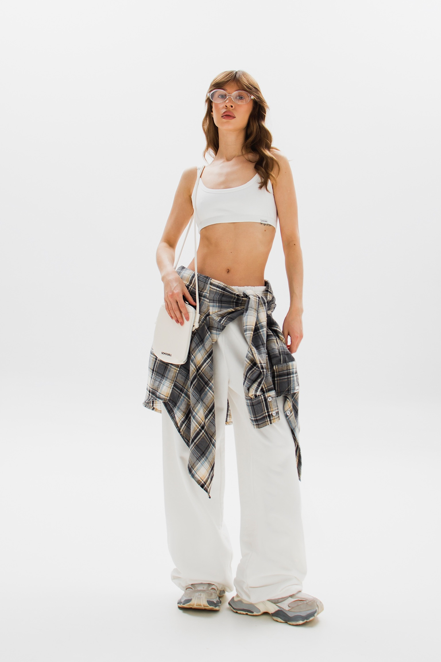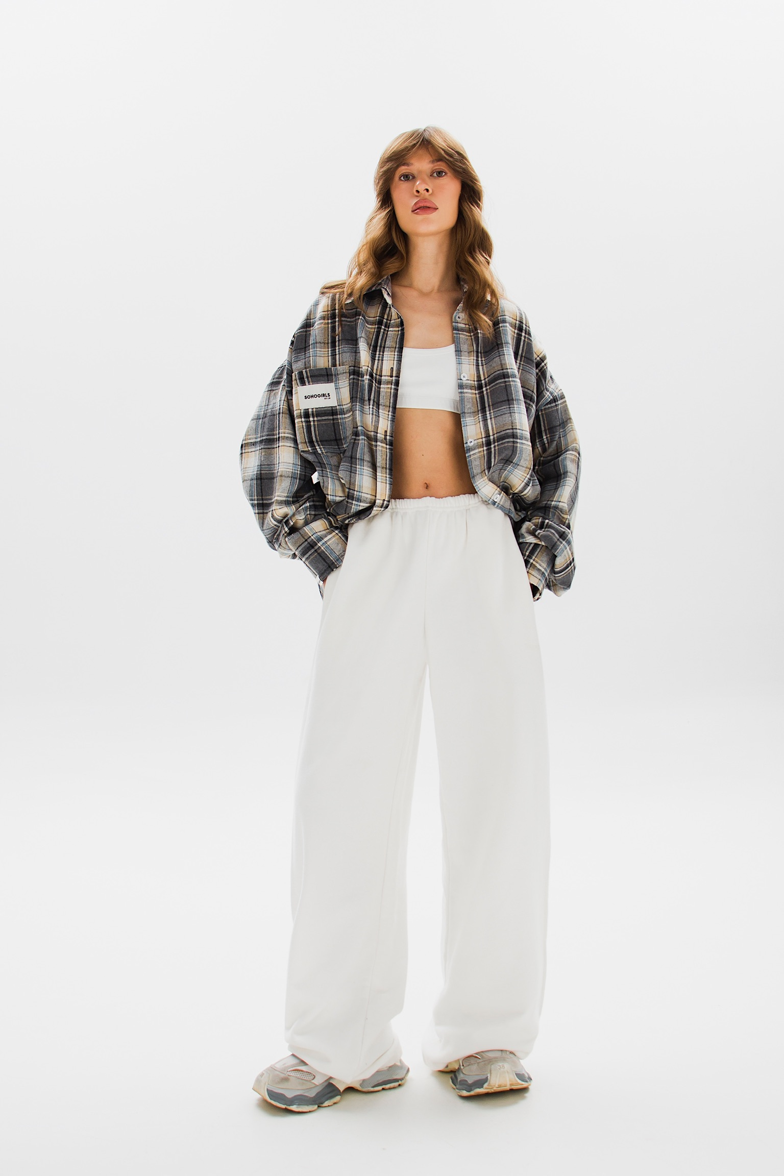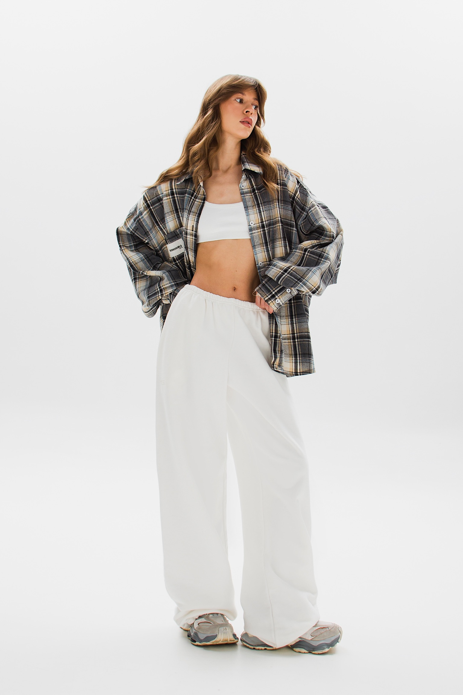 Рубашка в клетку с эффектом легкой потертости в свободном крое и со спущенной линией плеч.