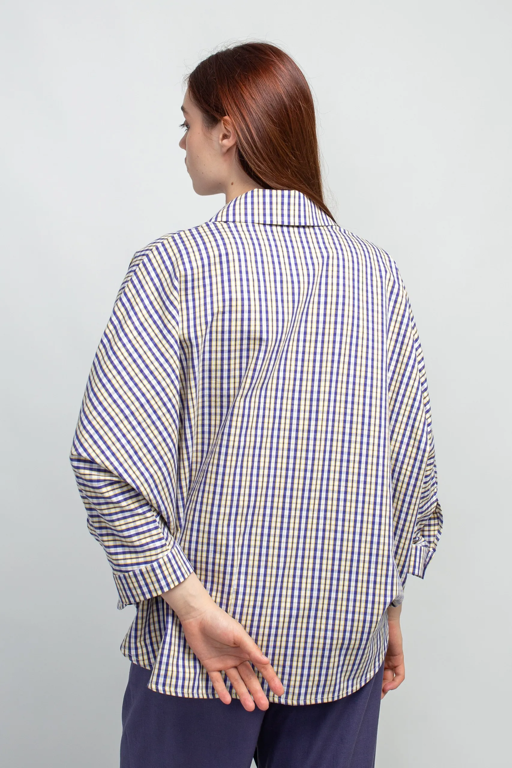 Рубашка с асимметричной спинкой. Свободный крой. Спущенная линия плеча, отложной ворот и манжеты на рукавах.Ткань: поплин хлопок стрейч. Обмеры готовых изделий: Длина изделия: 85 см (42-44р), 85,5 см (46-48р), 86 см (50-52р) Обмер изделия по груди: 118 см (42-44р), 122 см (46-48р), 126 см...