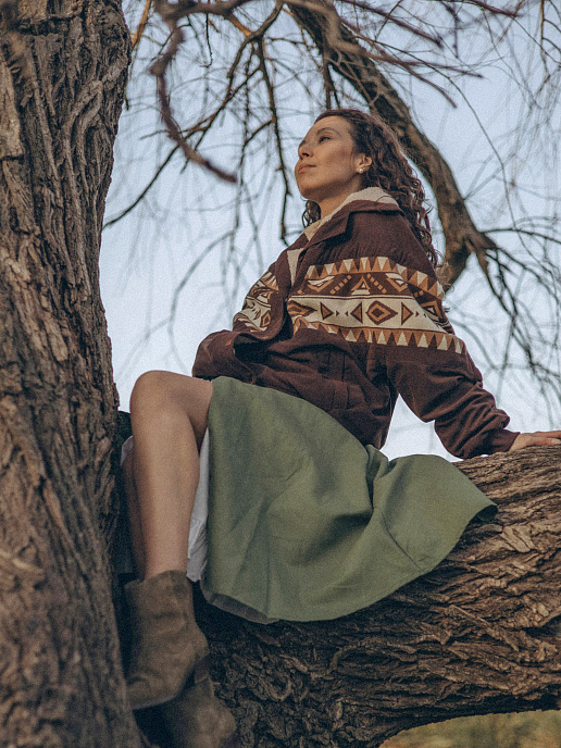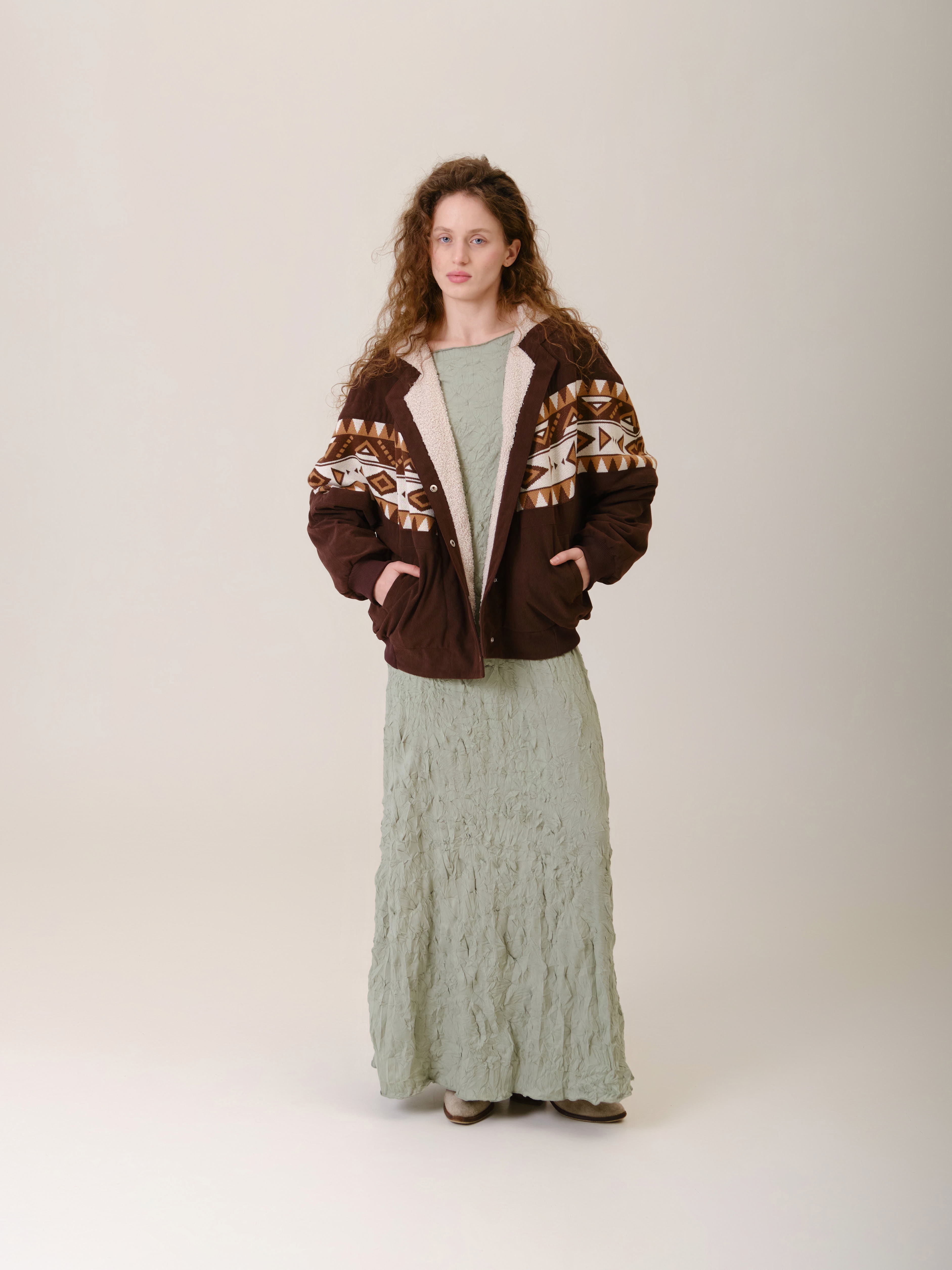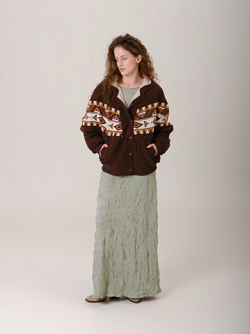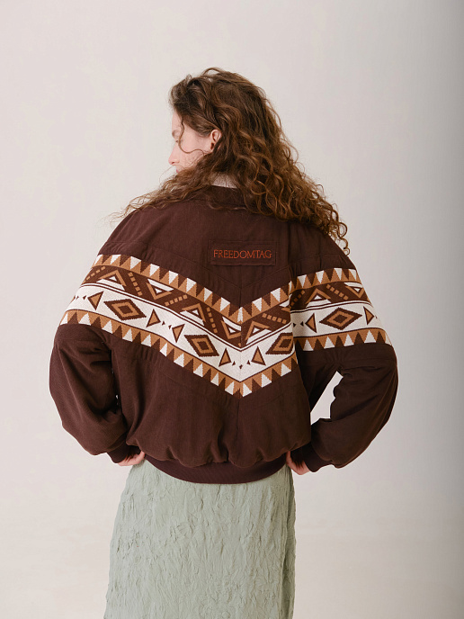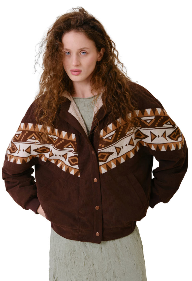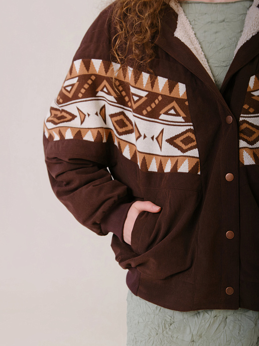 Эта куртка-бомбер - идеальный спутник для прохладной погоды. Модель сочетает вельвет и элегантные трикотажные вставки с орнаментом, а мягкая подкладка из искусственного меха «ягненок» согреет вас в промозглые дни. Свободный крой позволяет носить куртку с объемными свитерами и толстовками.