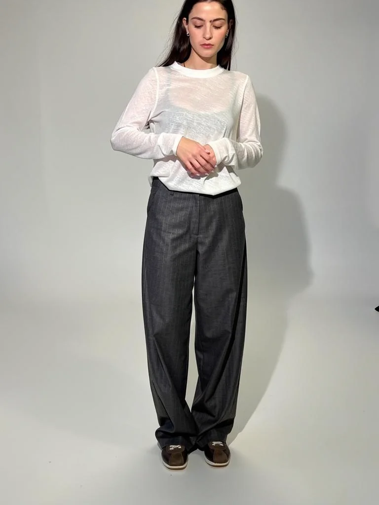 ARC — брюки в актуальном свободном силуэте, который стал ключевым в современной минималистичной моде. Комфортная посадка и широкая линия брючин формируют вытянутую архитектурную пропорцию, создавая спокойный и уверенный образ.