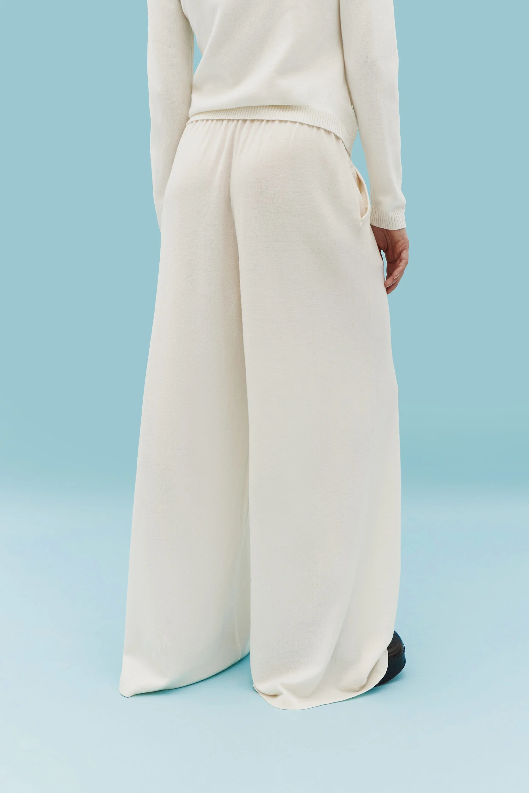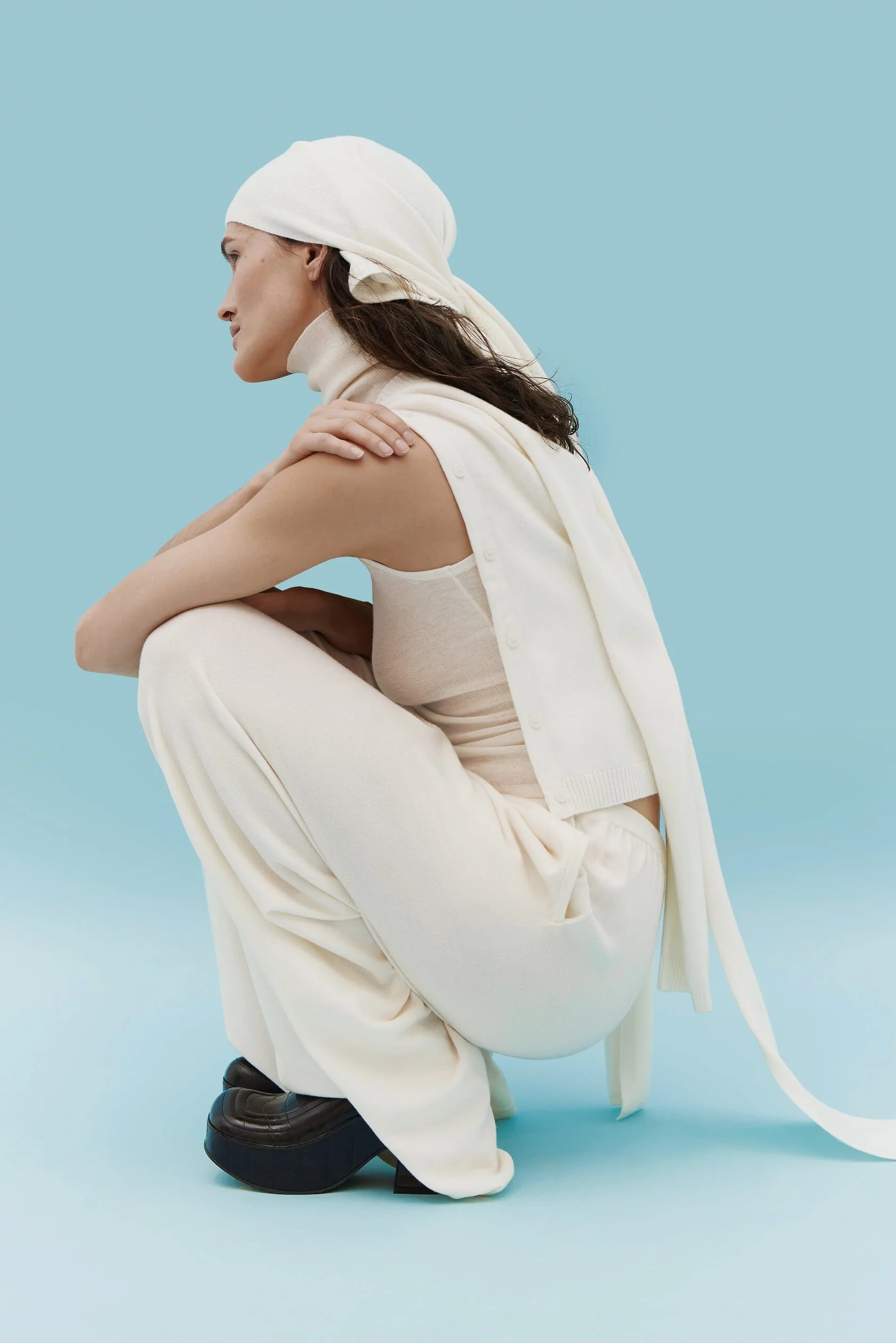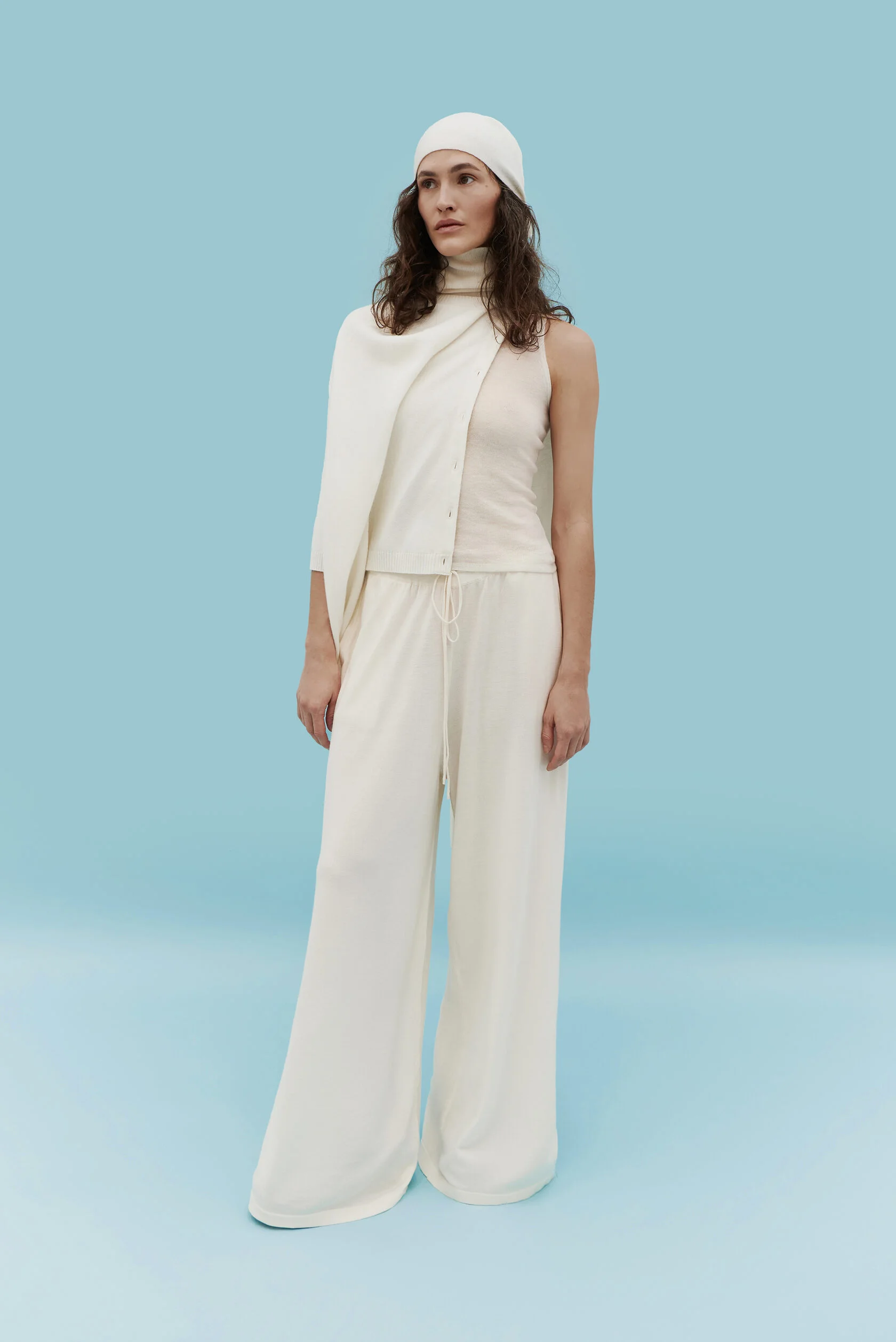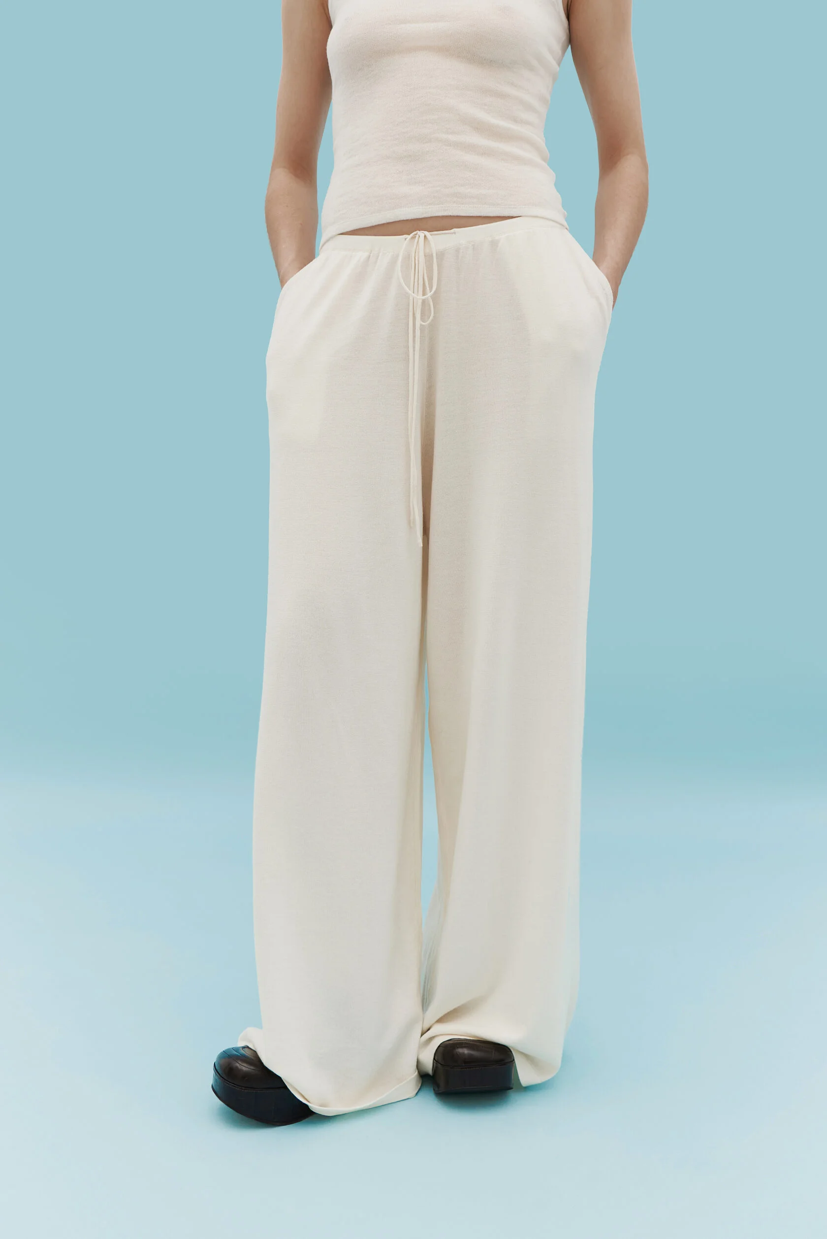 За счет того, что изделие выполнено из тонкой шерсти, брюки сохраняют легкую свободу, а тонкий пояс на резинке не утяжеляет образ. Модель представлена в едином размере и рассчитана на среднюю посадку, которую можно регулировать при помощи шнурка внутри пояса.