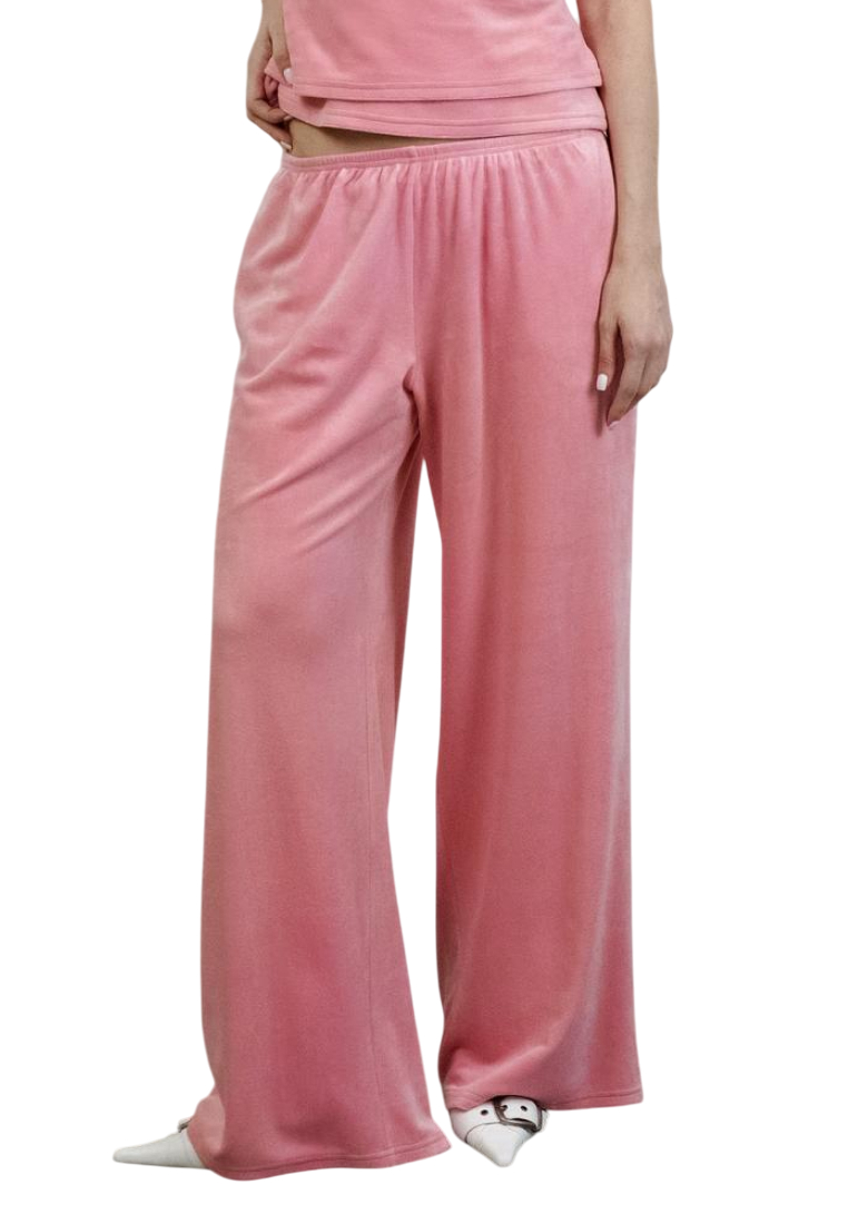 Брюки прямого кроя со средней посадкой из велюровой ткани , на мягкой комфортной резинке, дополнены аккуратными боковыми карманами.