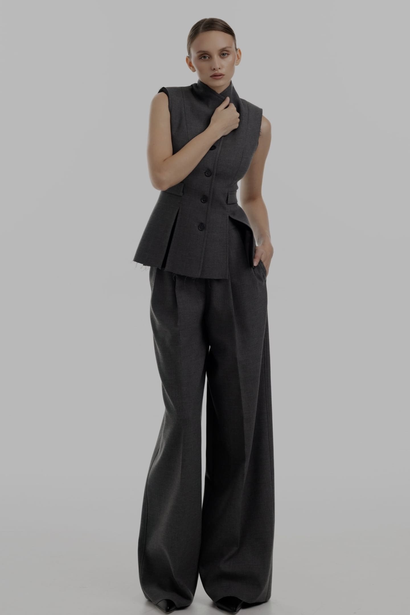С жилетом в тон — для архитектурного total look, или с базовым топом — для современной повседневной элегантности.