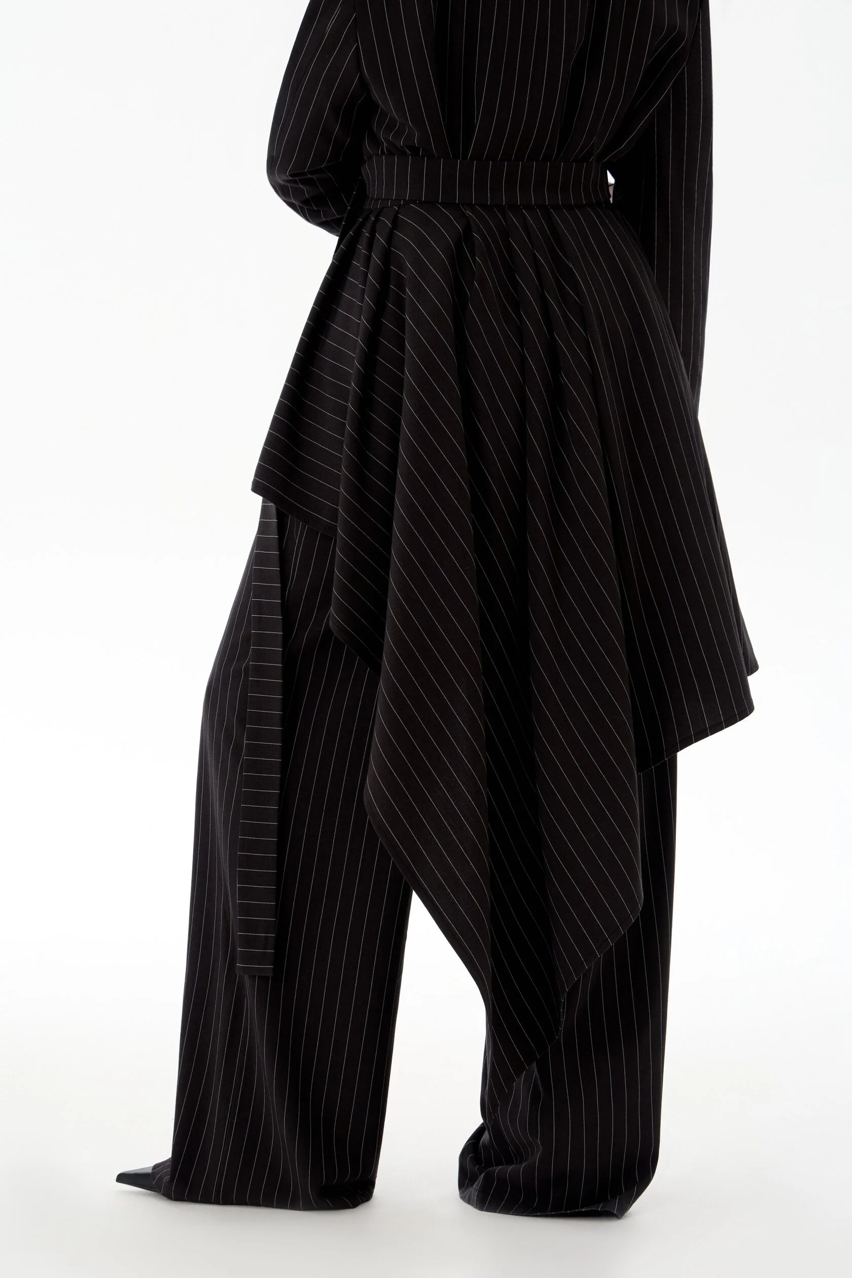 Брюки в полоску с заниженной талией Созданы для тех, кто ценит элегантность с налётом дерзости. Эти брюки идеально дополняют костюм «тройку», но могут стать самостоятельным элементом стильного образа. Прямой крой визуально удлиняет силуэт, а заниженная талия добавляет современного шика....
