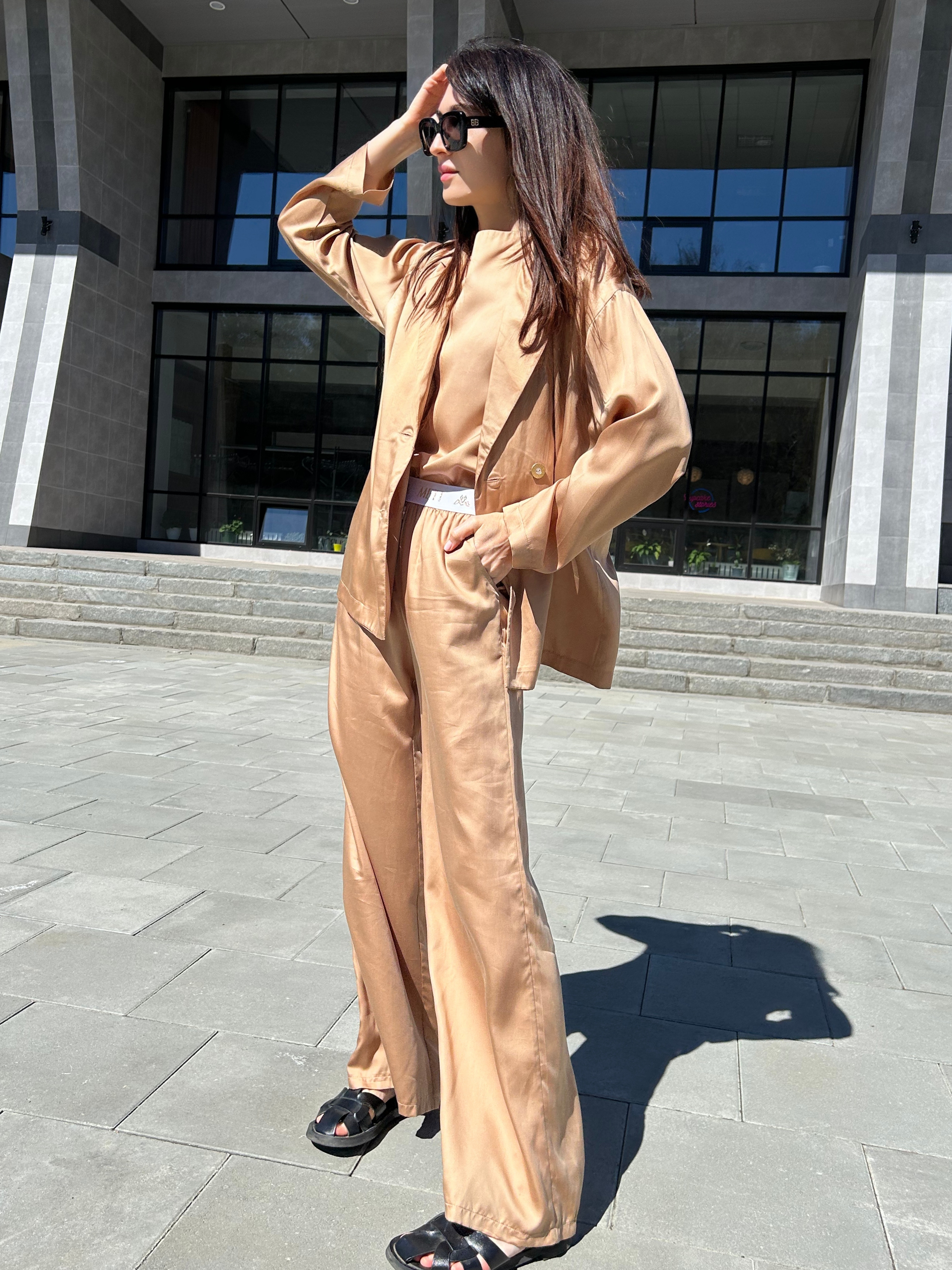 Брюки-палаццо классического кроя. Благодаря высокой посадке подходят для любого типа фигуры. Вытягивают силуэт и могут вписаться в любой образ.