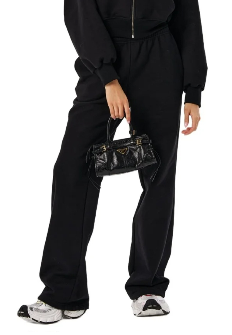 Широкие брюки-трубы на высокой посадке с плотным эластичным поясом, дополненный завязкой с логотипом бренда. Модель идеально садится на девушек ростом от 170 см. Для составления уютного и теплого комплекта вы можете выбрать вязаный джемпер из такой же мягкой ткани.