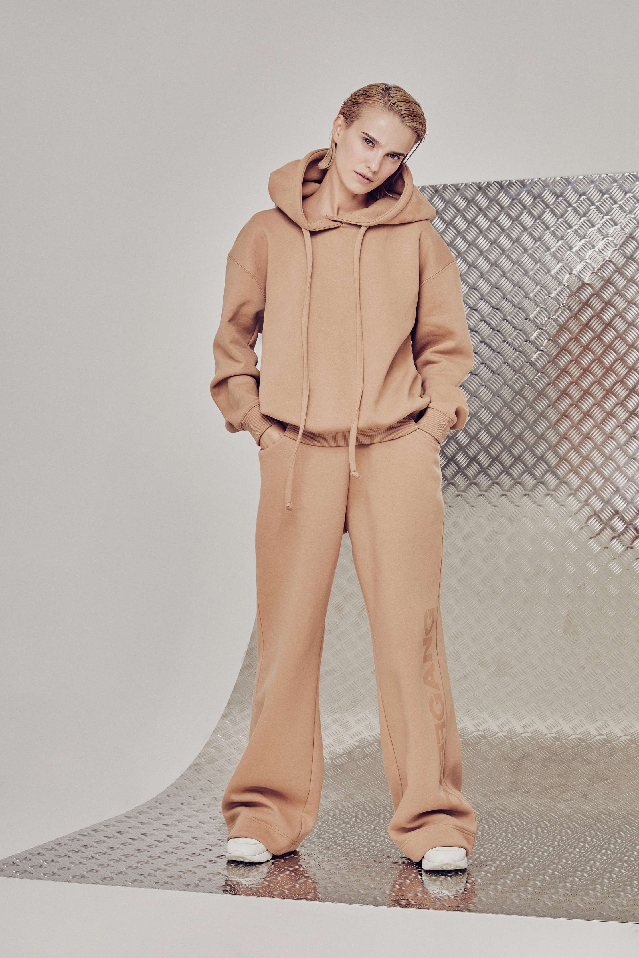 Рыжие брюки с крупным лого. Материал: Футер трёхнитка (с начёсом). Способ печати: шелкография. Пояс на резинке (без завязок).