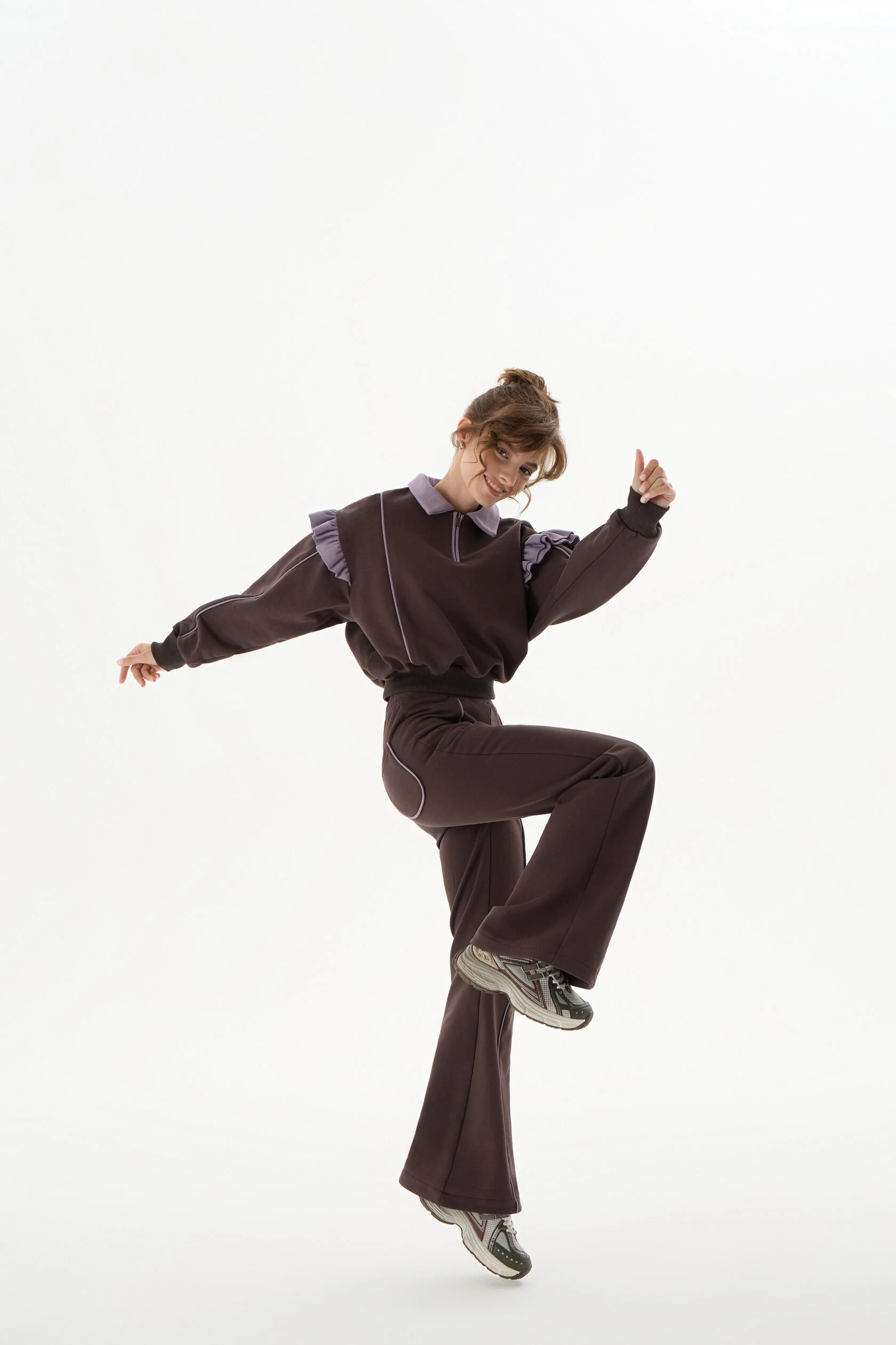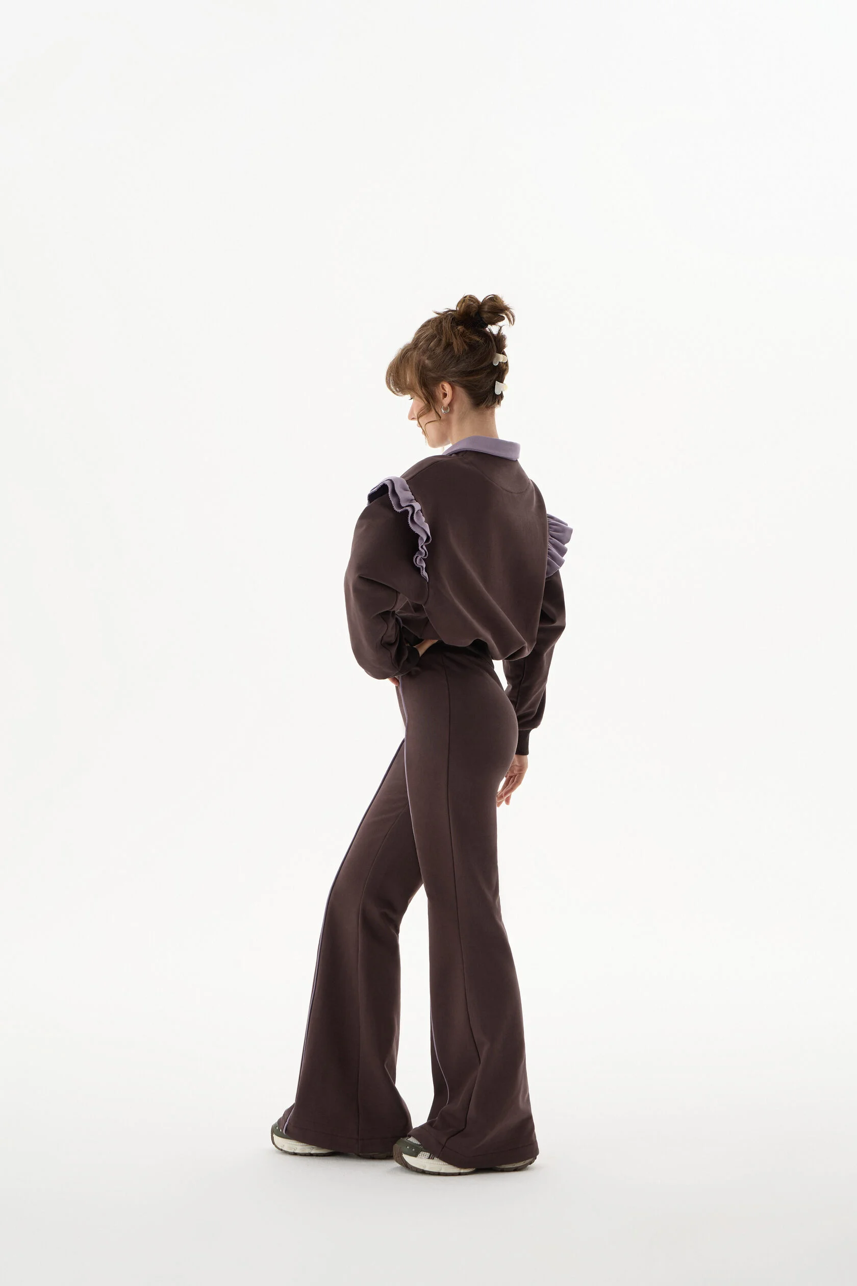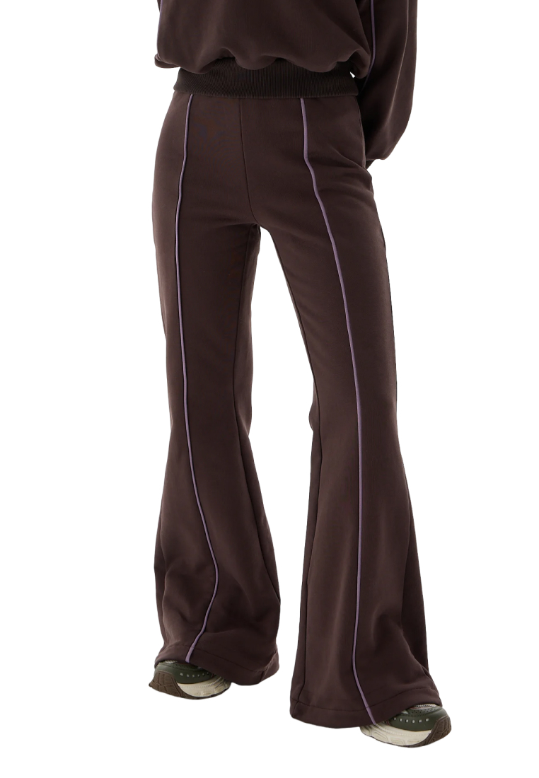 Брюки клёш созданы для того, чтобы подчеркивать красивые женские ноги. Контрастные канты визуально вытягивают формы, а прилегающий силуэт с завышенной талией рассталяет правильные акценты на вашей фигуре.
