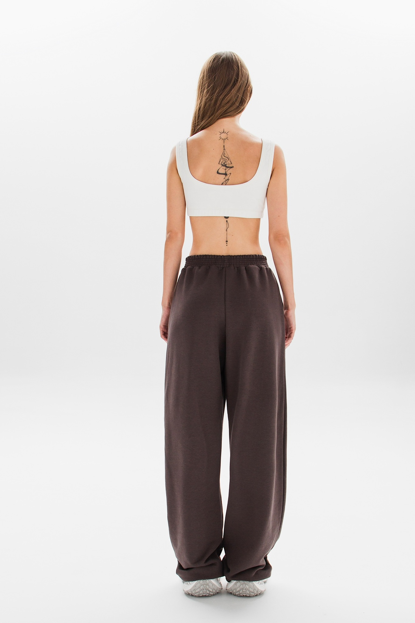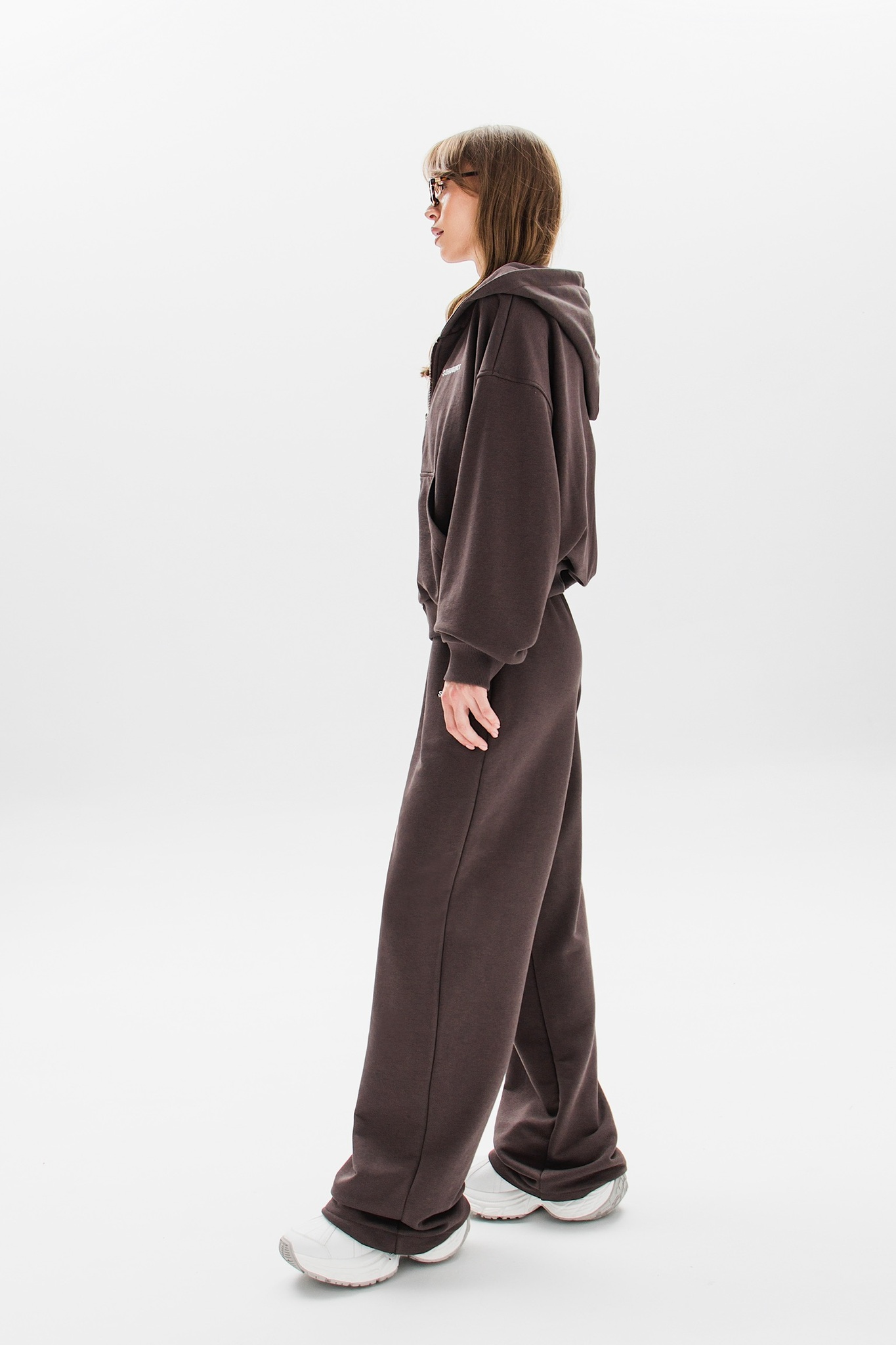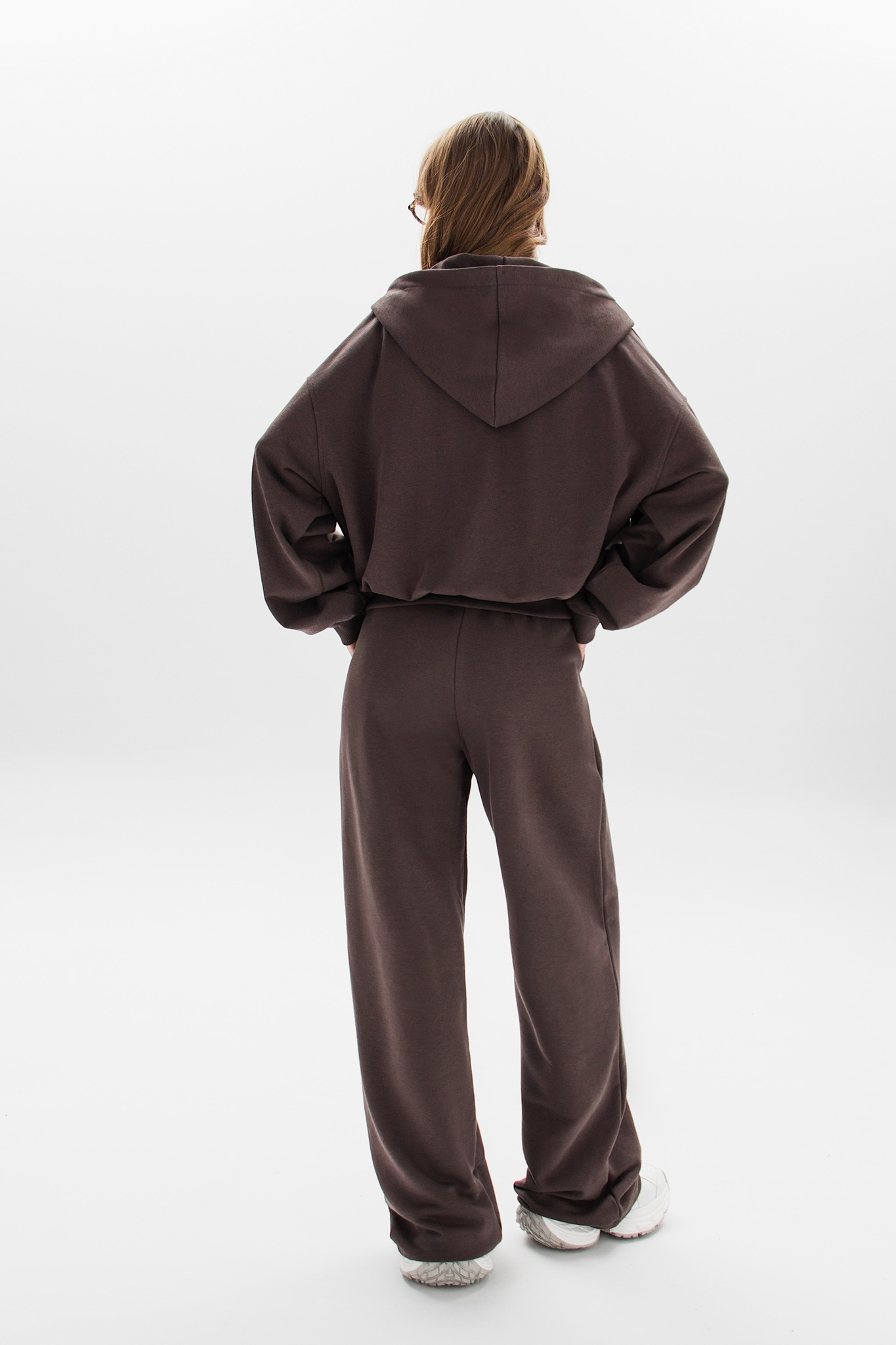 Брюки можно носить как классические палаццо или трансформировать в стильные джоггеры, используя скрытые фиксаторы снизу.