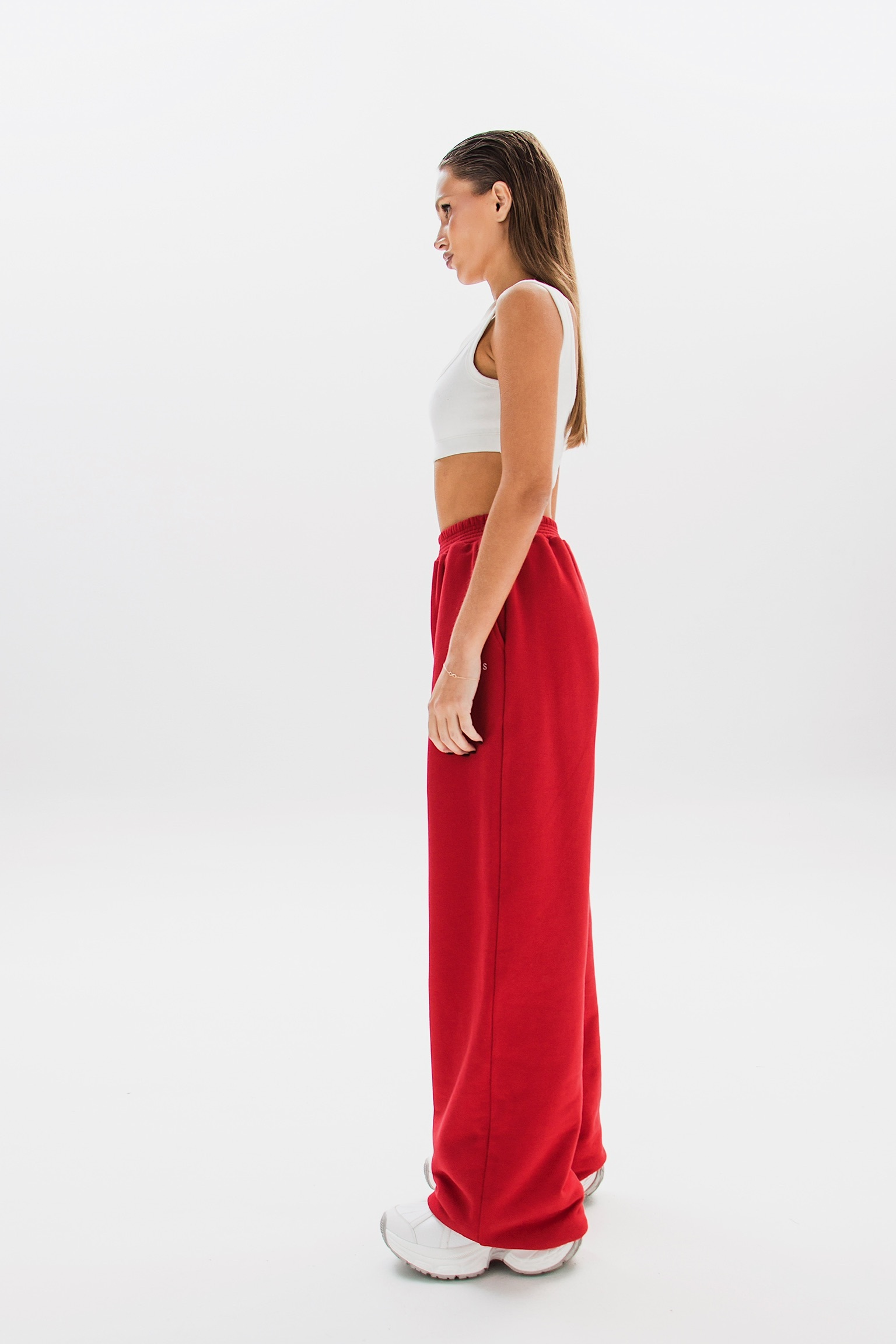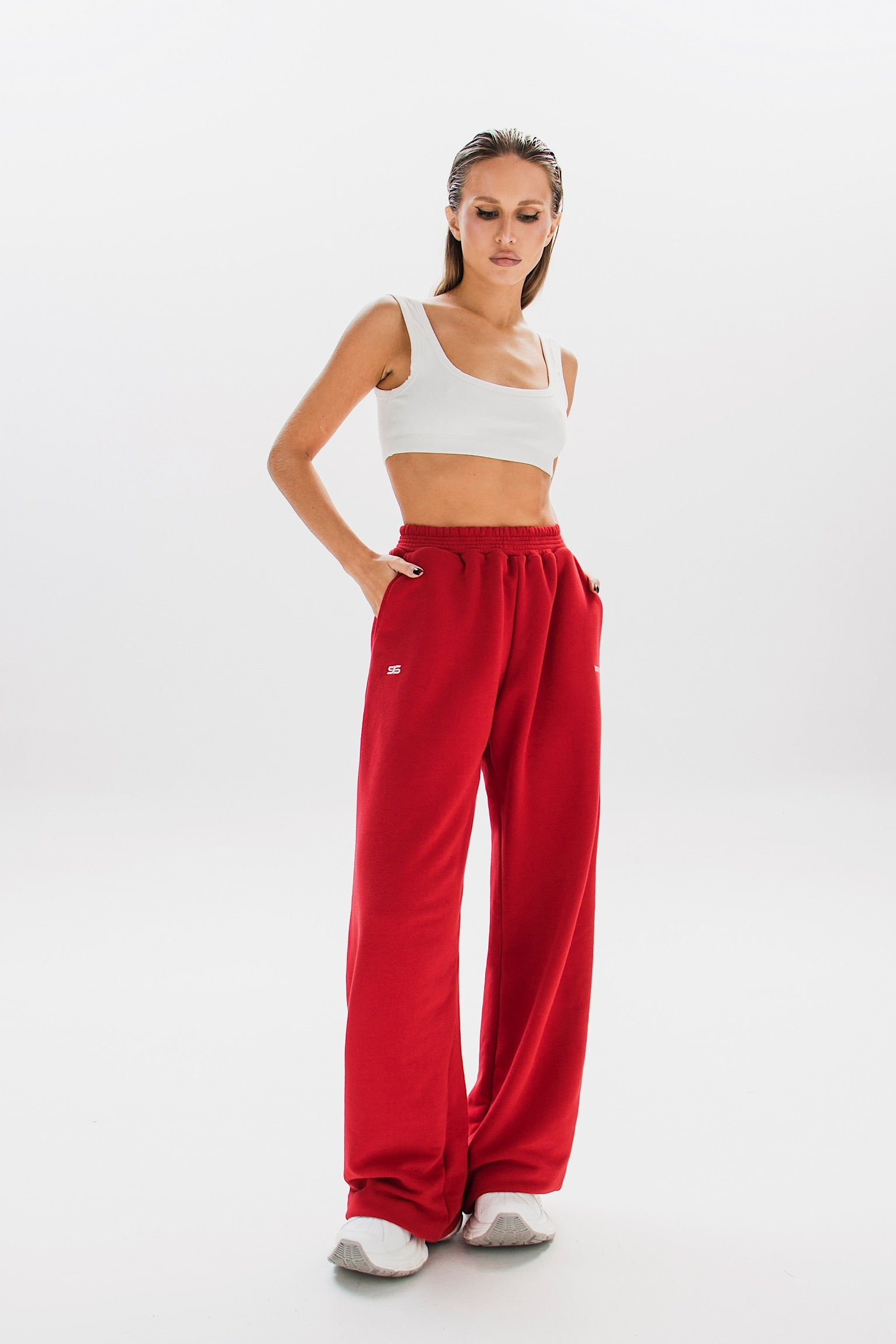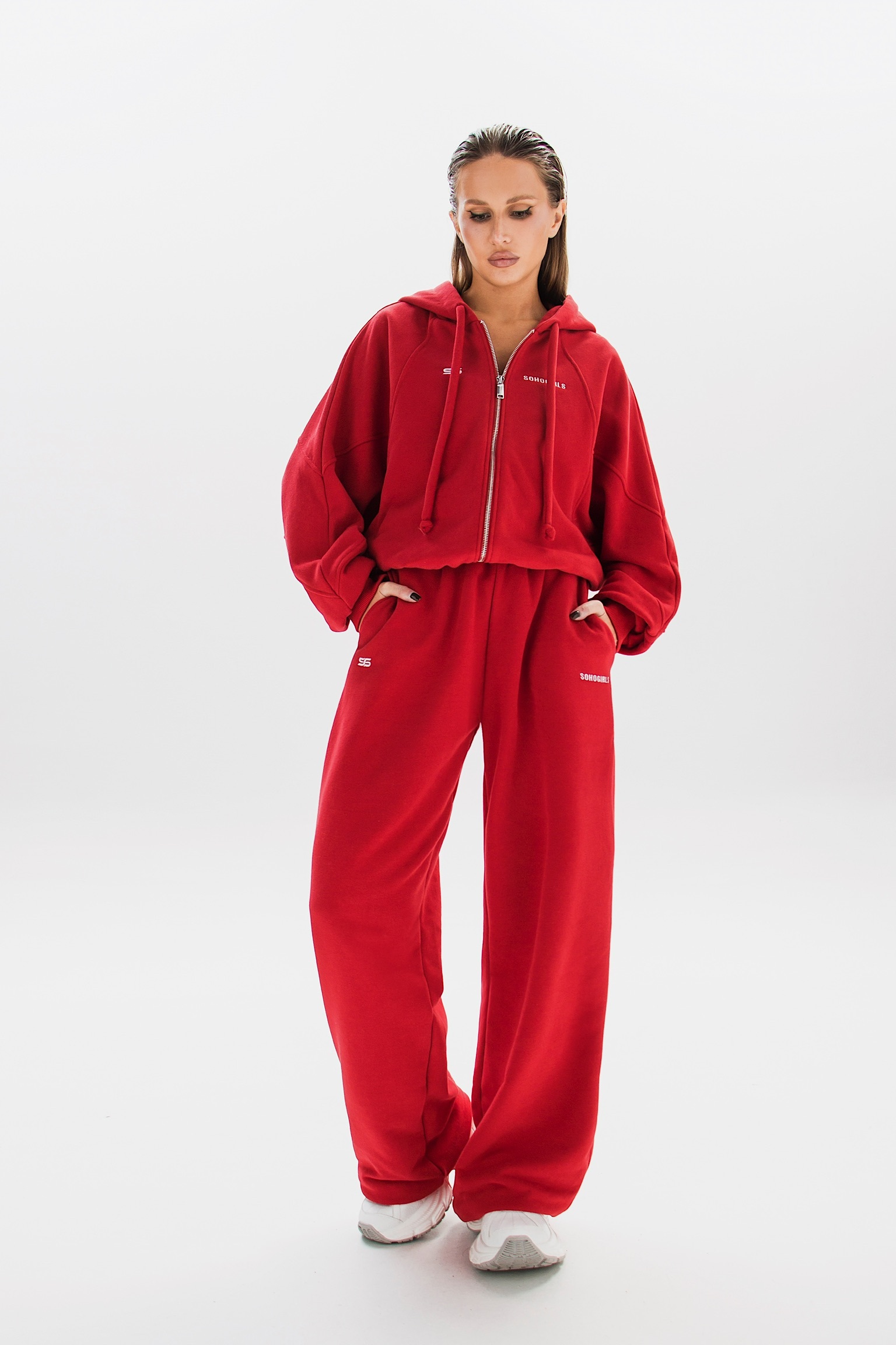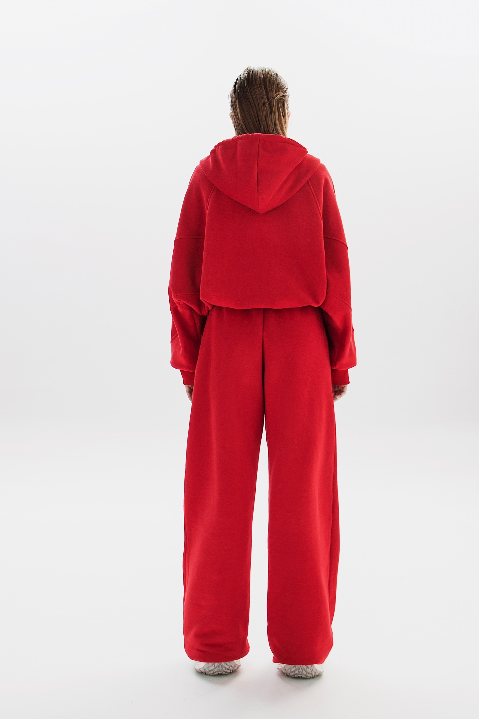 Брюки можно носить как классические палаццо или трансформировать в стильные джоггеры, используя скрытые фиксаторы снизу. Такой функциональный дизайн подойдет для создания различных образов