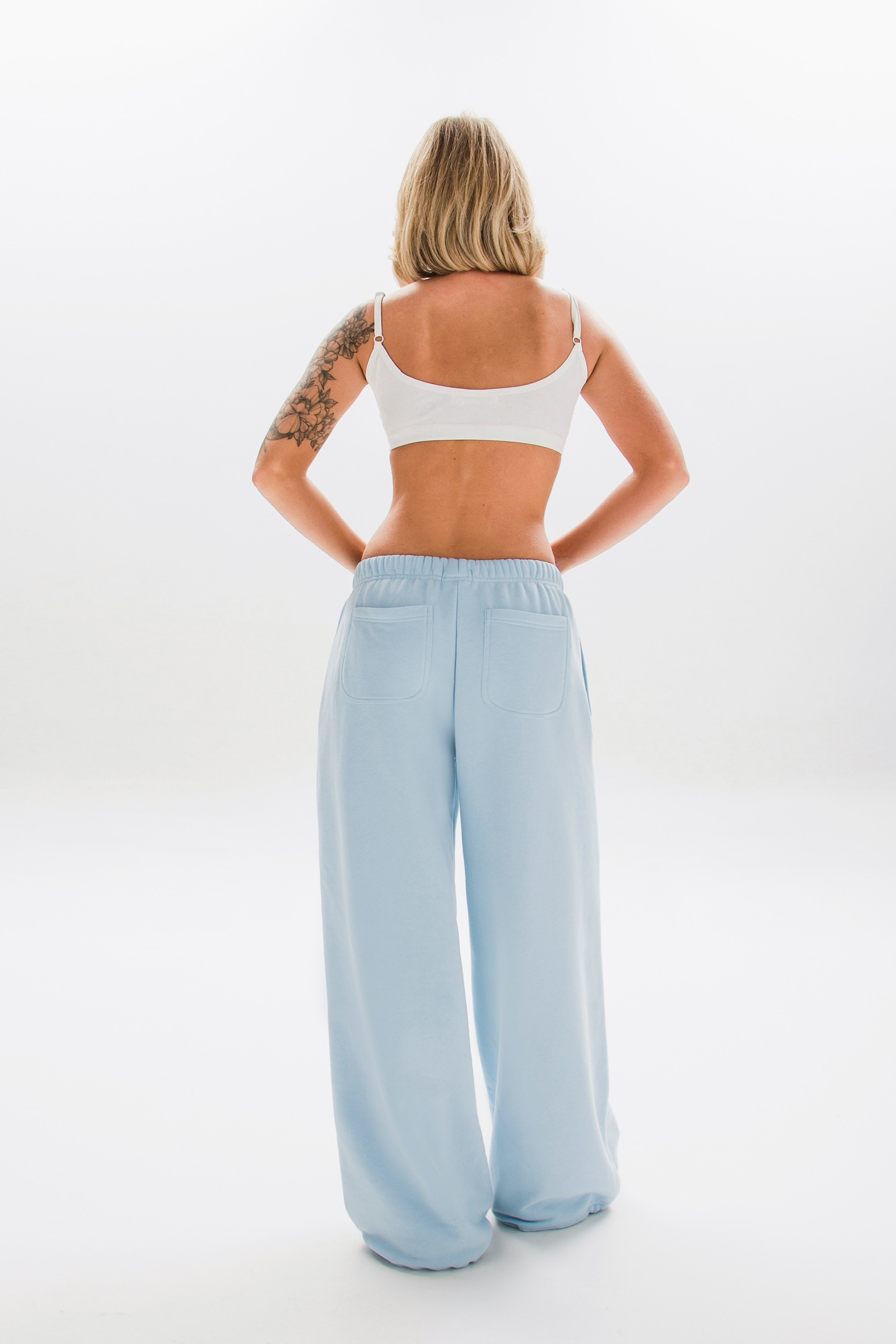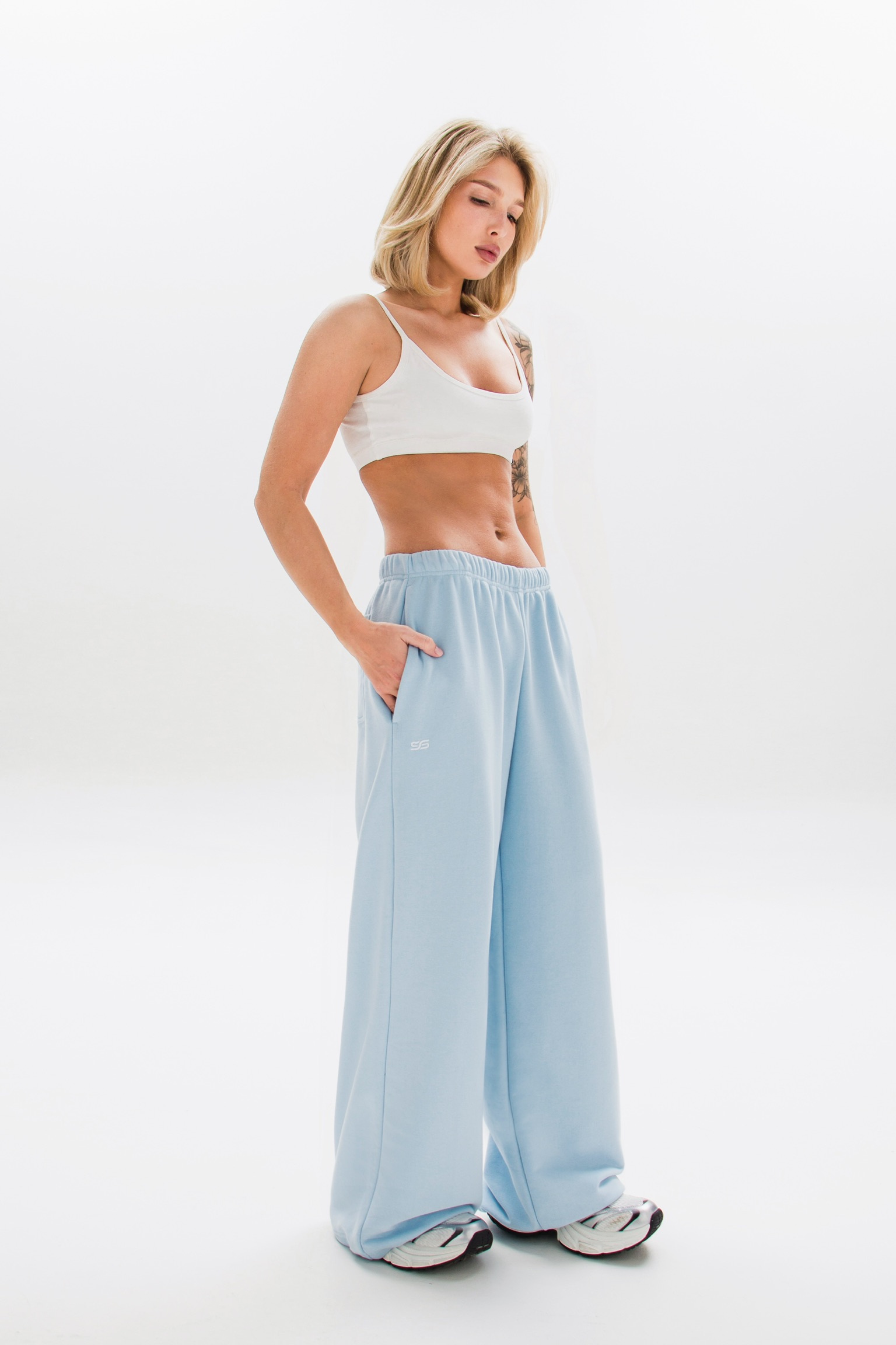 Снизу предусмотрены фиксаторы, которые позволяют регулировать силуэт — носить брюки более свободно или собирать по низу.