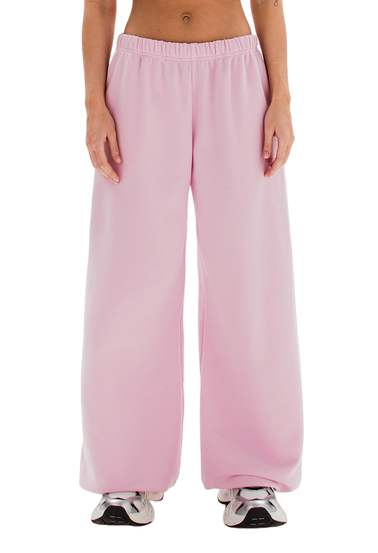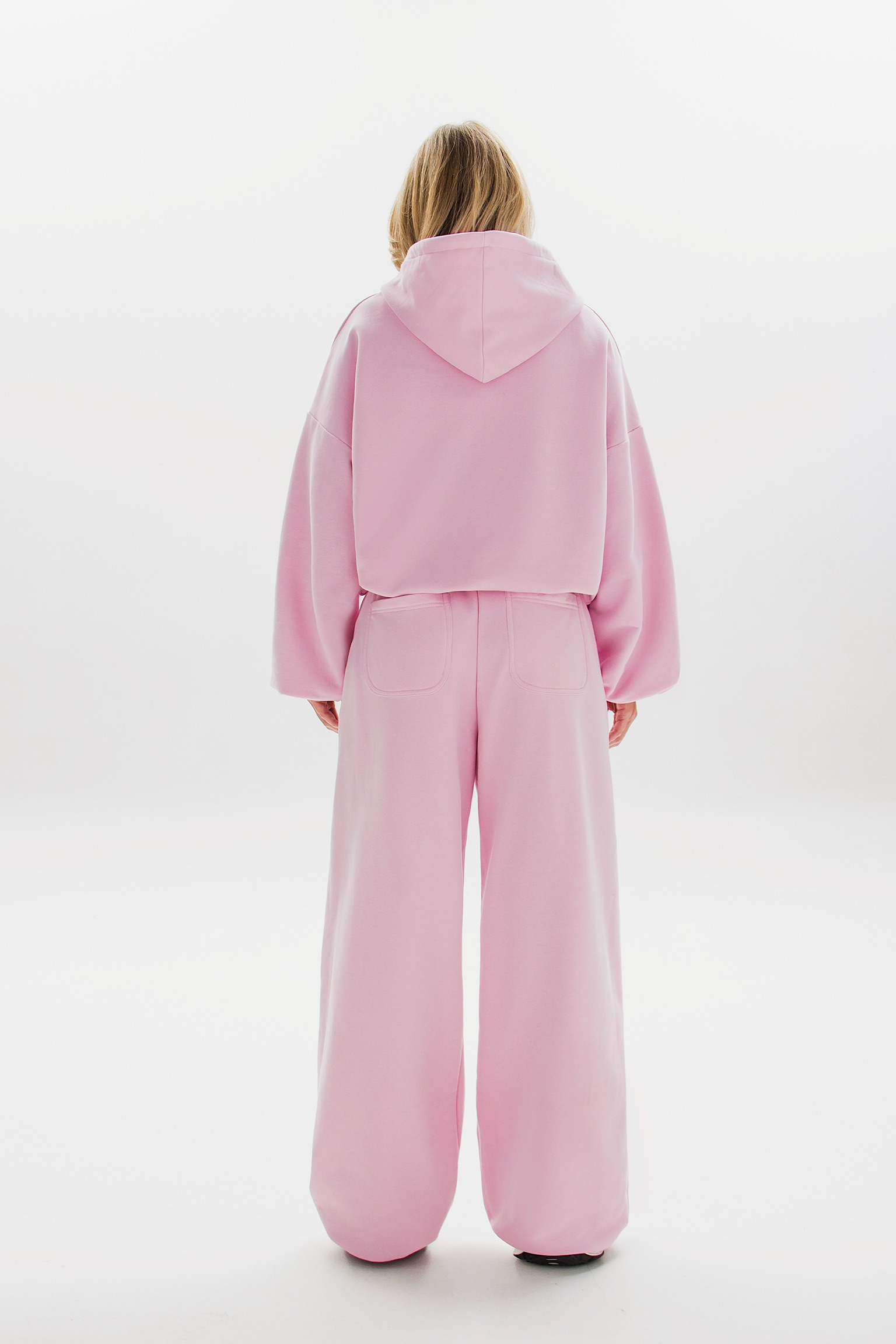Трикотажные брюки свободного кроя из плотного и мягкого футера с начесом. Из деталей: мягкая широкая резинка, контрастный шнурок, стрелки. Брюки составляют идеальную пару с худи из той же ткани, а также они легко способны подружиться со всем вашим базовым гардеробом.