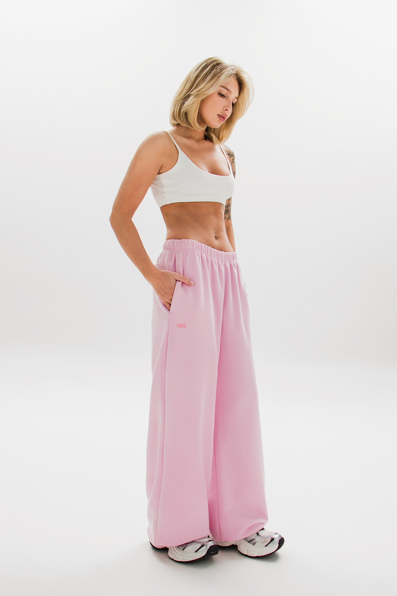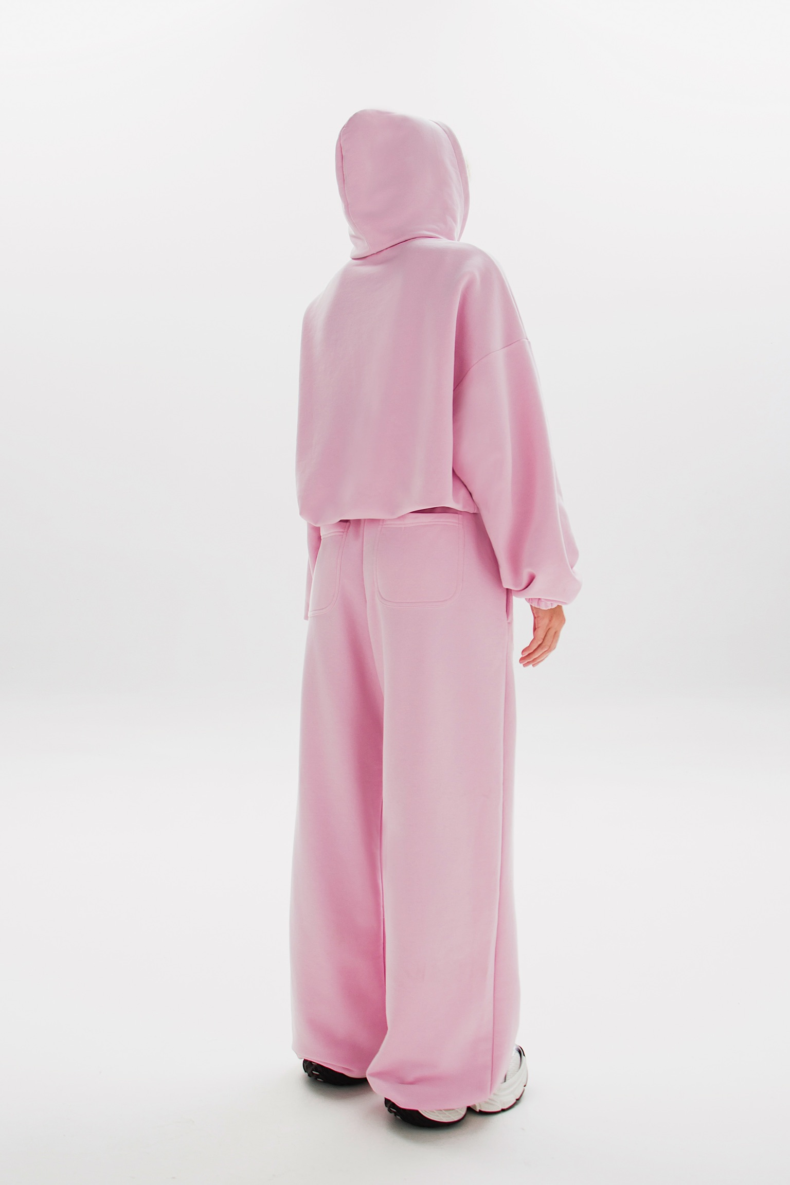Широкие брюки-трубы на высокой посадке с плотным эластичным поясом, дополненный завязкой с логотипом бренда. Модель идеально садится на девушек ростом от 170 см. Для составления уютного и теплого комплекта вы можете выбрать вязаный джемпер из такой же мягкой ткани.