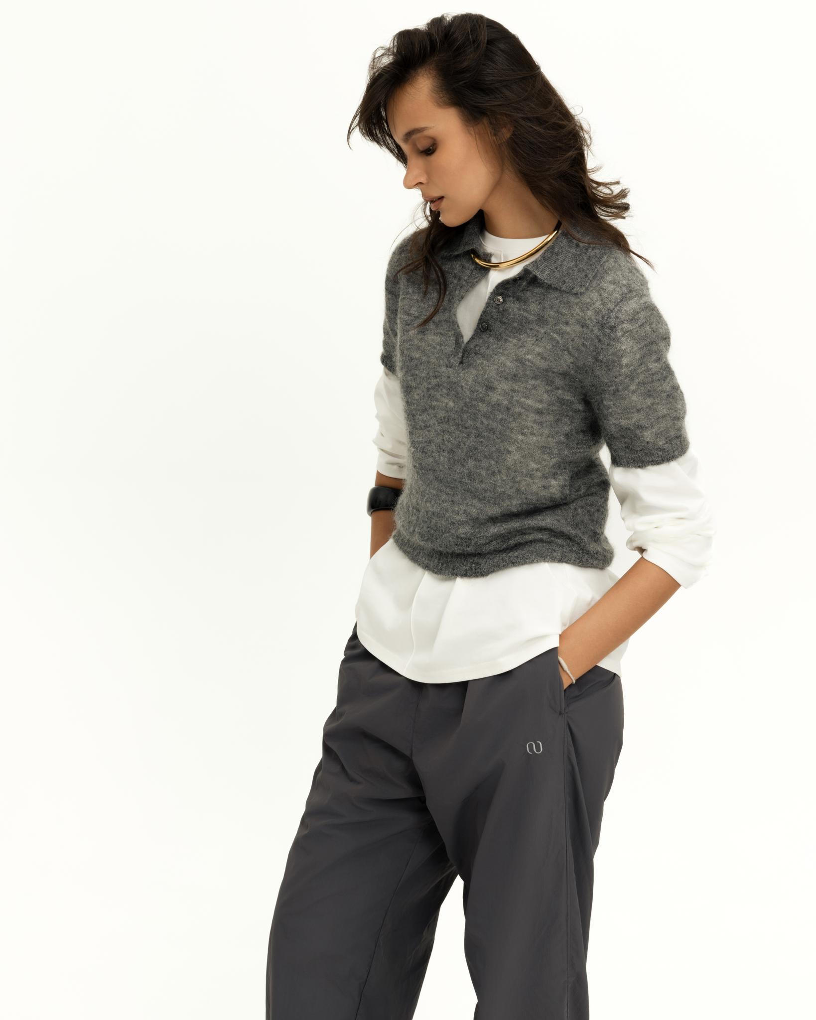 Широкие брюки-трубы на высокой посадке с плотным эластичным поясом, дополненный завязкой с логотипом бренда. Модель идеально садится на девушек ростом от 170 см. Для составления уютного и теплого комплекта вы можете выбрать вязаный джемпер из такой же мягкой ткани.