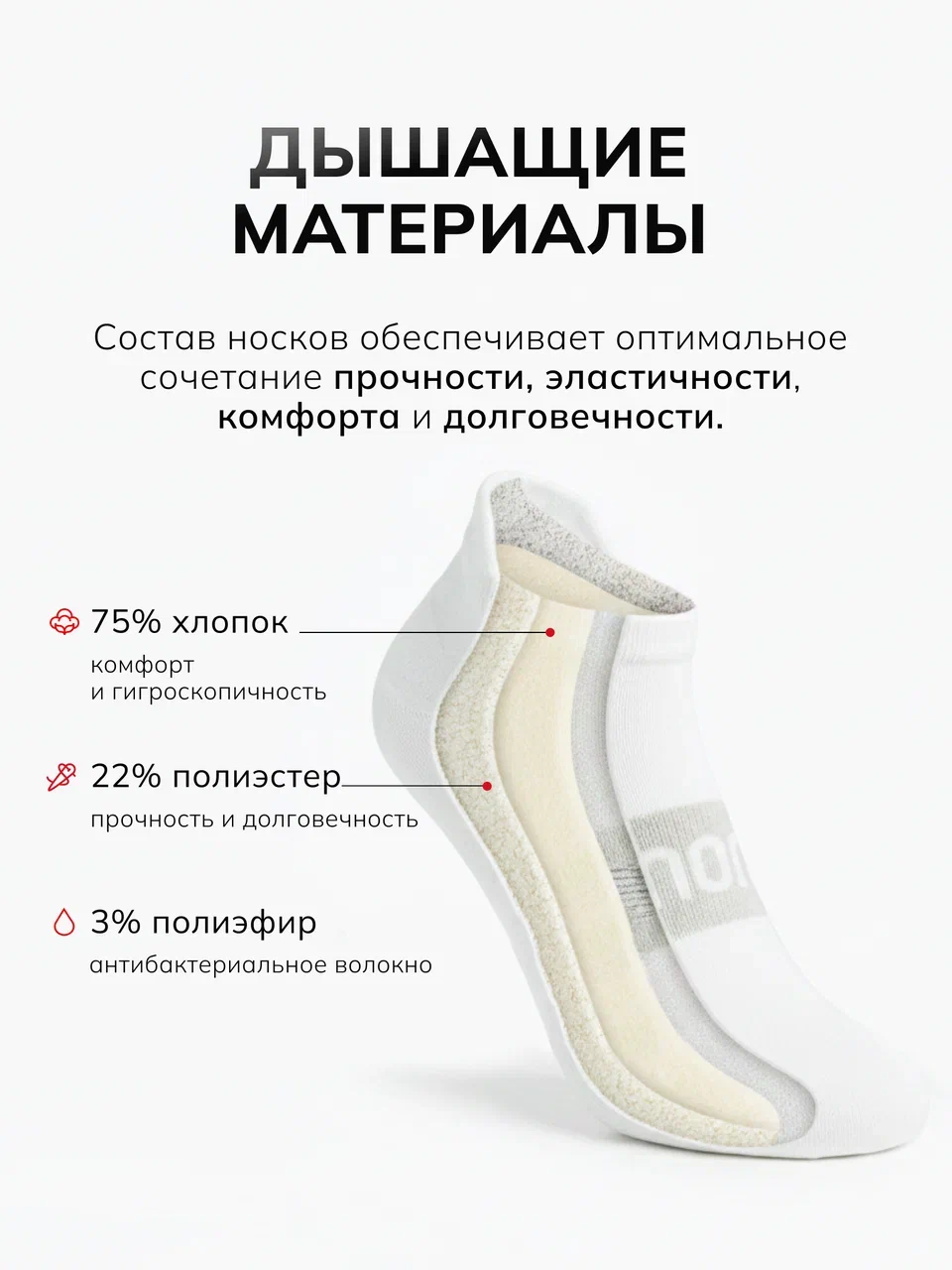 Премиальные спортивные носки, созданные для ваших тренировок. Разрабатывались с учетом высокой физической активности, нагрузки на стопу и необходимости защиты ног от травм, натирания и усталости.