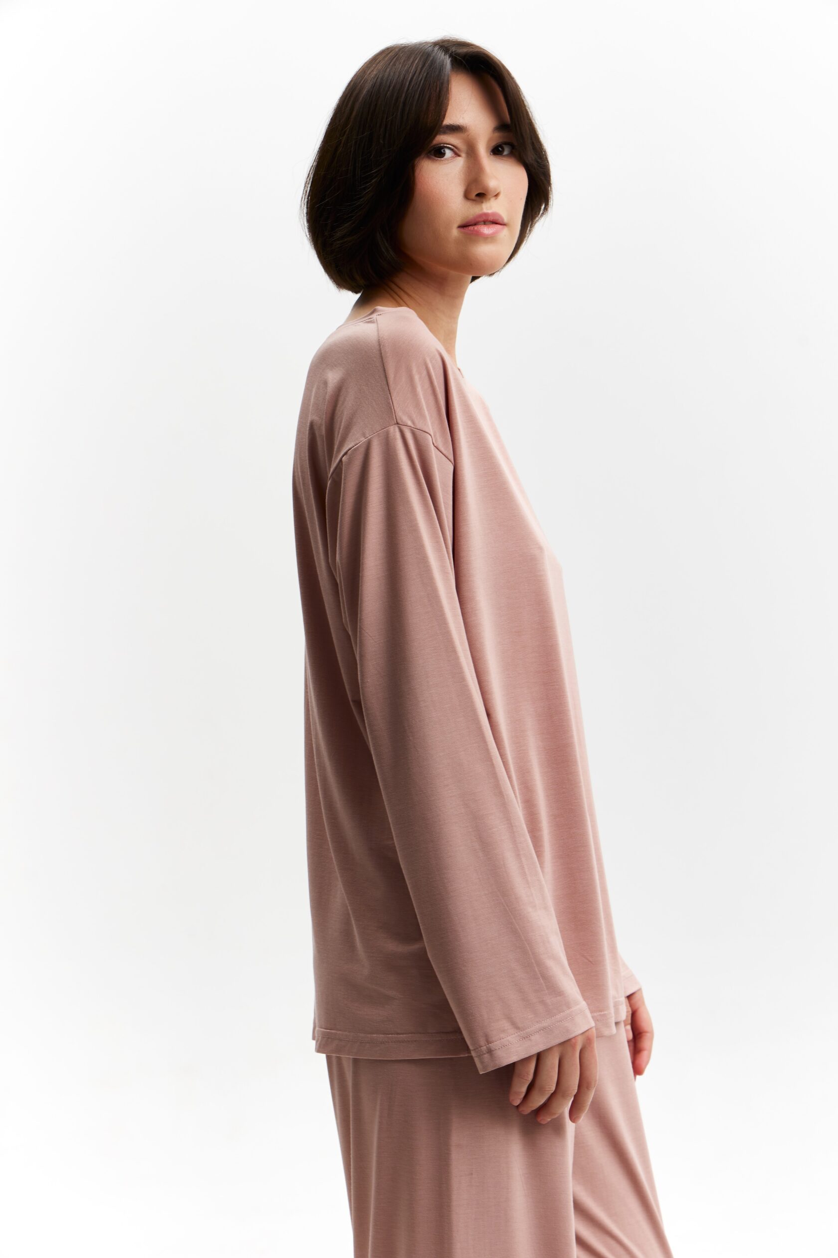 Пижама Лерида удобный комплект из мягкой вискозы. Классический фасон: длинная блузка-рубашка и прямые и свободные брюки. Подходит для ежедневного комфорта и спокойного сна.