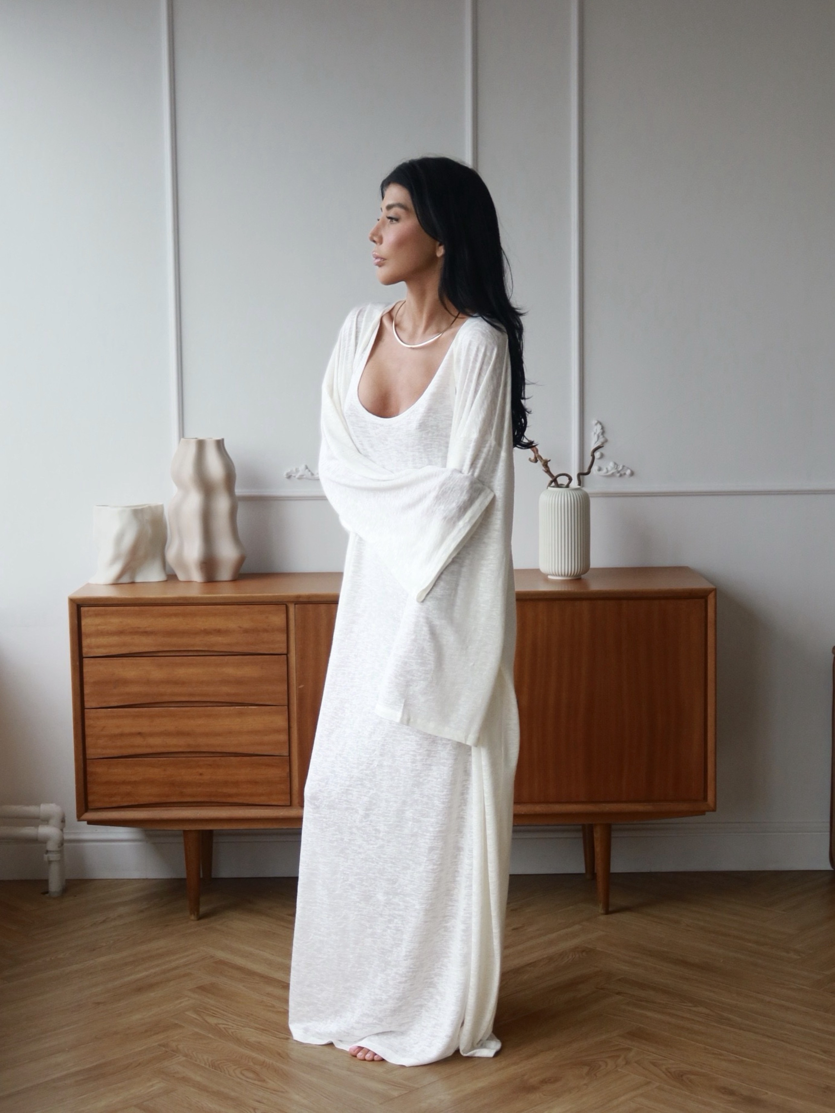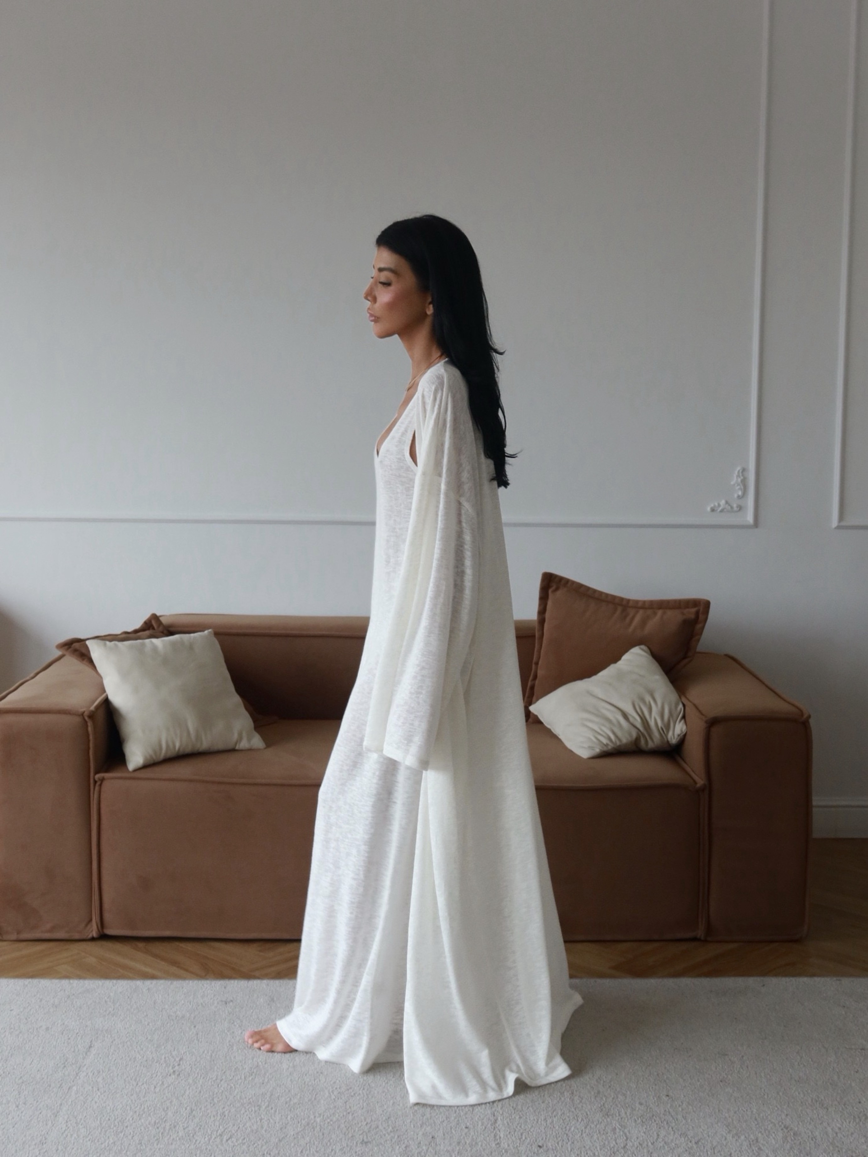 Все изделия из капсулы идеально сочетаются, дополняют друг друга и идеально интегрируются в повседневный гардероб. В капсулу входят: кардиган, кимоно, платье, лонгслив, майка, брюки.