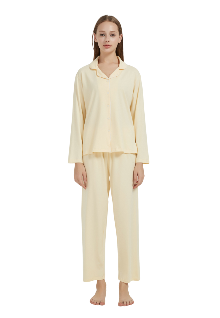 Верхняя часть пижамы выполнена в виде рубашки с длинными рукавами, которая обеспечивает дополнительную теплоту и комфорт. Брюки пижамы имеют эластичный пояс, который обеспечивает идеальную посадку на вашей талии.