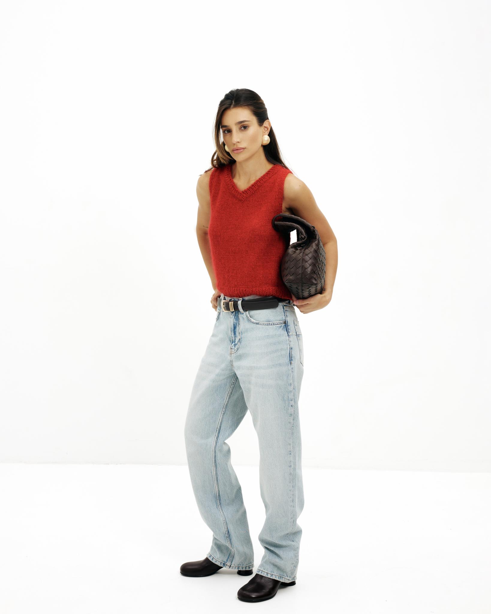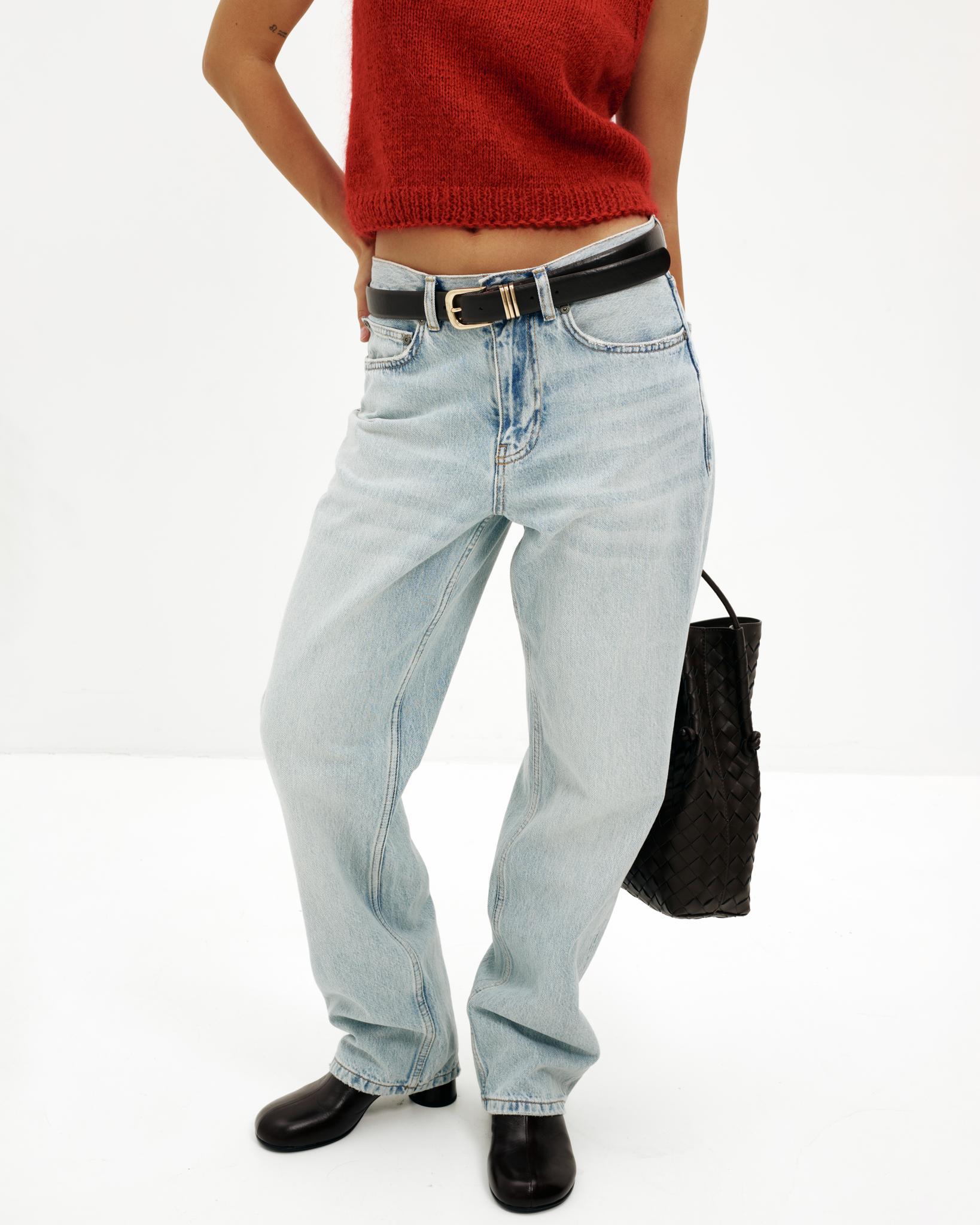 Джинсы прямого кроя со свободной набедренной посадкой "boyfriend". Изготовлены из 100% органического хлопка.