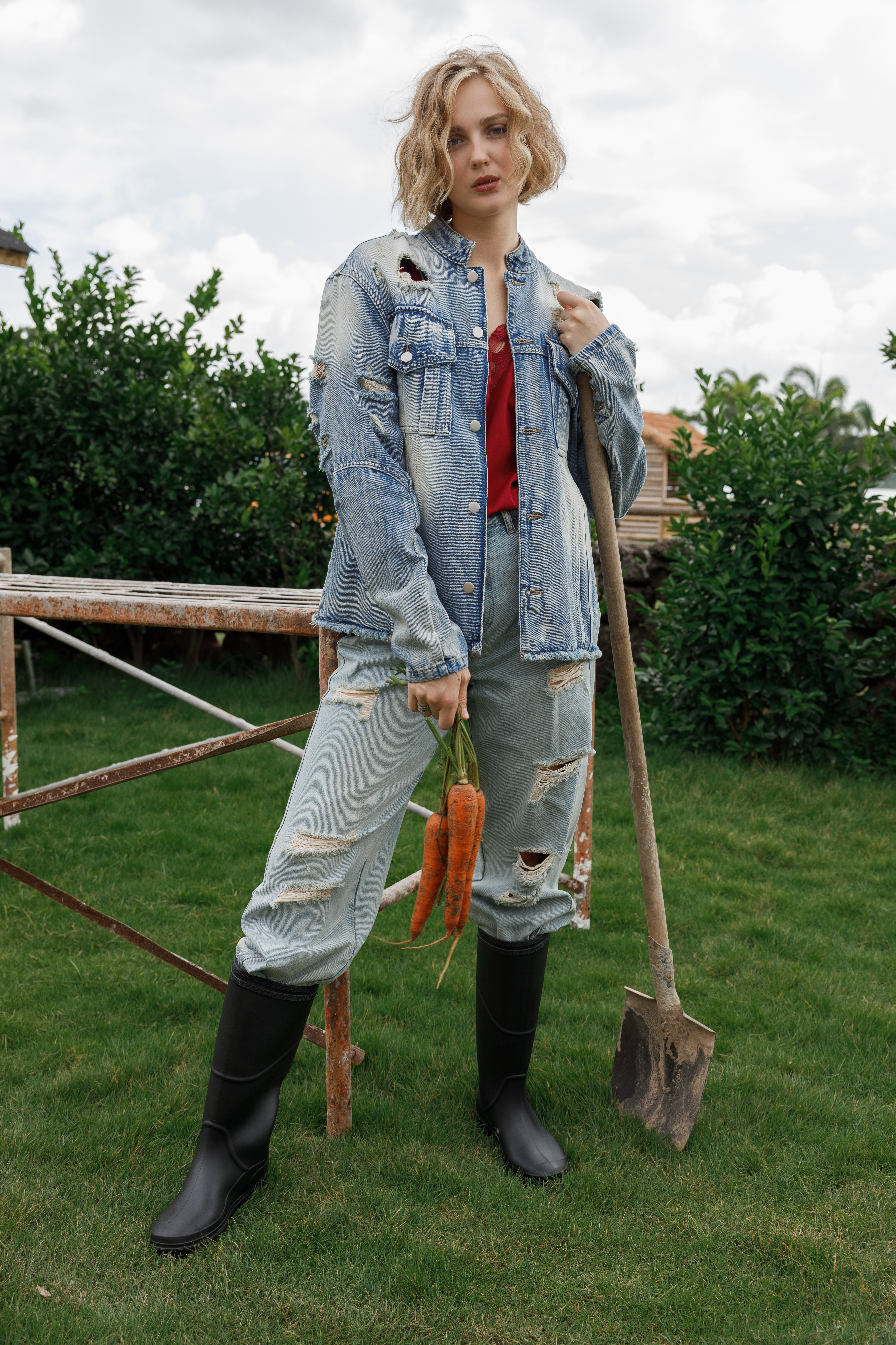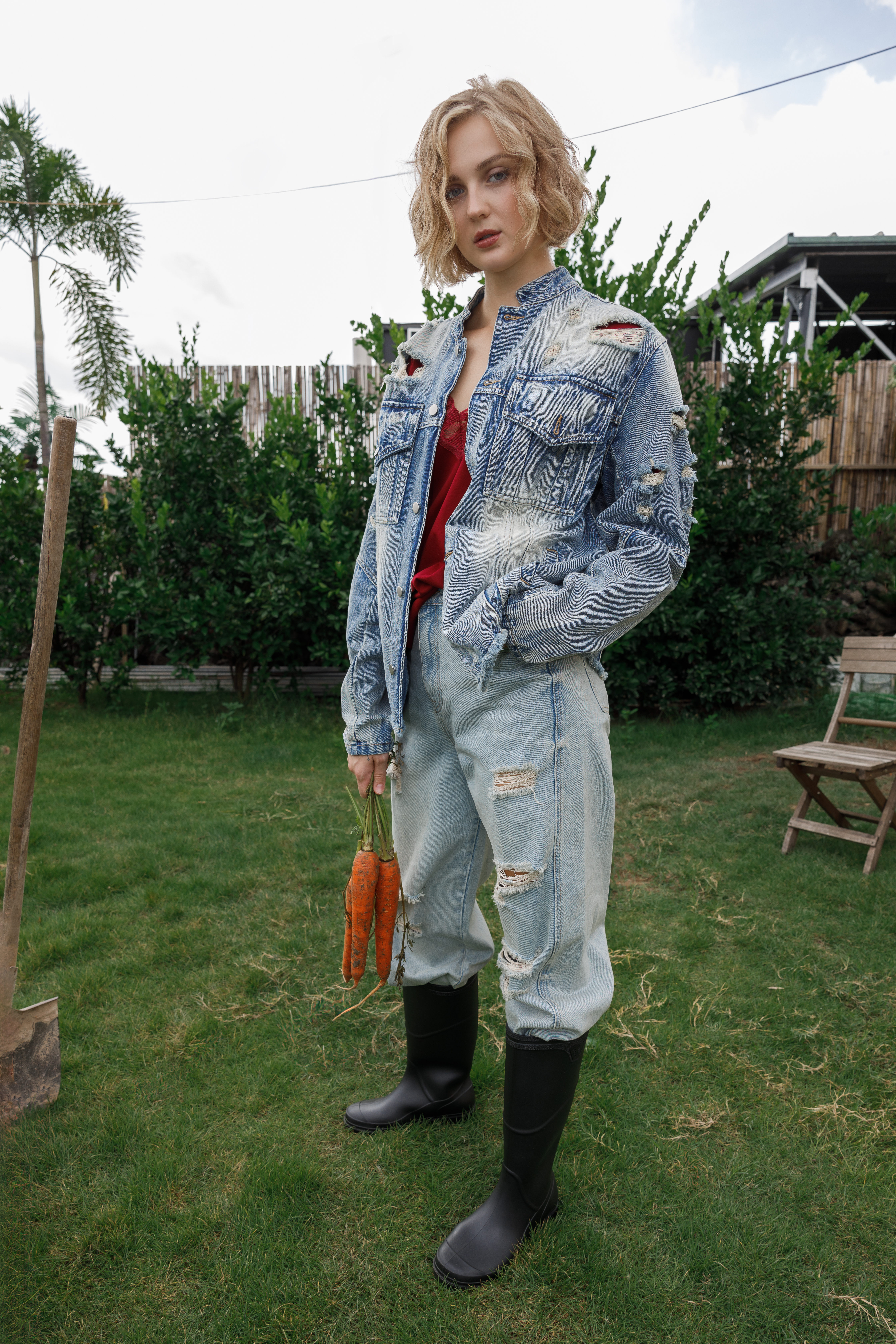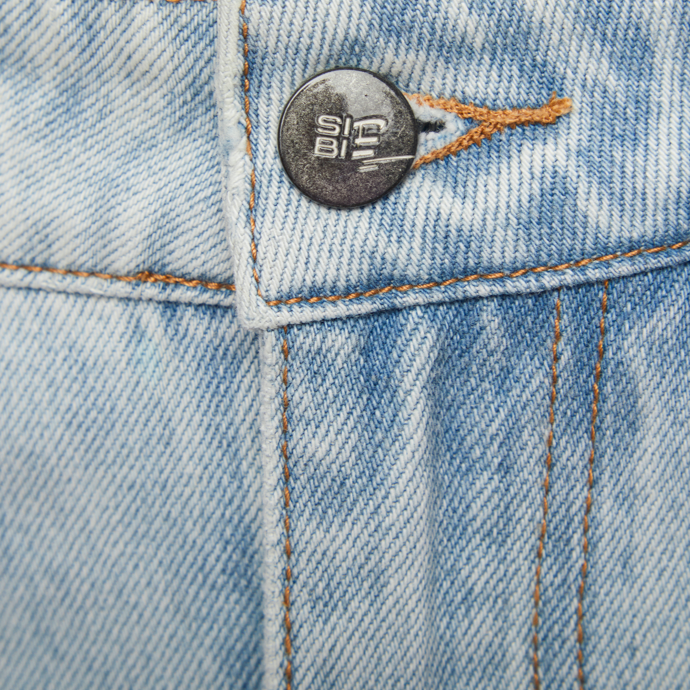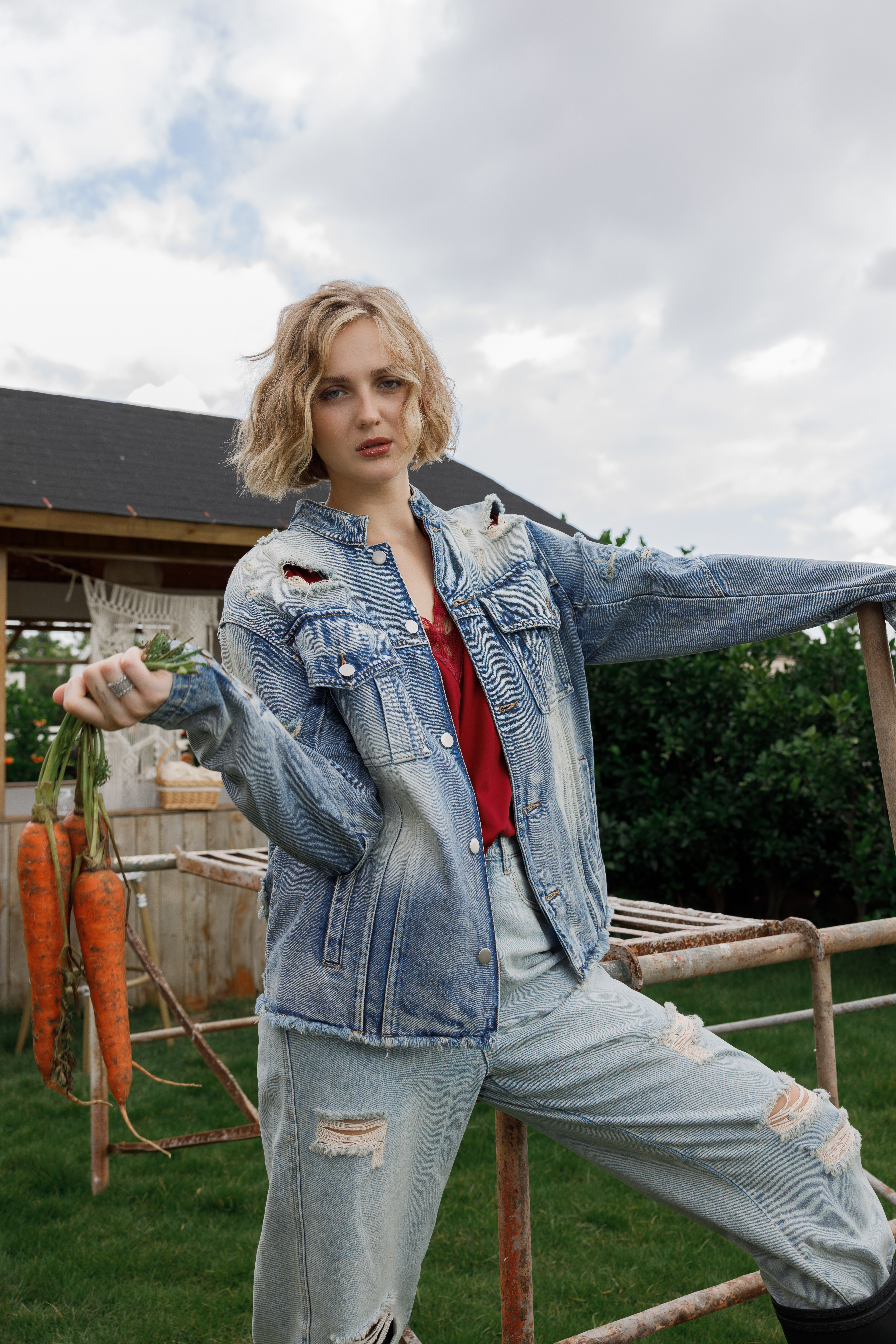 Рваные джинсы прямого кроя со светло-голубым оттенком сочетают в себе дерзкий уличный стиль и повседневный комфорт. Дышащий материал и свободный крой обеспечивают удобство в течение всего дня. Эффектные потертости и рваные элементы добавляют образу динамичности и индивидуальности. Изделие легко комбинируется с различной обувью и верхней одеждой, подходя для создания как расслабленных casual-образов, так и более смелых луков
