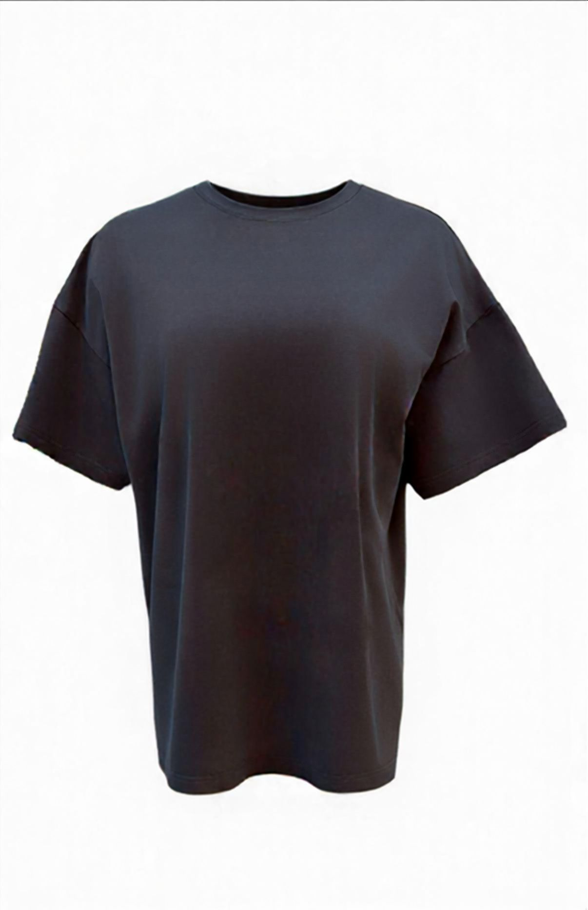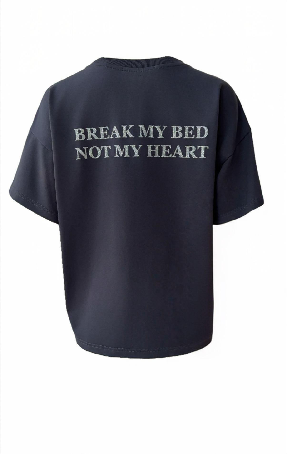 Футболка оверсайз из хлопкового футера с надписью шиммером на спине.