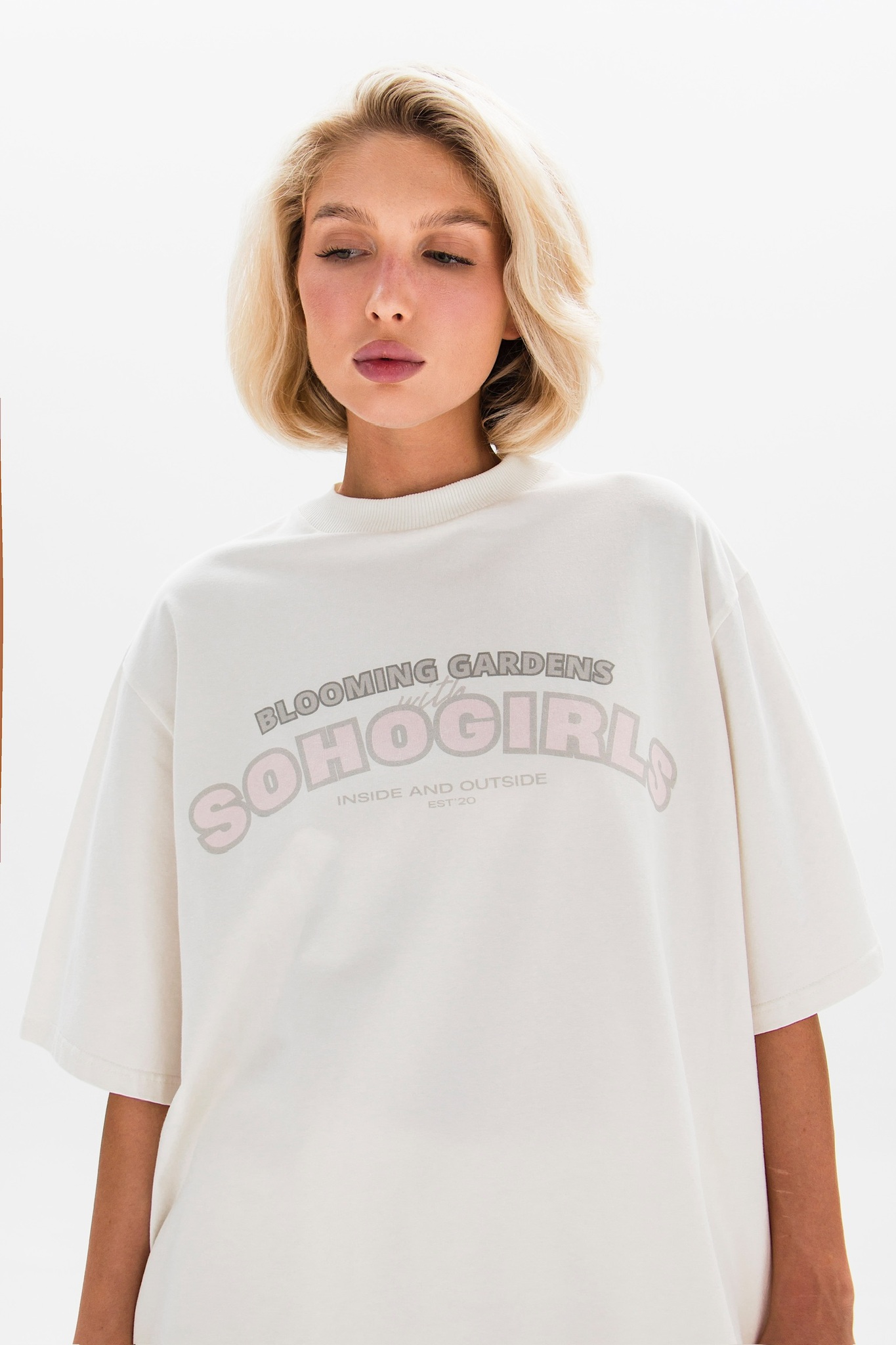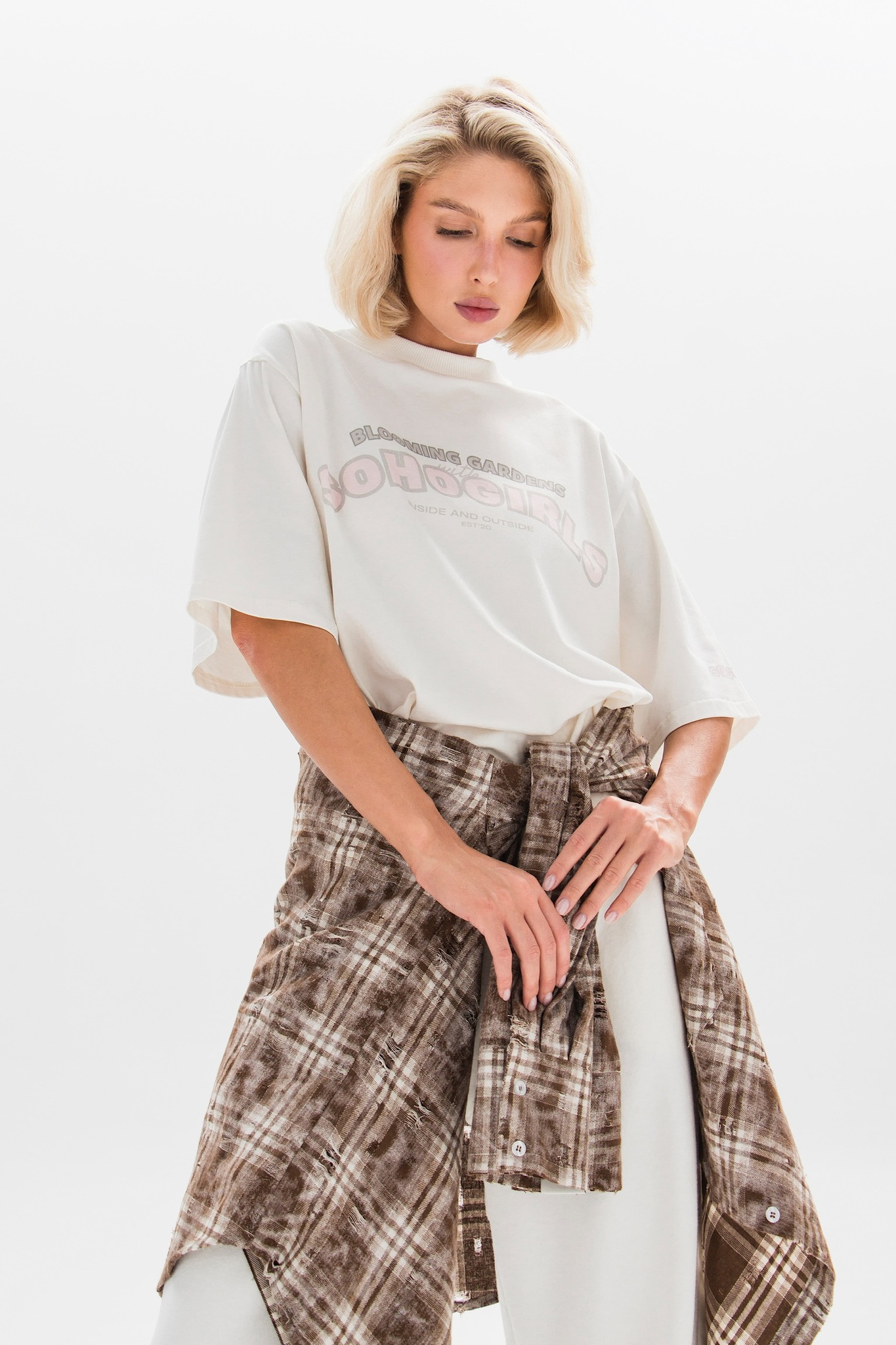 Футболка GARDENS - про внутренний рост, лёгкость и естественную красоту в каждом дне. Принт с фразой “blooming gardens inside and outside” - напоминание о том, что настоящее цветение начинается изнутри.