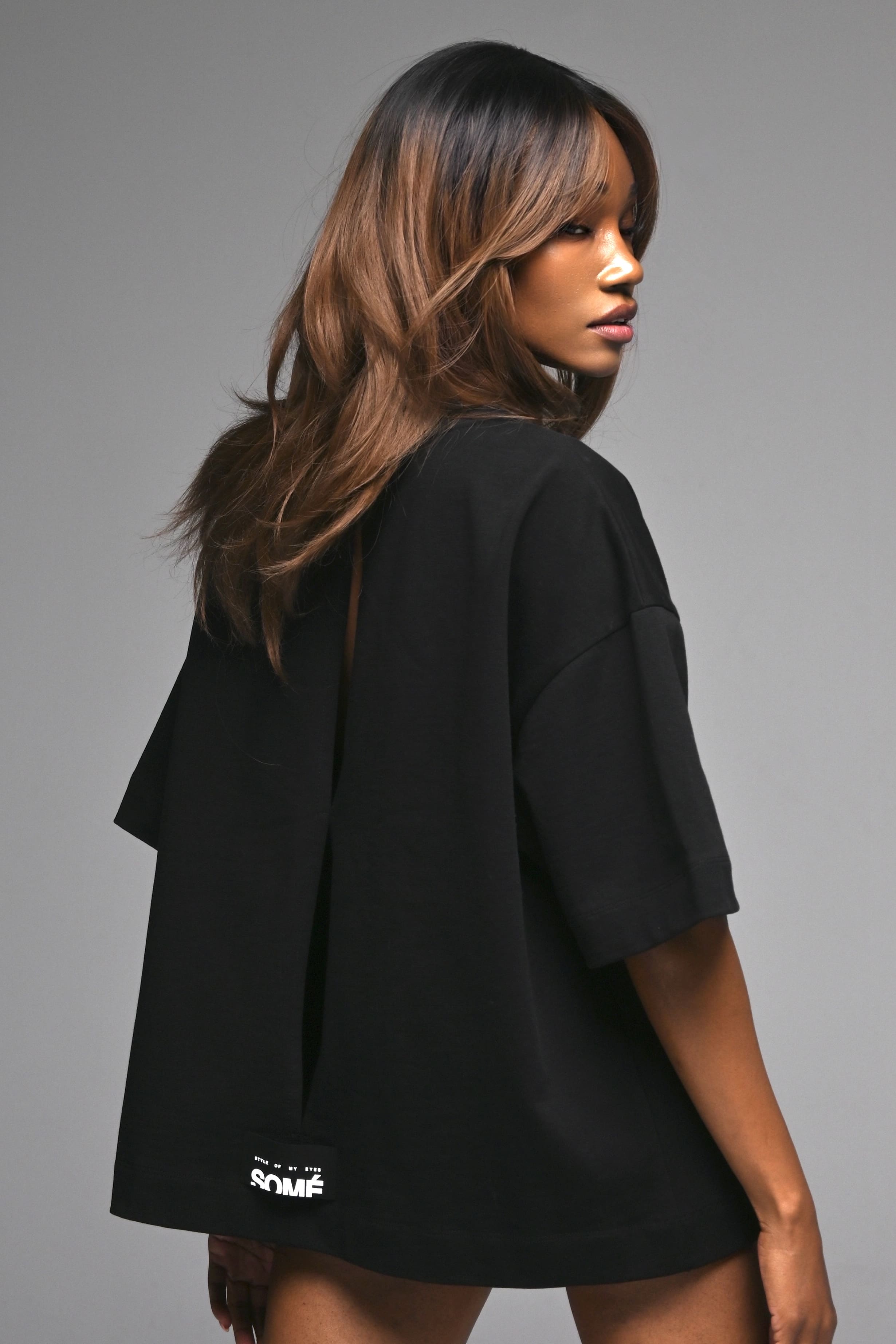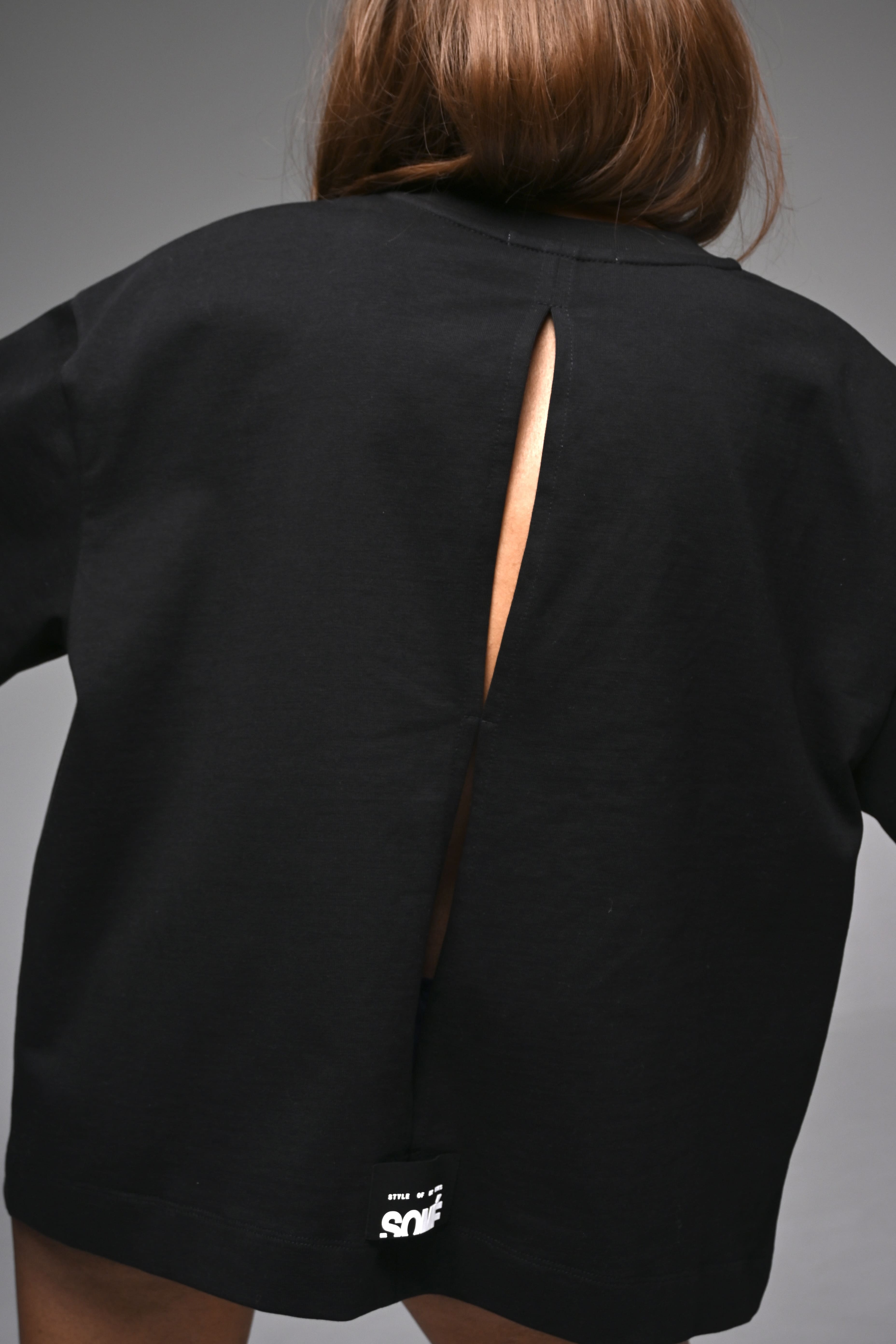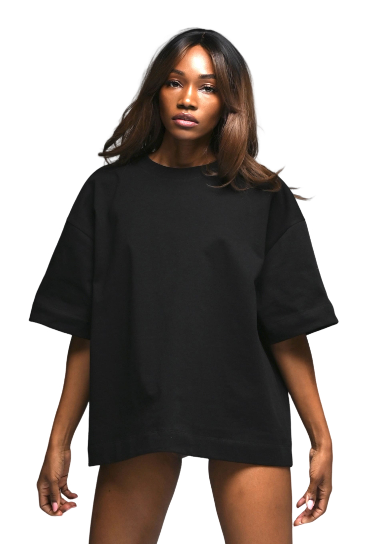 Базовый oversize крой из 100% плотного хлопка, который держит форму и выглядит безупречно в любом образе. Главная деталь — щель по спинке, добавляющая лёгкий намёк на дерзость и уверенность.