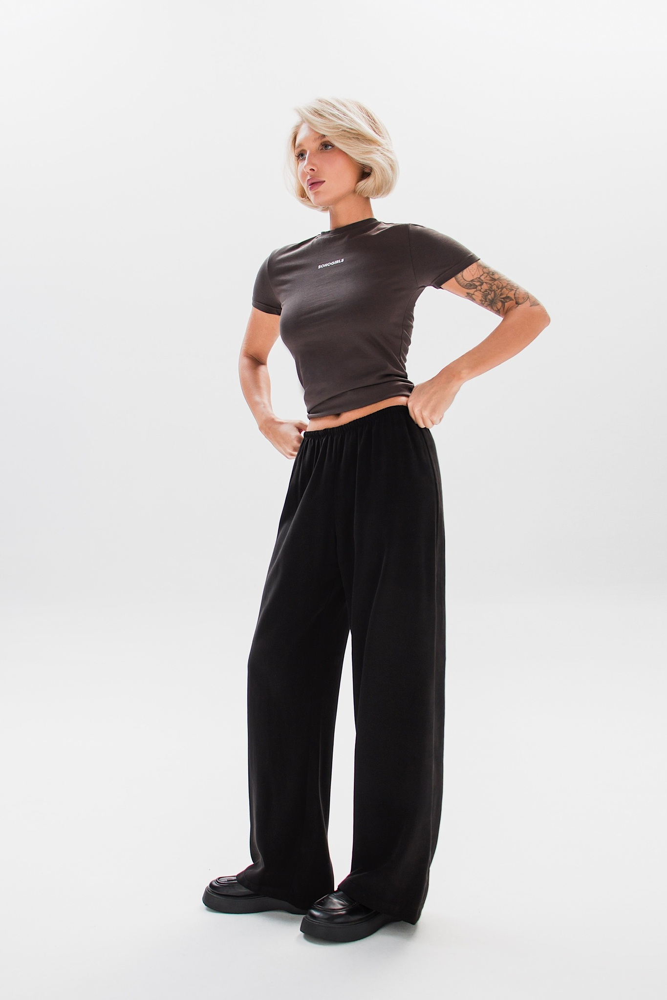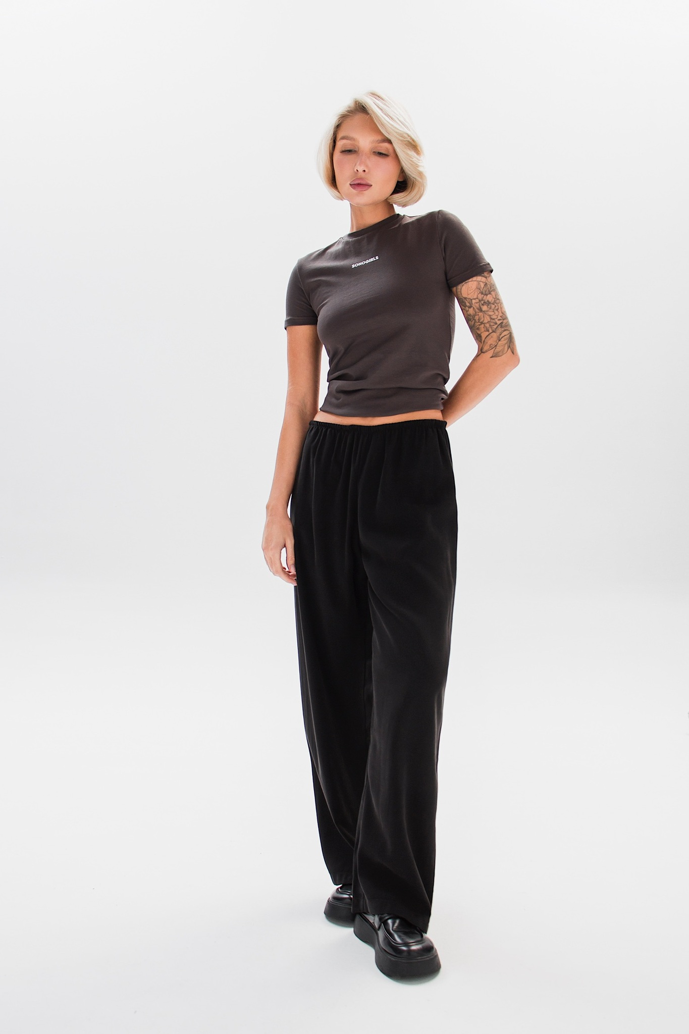 Лаконичное лого на груди придаёт особый шарм и делает футболку универсальной. Легко впишется как в повседневный, так и в более элегантный образ.