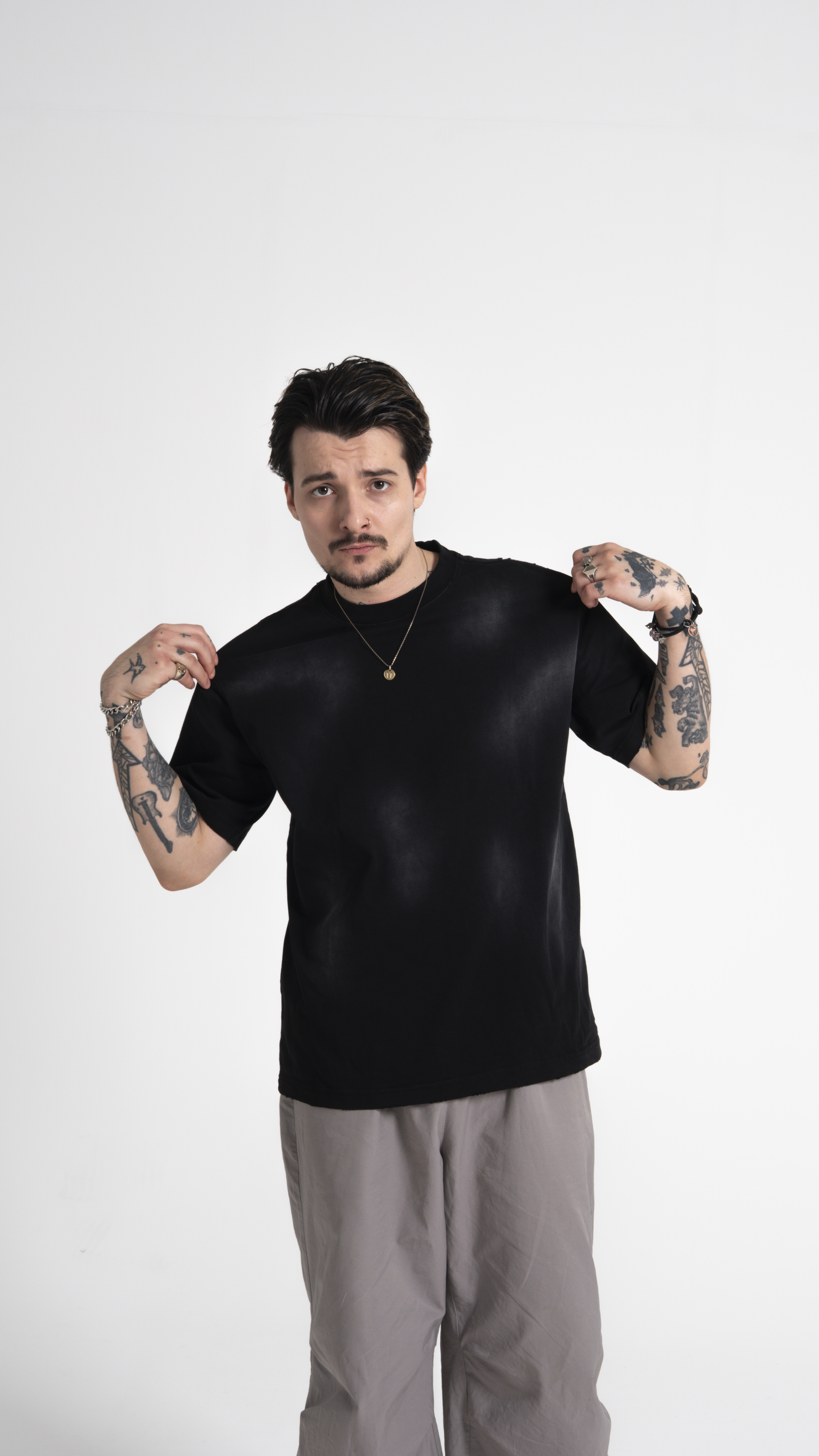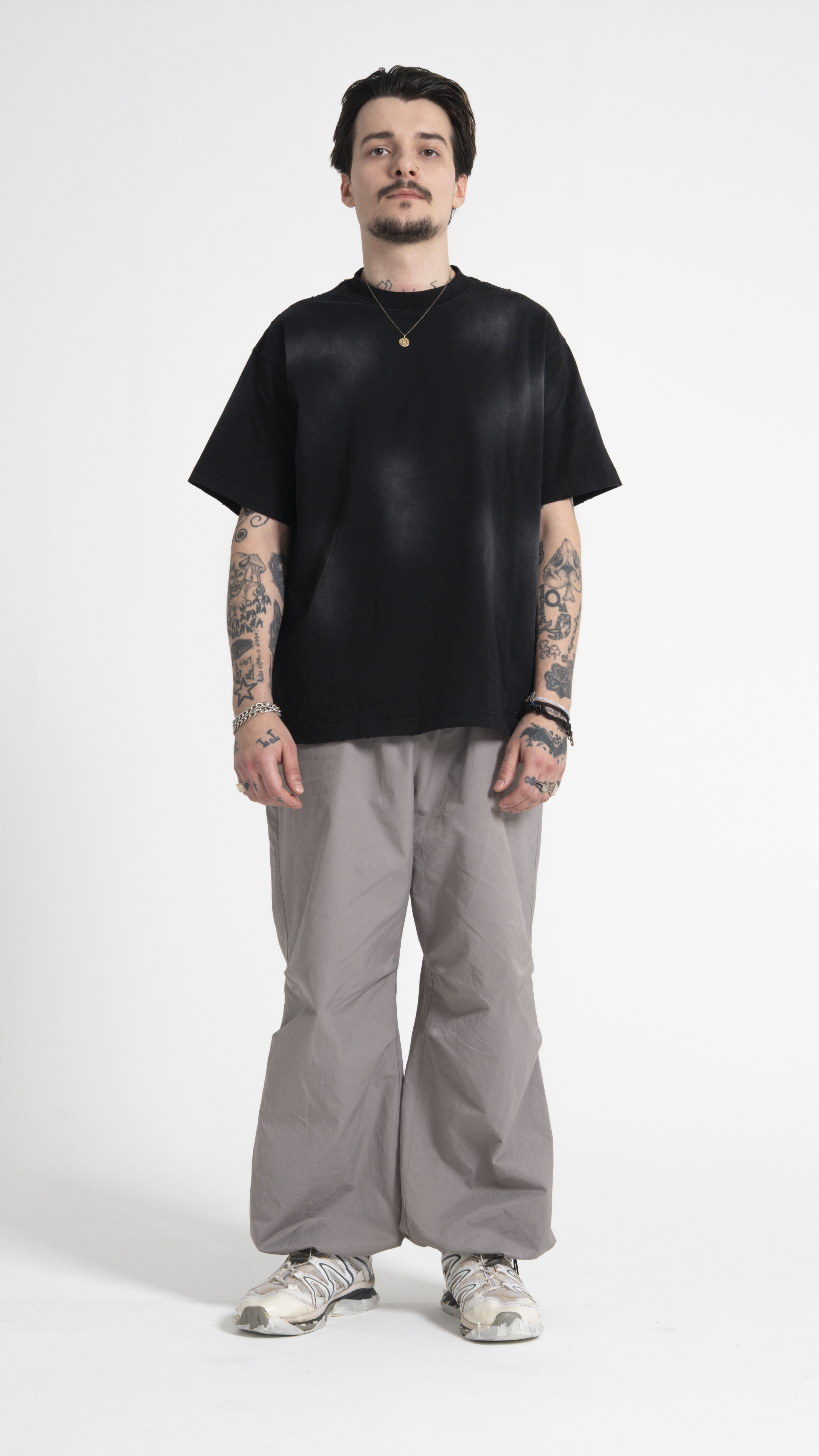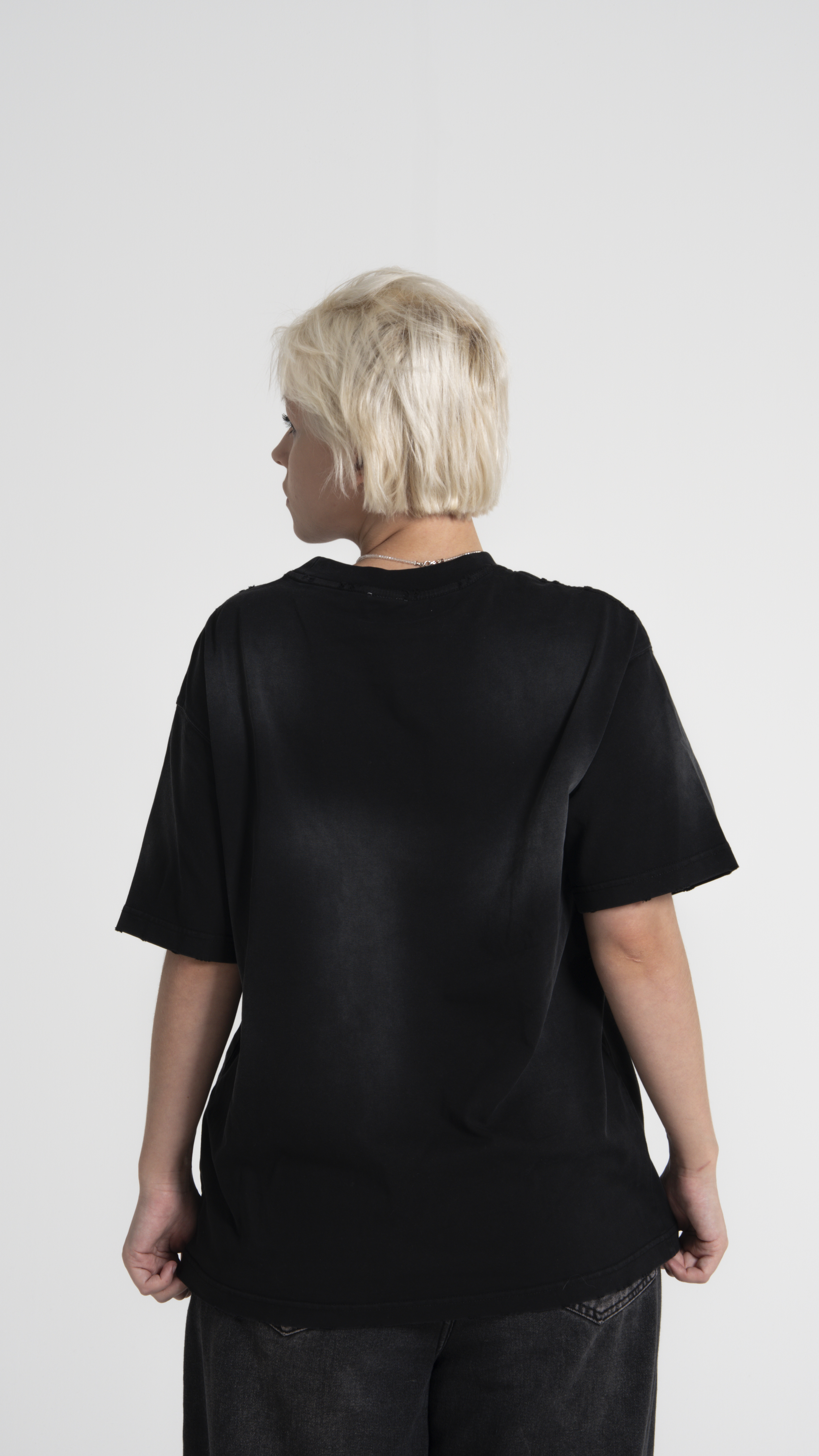 Футболка SPOTS в стиле стритвир и гранж чёрного цвета с белыми потёртостями-пятнами создано для ценителей комфорта и функциональности.