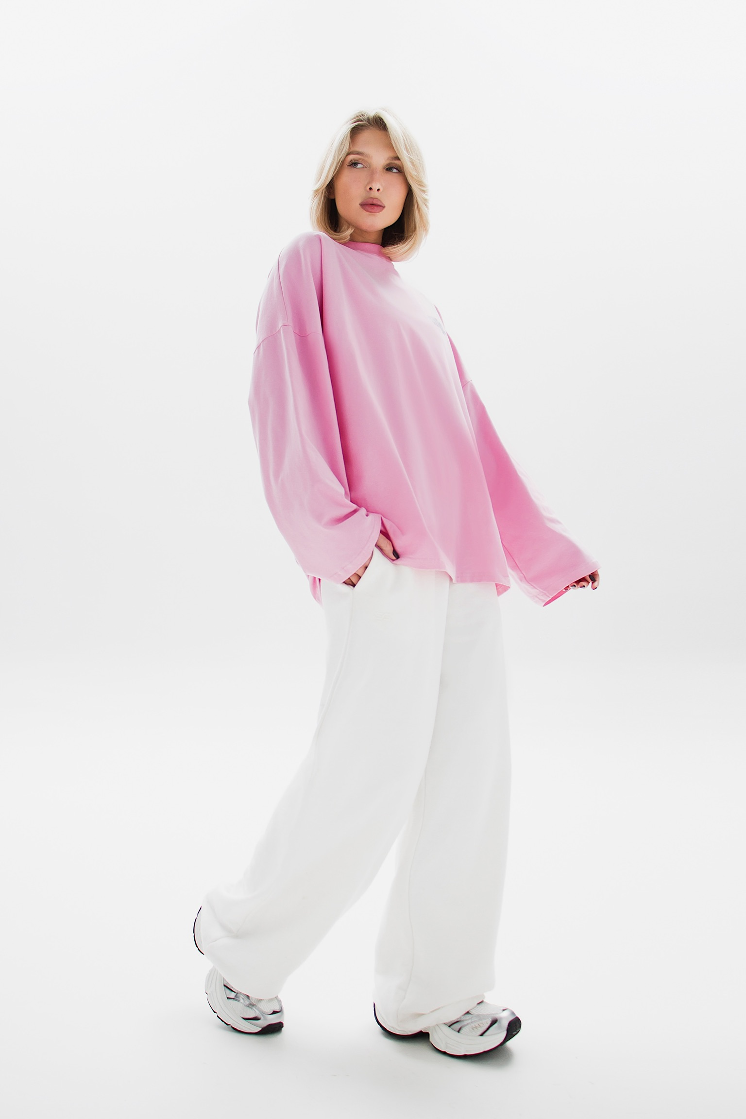 Молочный лонгслив в прочтении SHI-SHI – иллюстрация того, какой может быть база: нетривиальной и нескучной. Свободный лонгслив со спущенной линией плеча дополнен швами, выведенными на лицевую сторону. Стилизуйте его по-максимому и с чем угодно.