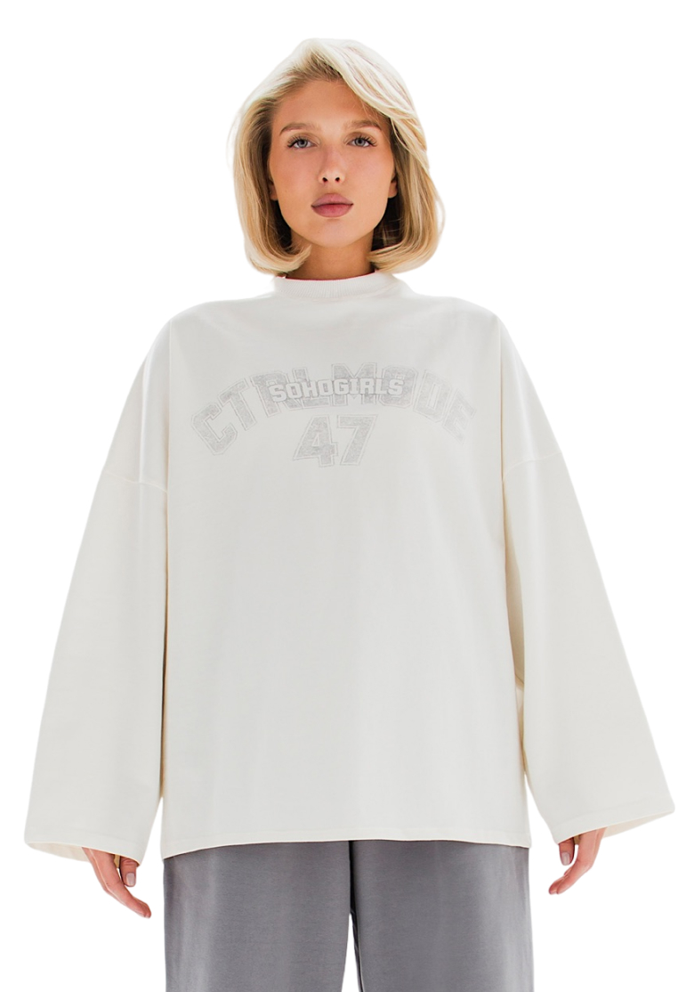 Лонгслив свободного кроя с принтом на груди - базовый элемент гардероба с акцентом на стиль и индивидуальность