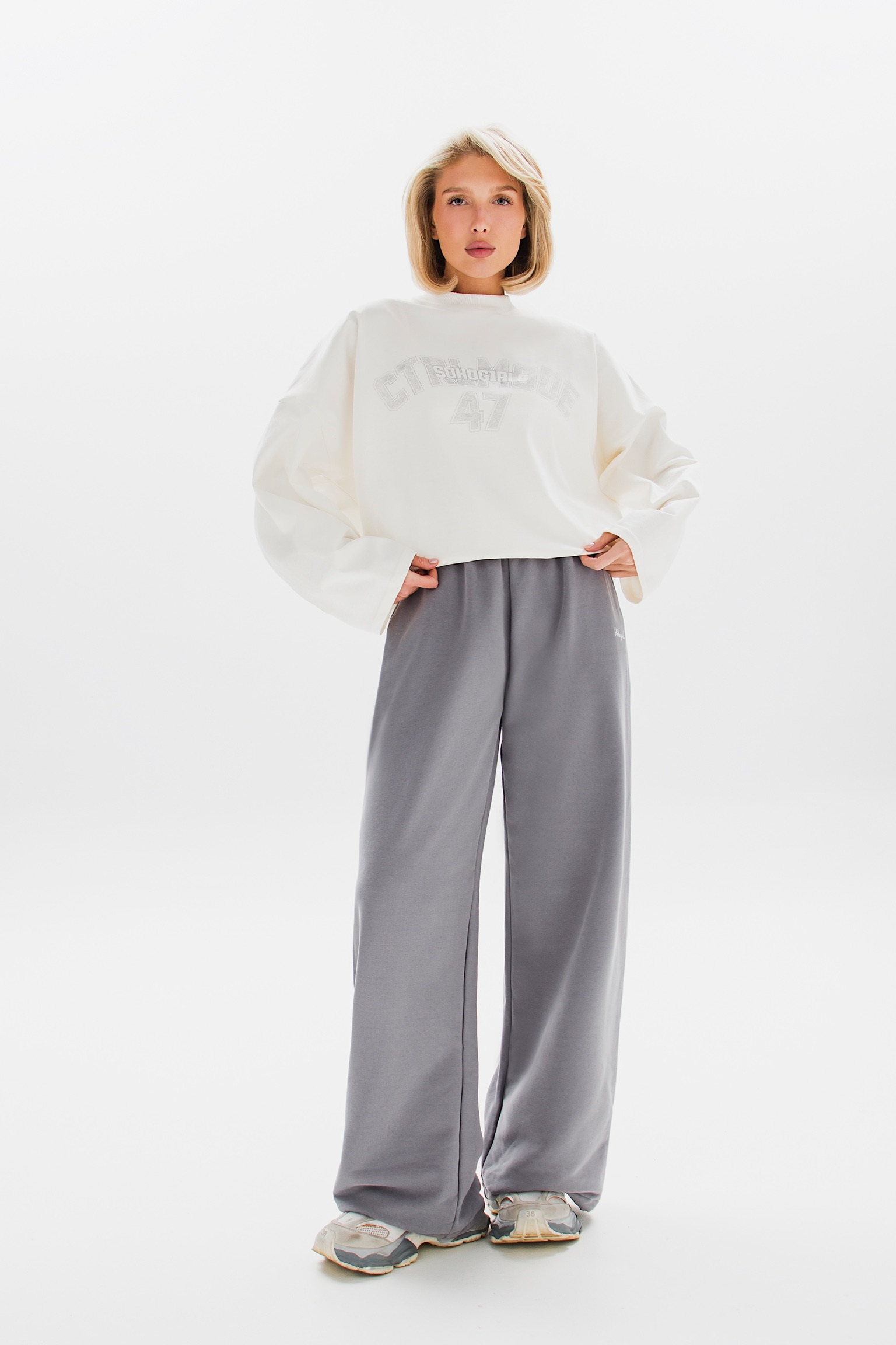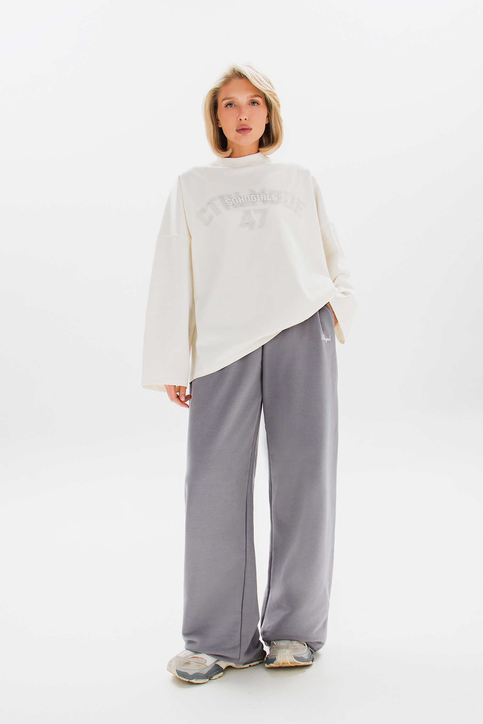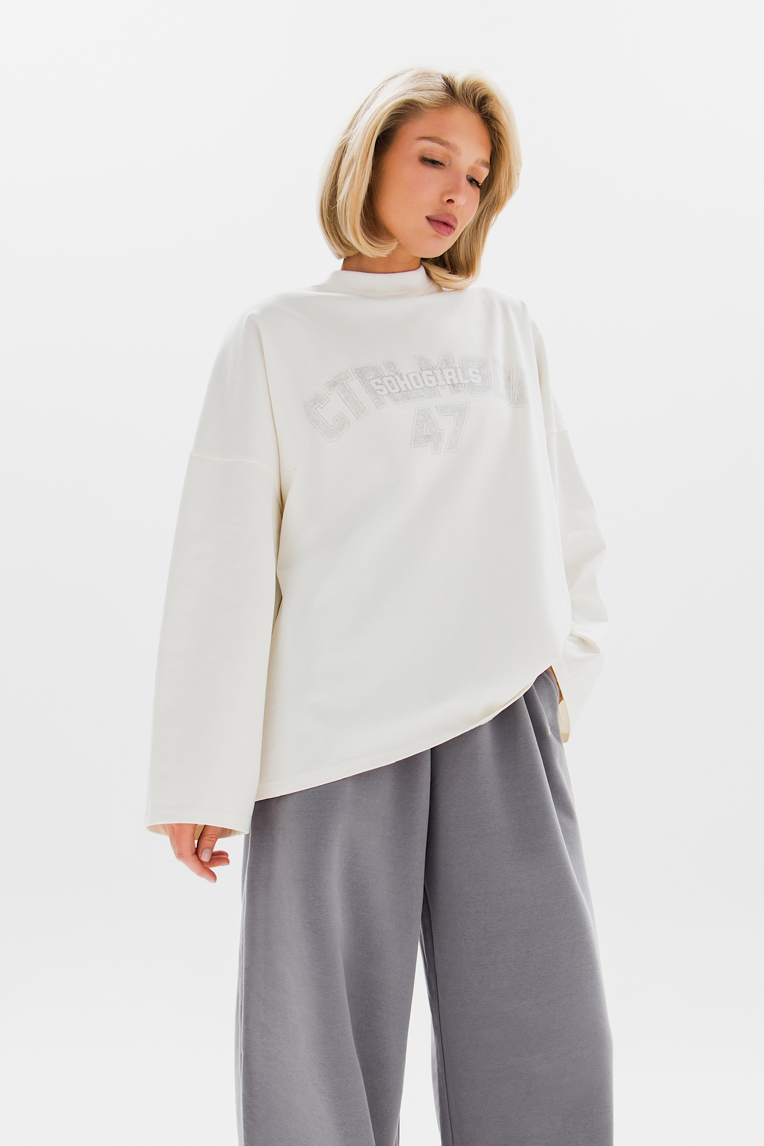 Принт на груди добавляет характер и завершает образ. Идеальный выбор для создания расслабленного, но выразительного стиля.