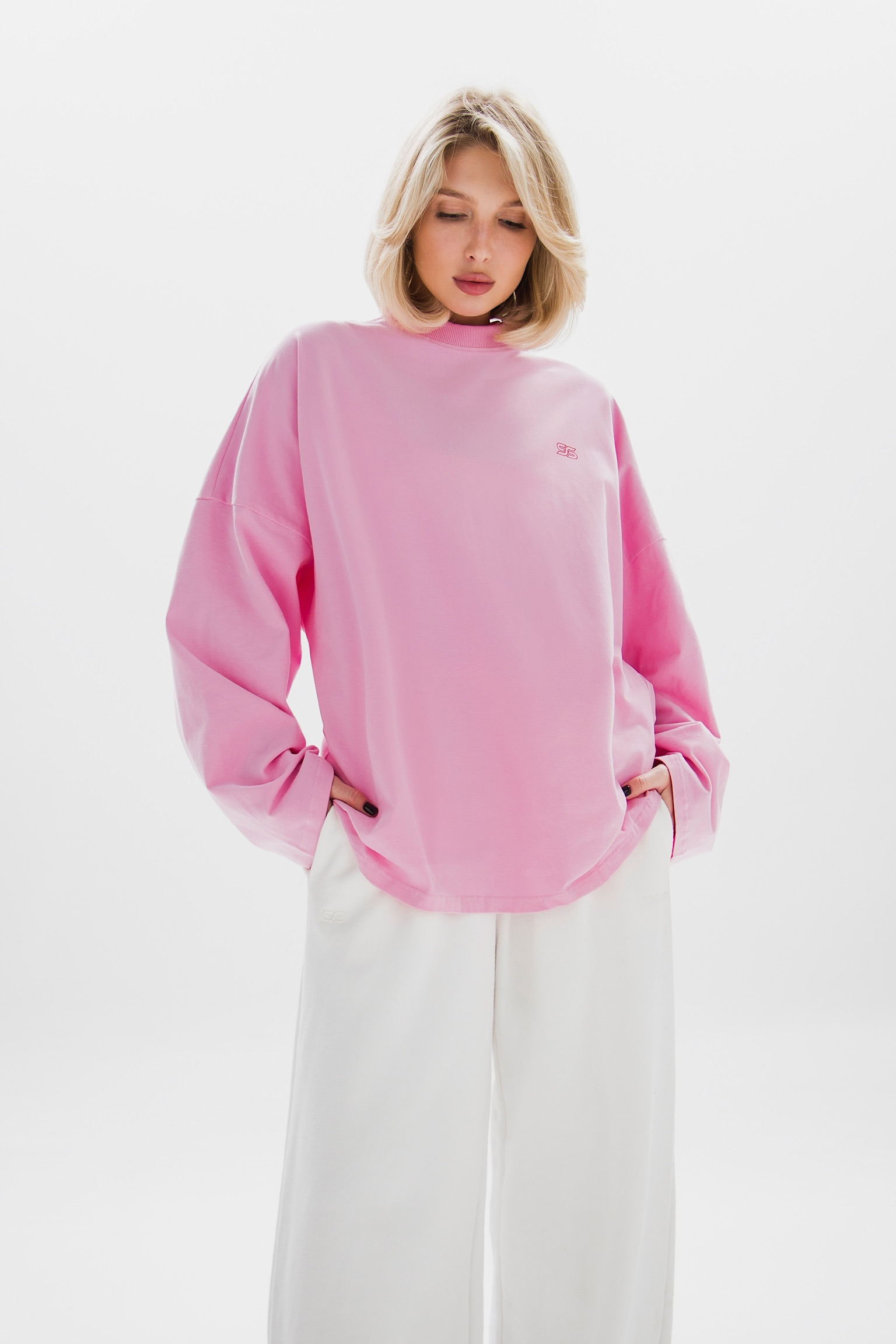 Лонгслив свободного кроя с принтами на груди и спине - базовый элемент гардероба с акцентом на стиль и индивидуальность