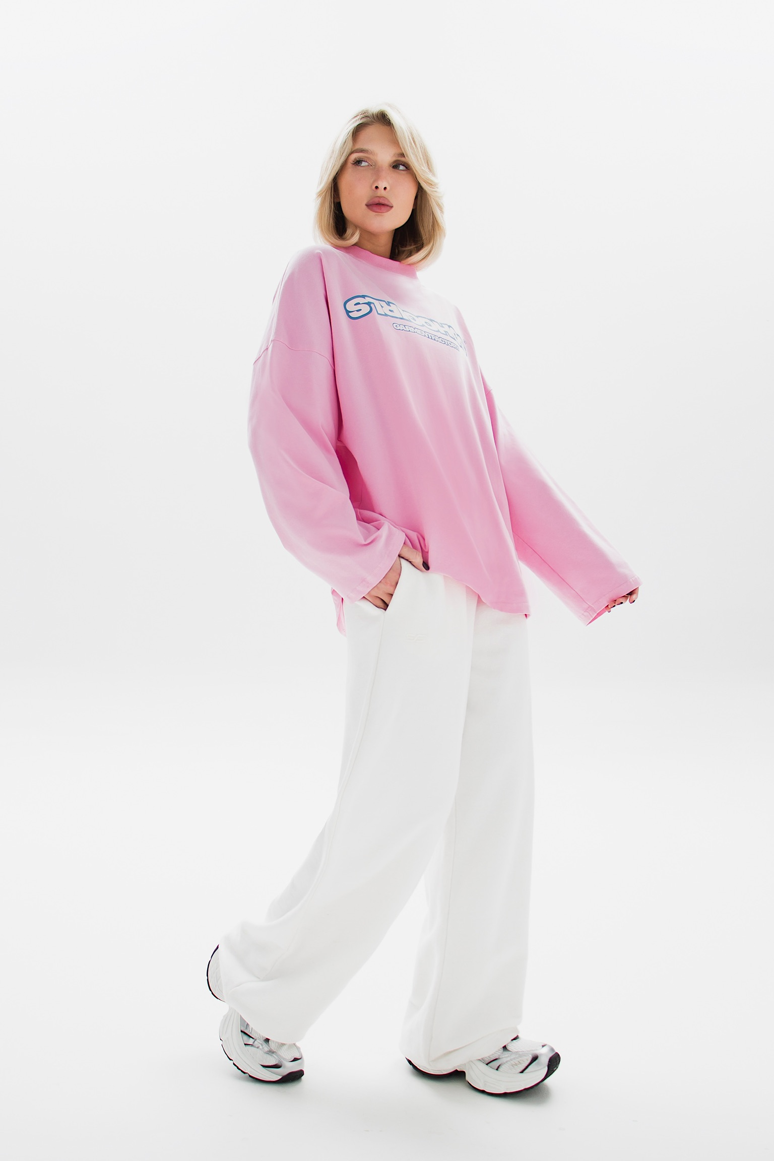 Принт на груди добавляет характер и завершает образ. Идеальный выбор для создания расслабленного, но выразительного стиля.