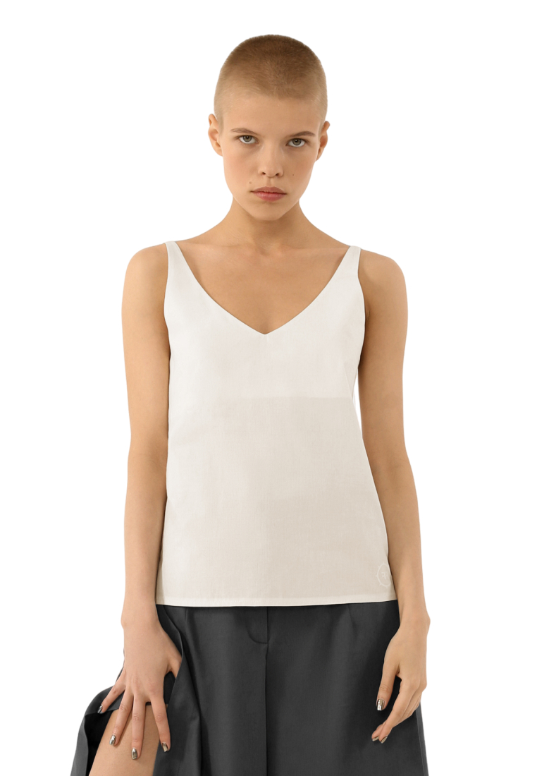 Топ из Итальяского атласа. Красиво подчеркивает грудь засчет плотного прилегания, а также сужения бретелей в зоне лифа. Ткань дышит, немного тянется, имеет красивый сдержанный блеск. Рекомендуем брать в комплекте с юбкой, но также роскошно будет смотреться и с брюками засчет необычной формы...