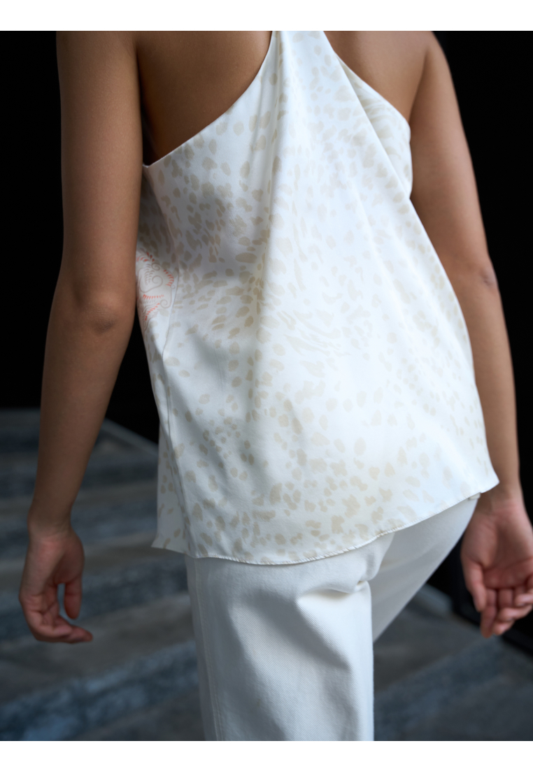 Топ из Итальяского атласа. Красиво подчеркивает грудь засчет плотного прилегания, а также сужения бретелей в зоне лифа. Ткань дышит, немного тянется, имеет красивый сдержанный блеск. Рекомендуем брать в комплекте с юбкой, но также роскошно будет смотреться и с брюками засчет необычной формы...